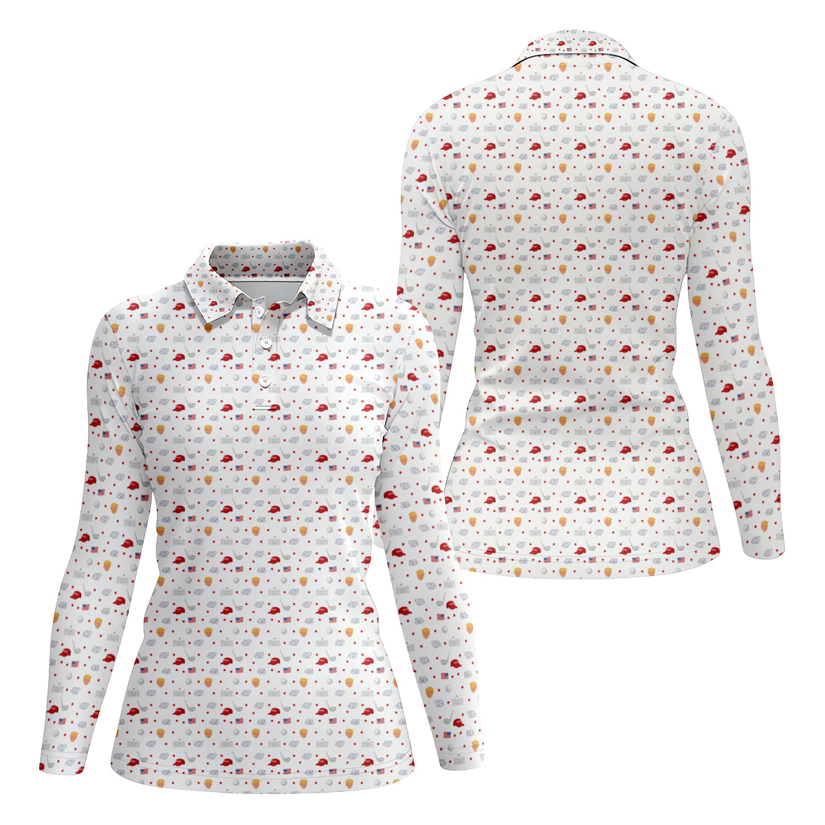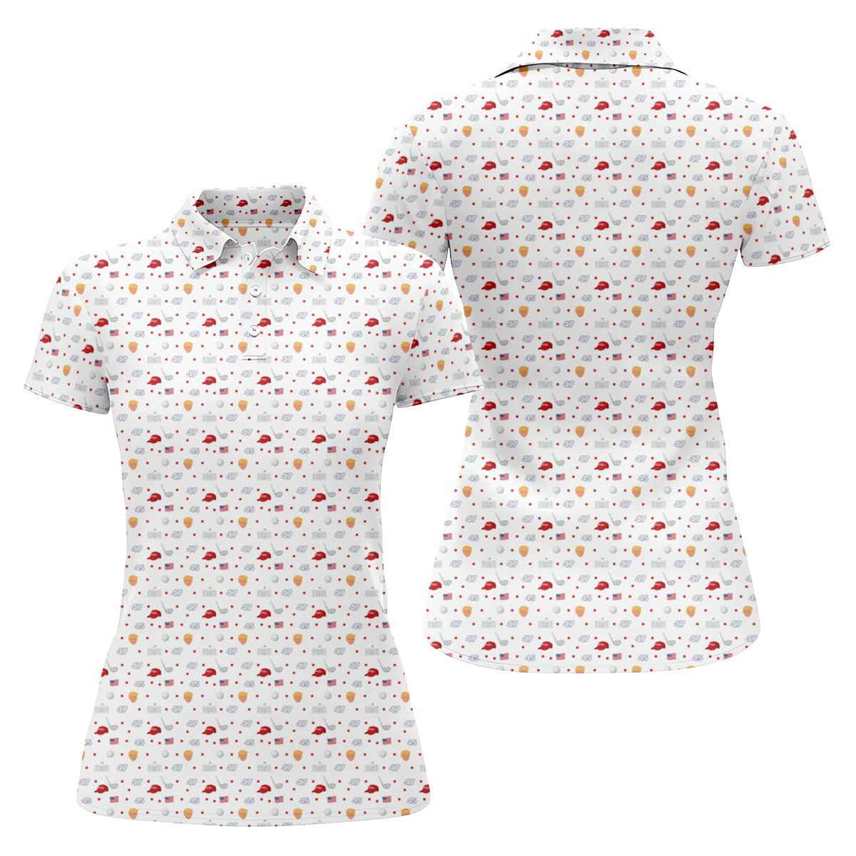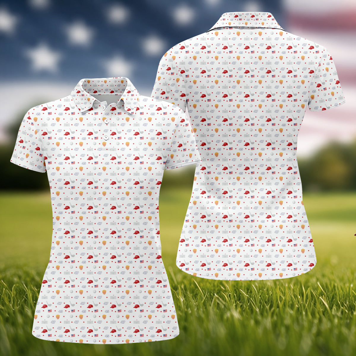 45 47 US Flag Pattern White Golf Shirt, Funny Golf Shirt, Women's Golf Tops, Ladies Golf Shirts