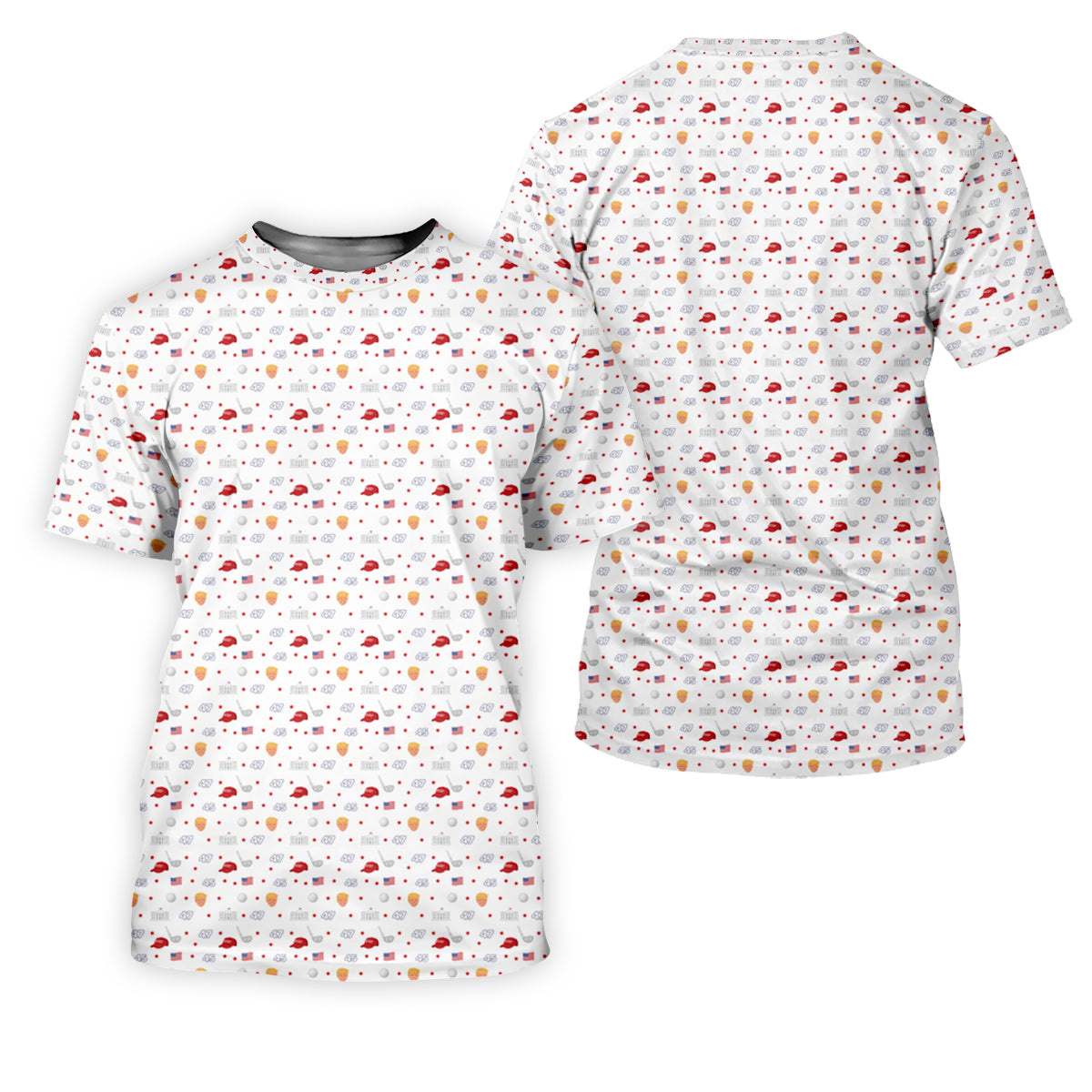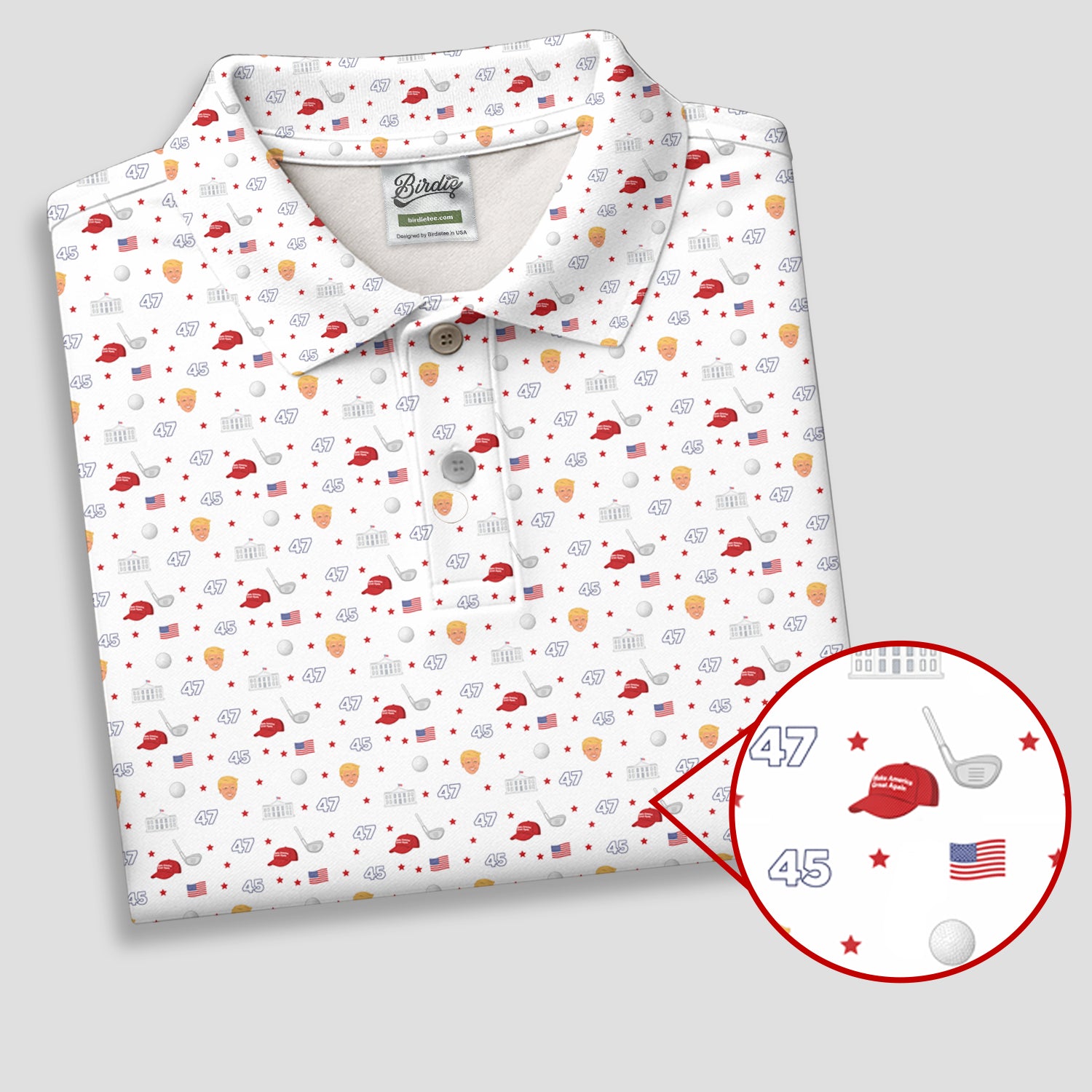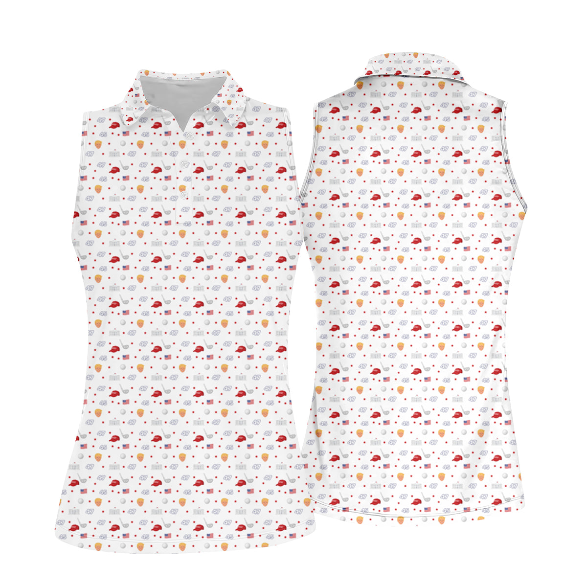 45 47 US Flag Pattern White Golf Shirt, Funny Golf Shirt, Women's Golf Tops, Ladies Golf Shirts