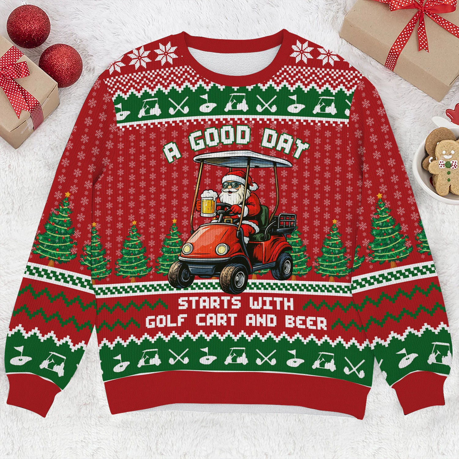 A Good Day Start With Golf Cart And Beer Christmas Ugly Sweater, Golf Ugly Christmas Sweater, Christmas Golf Shirt