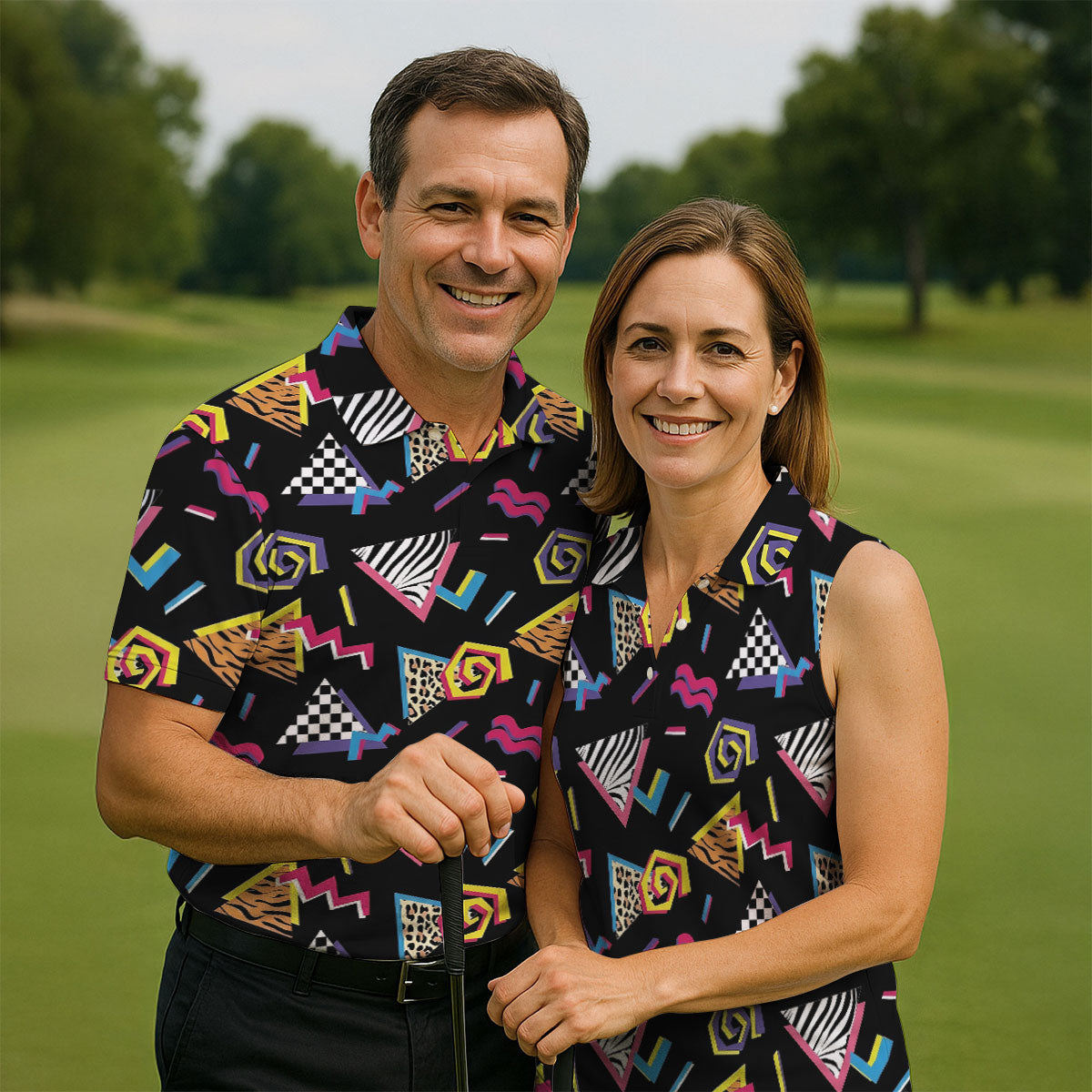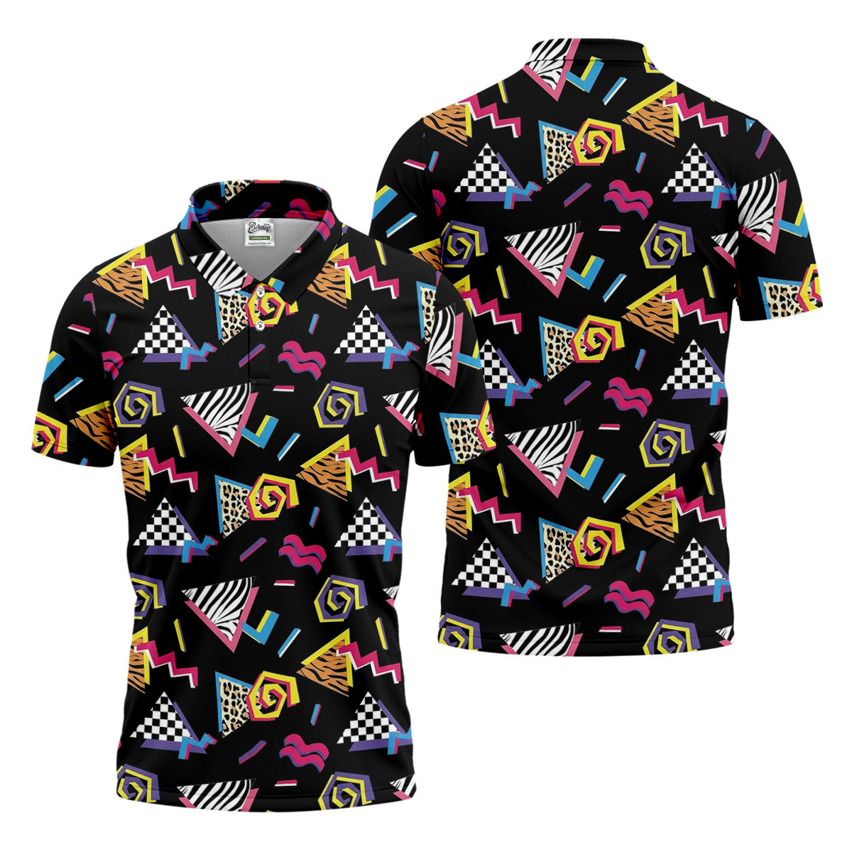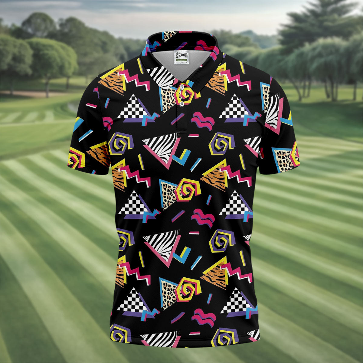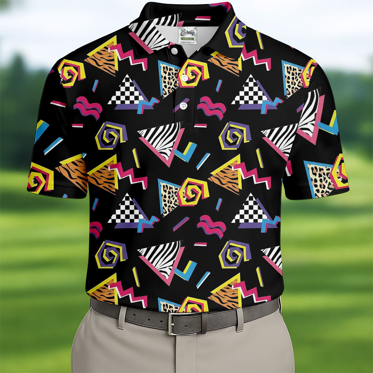Abstract Geometric Leopard Zebra Animal Stripes 80s 90s Style Golf Tops For Men, Golf Shirts For Men