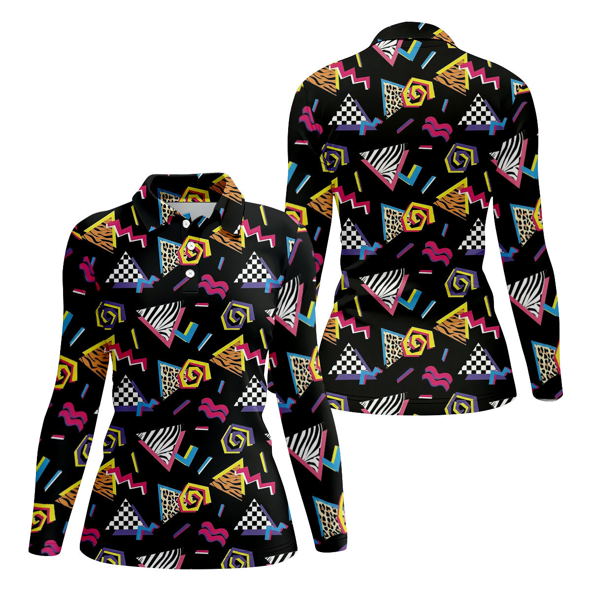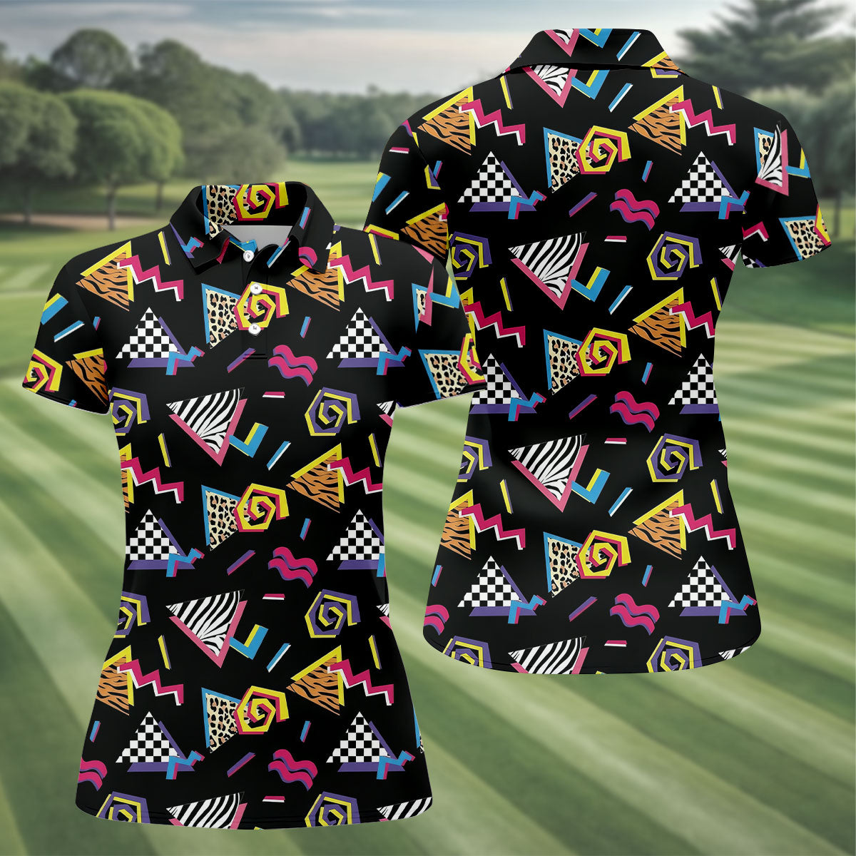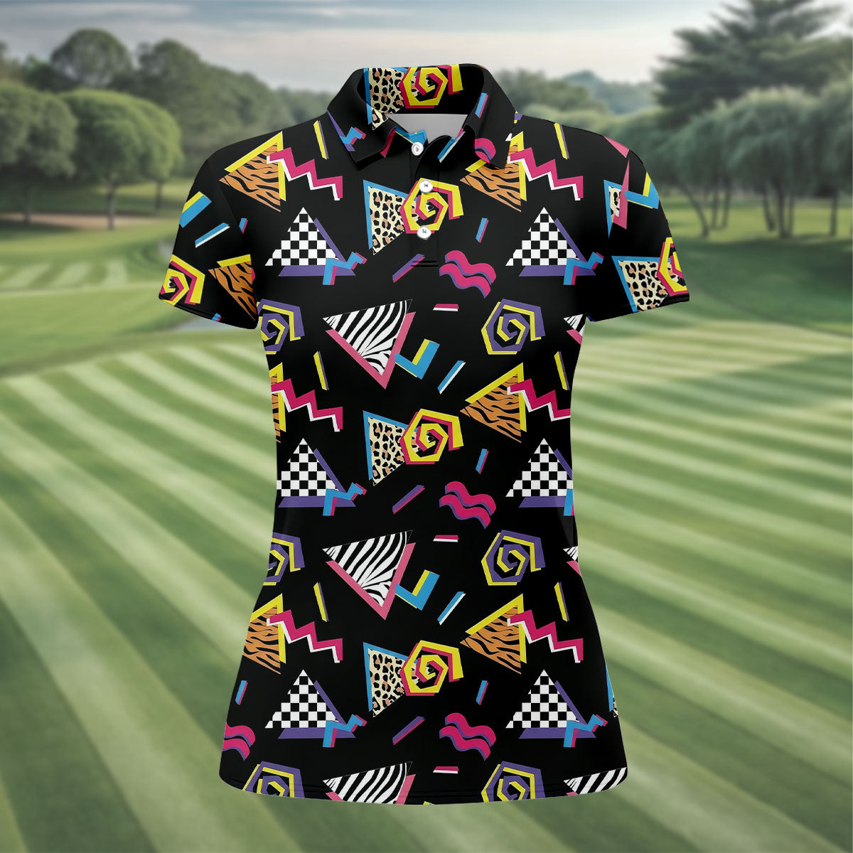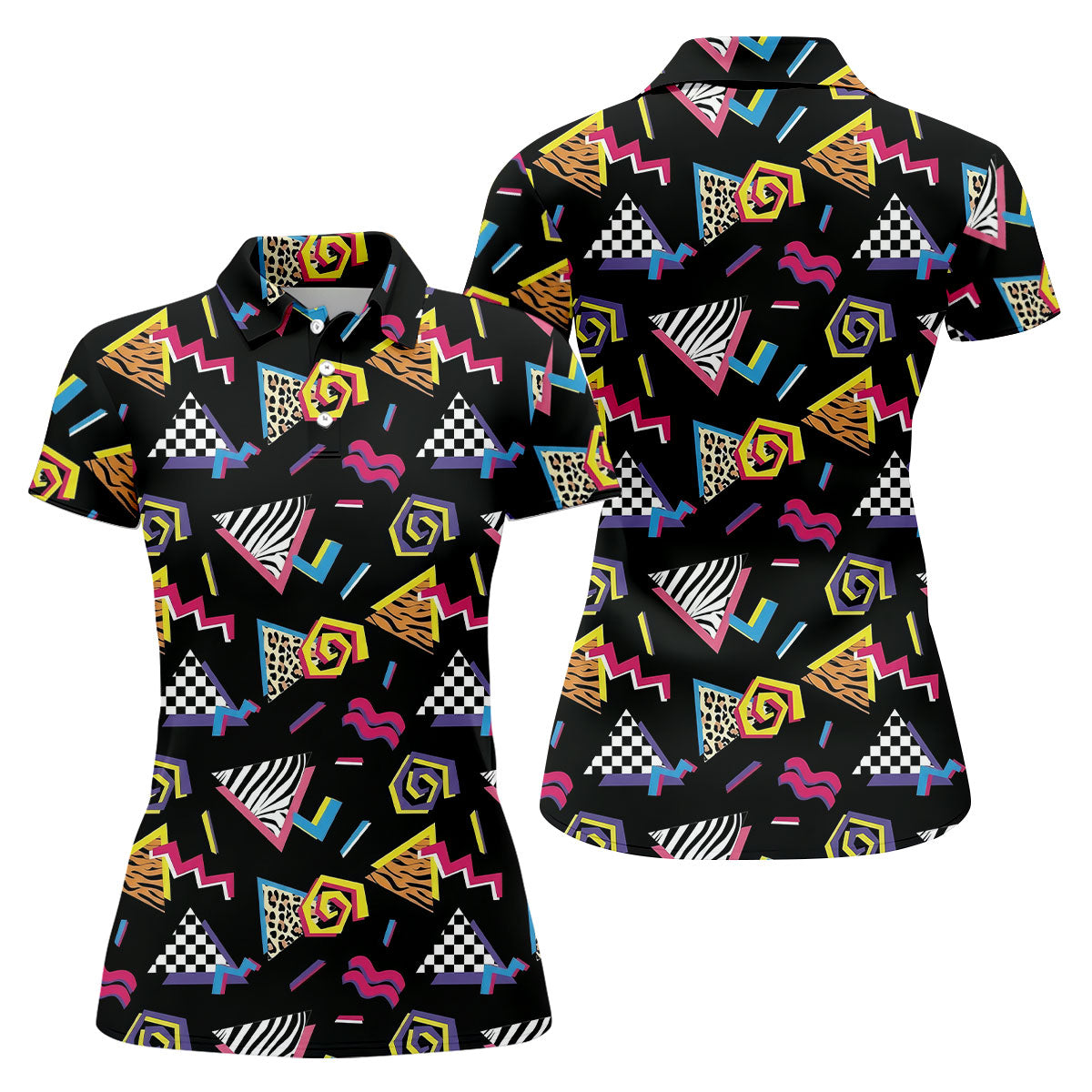Abstract Geometric Leopard Zebra Animal Stripes 80s 90s Style Ladies Golf Tops, Golf Shirt For Women