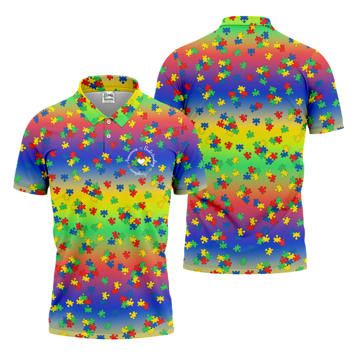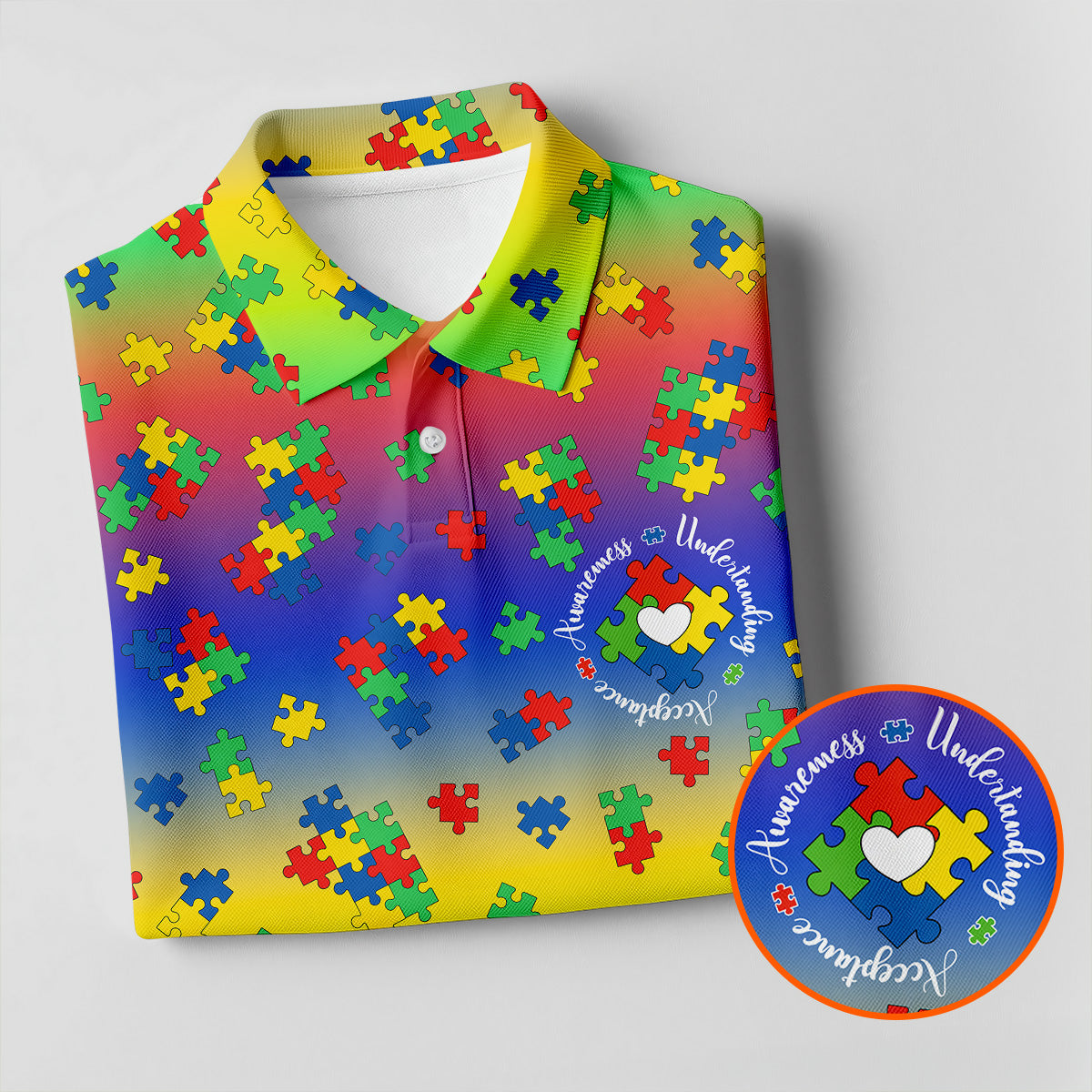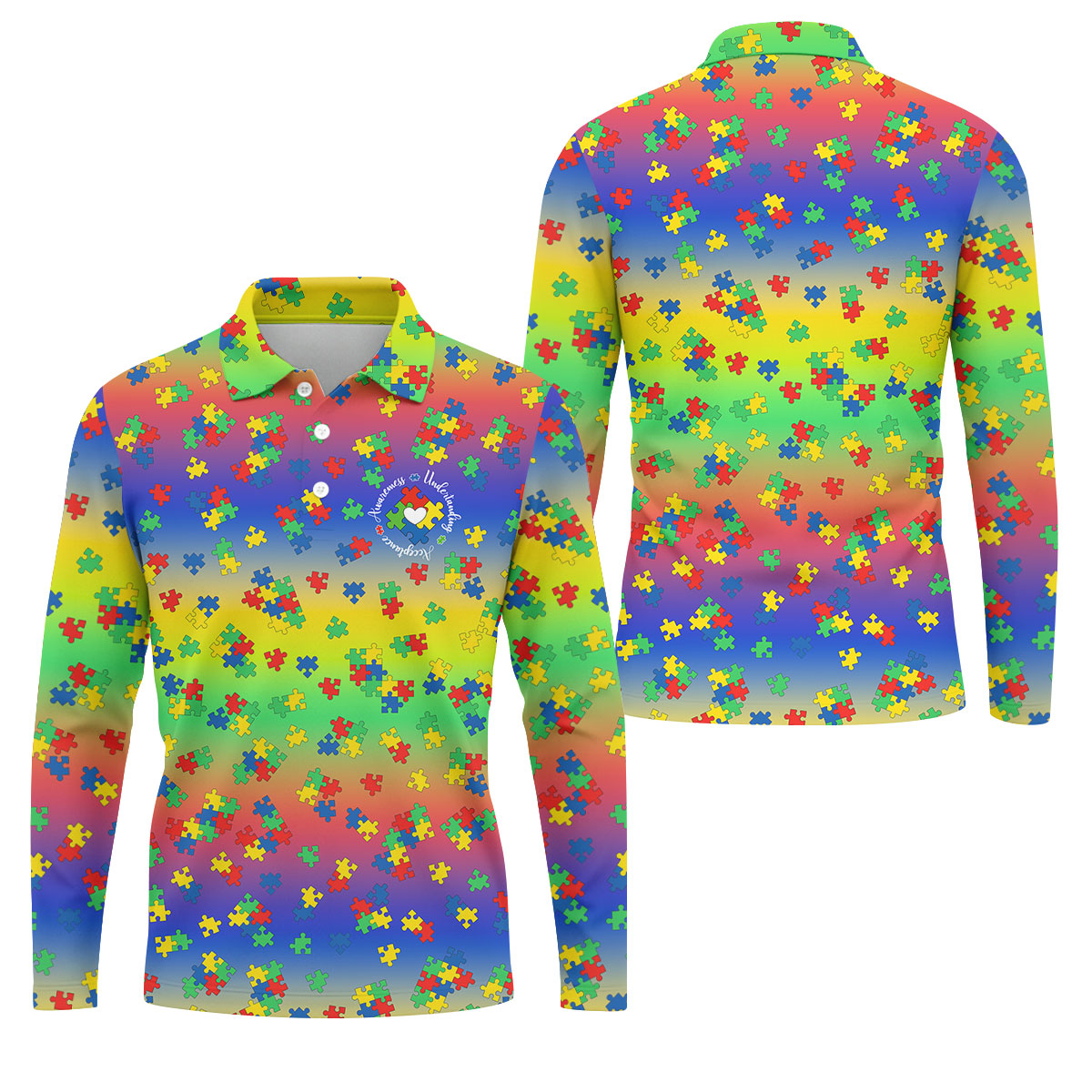 Acceptance Awareness Understanding Autism Puzzle Rainbow Gradient Golf Tops For Men, Golf Shirts For Men