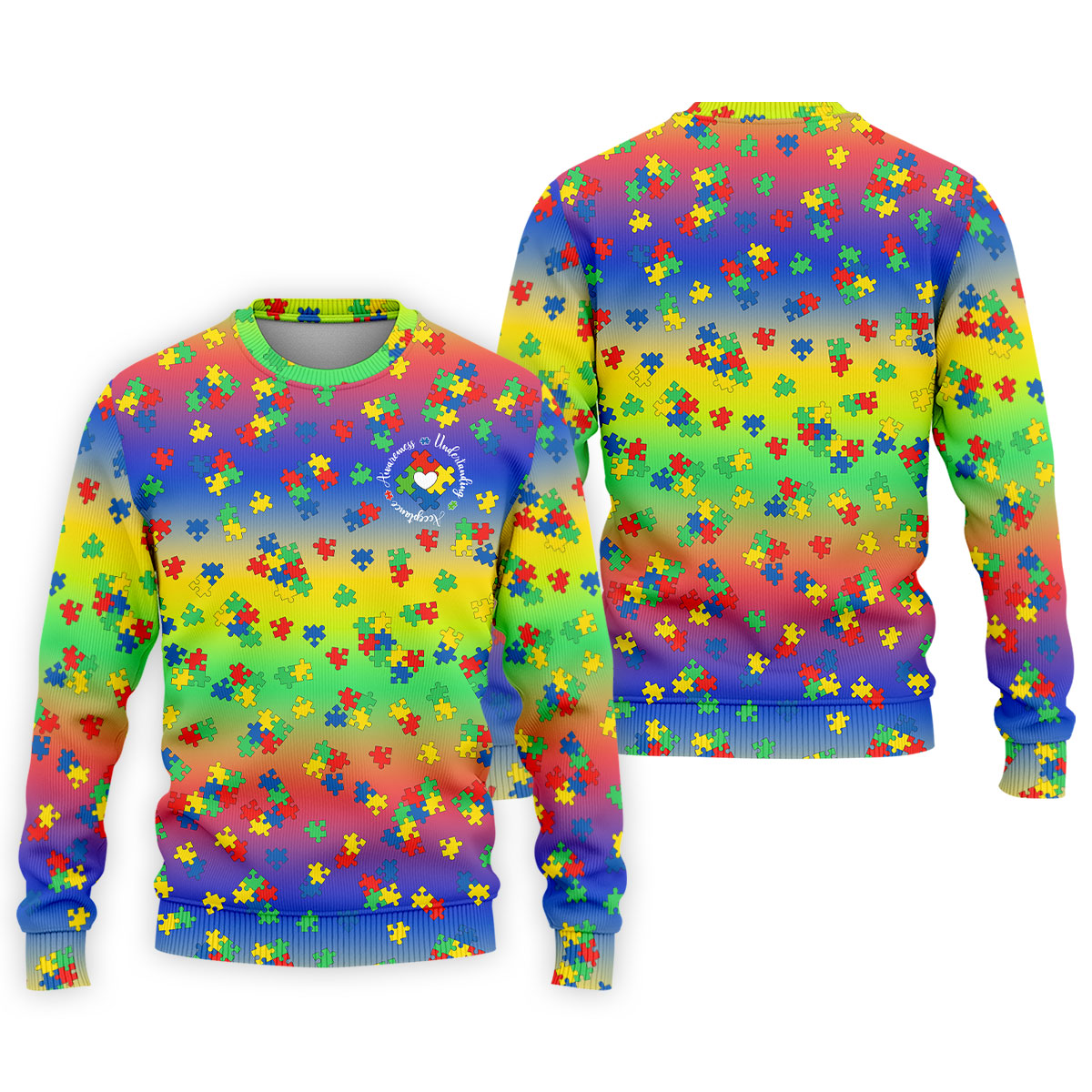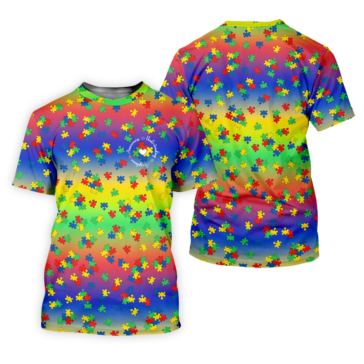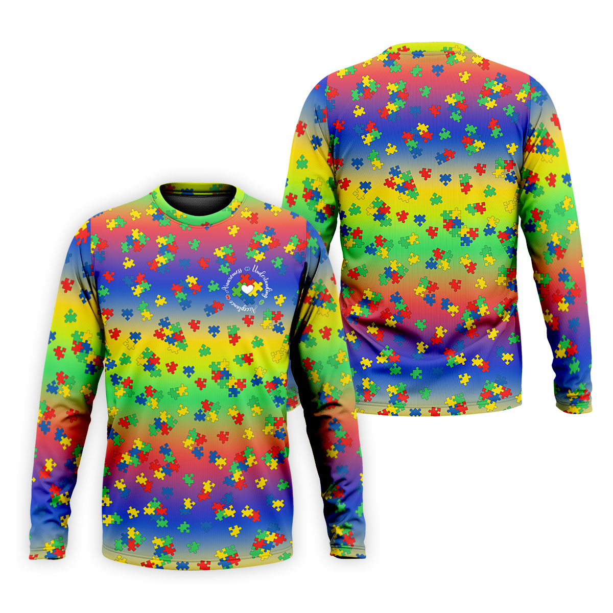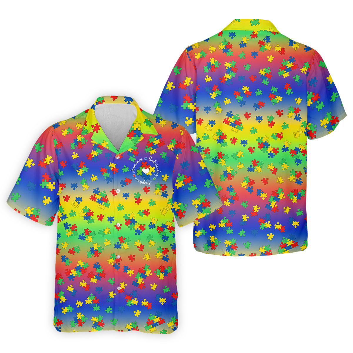 Acceptance Awareness Understanding Autism Puzzle Rainbow Gradient Golf Tops For Men, Golf Shirts For Men