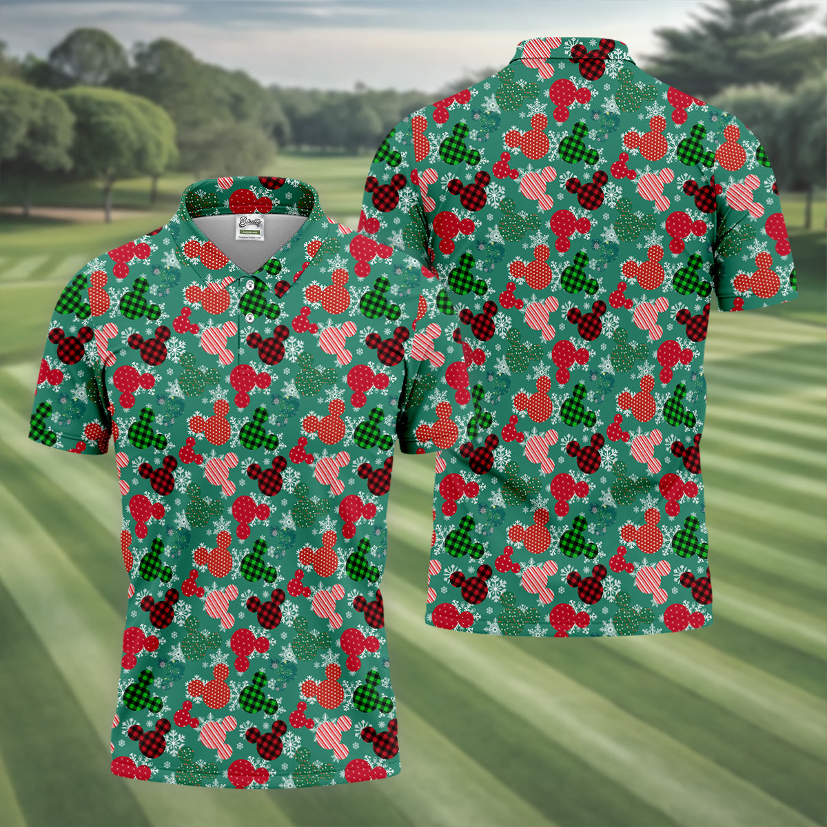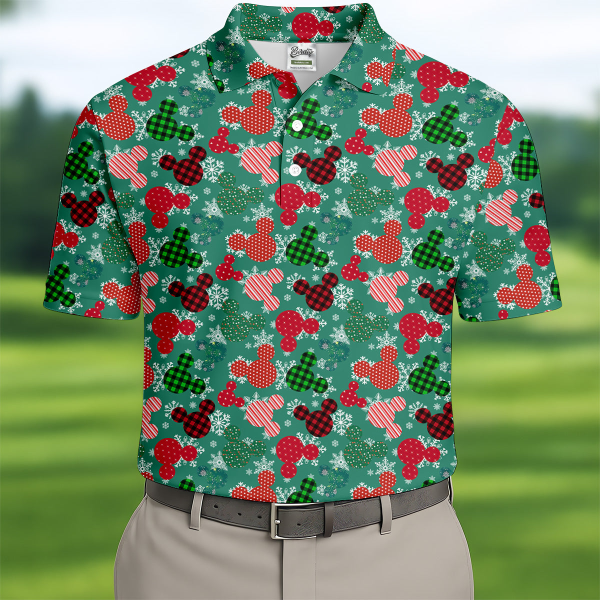 Adorable Cartoon Characters Xmas Golf Shirts, Cute Golf Outfit, Polo Shirts For Men, Christmas Golf Shirt
