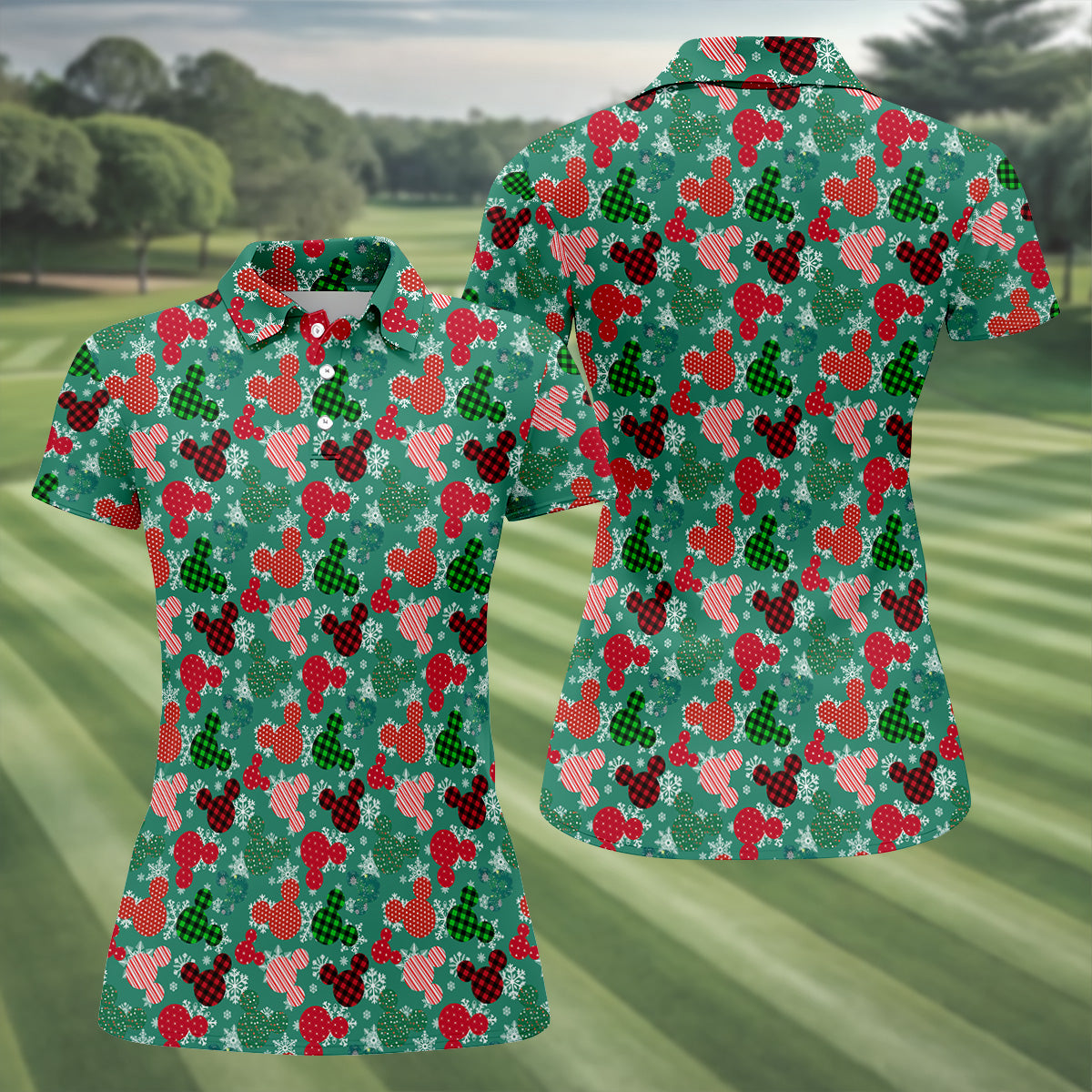 Adorable Cartoon Characters Xmas Golf Shirts, Cute Women's Golf Clothes, Ladies Golf Polos, Christmas Golf Shirt