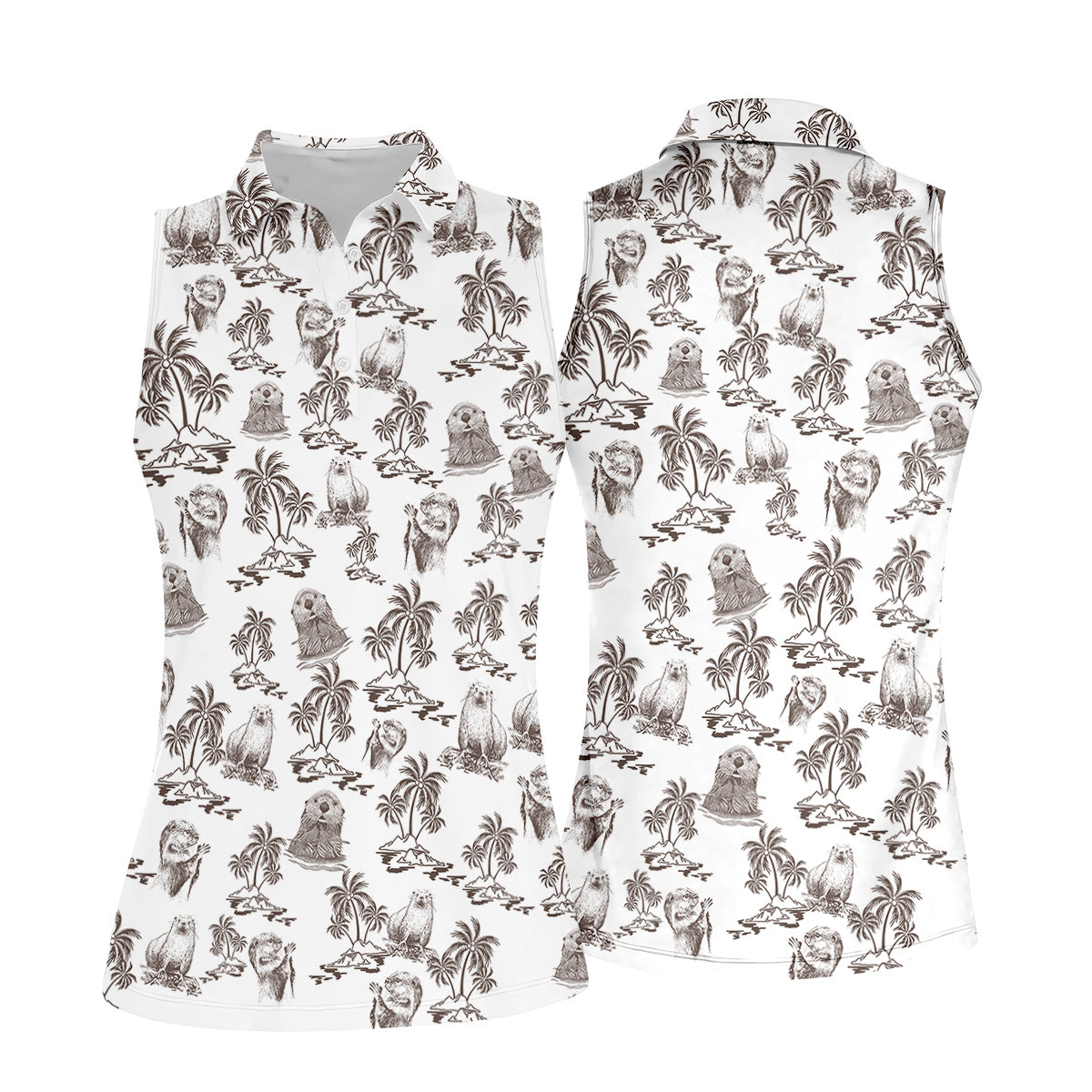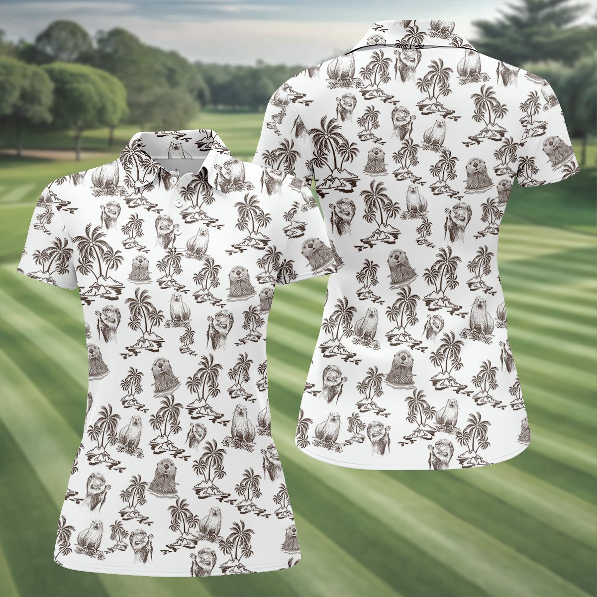 Adorable Sea Otter Tropical Golf Shirts, Cute Golf Outfit, Ladies Golf Tops, Women's Golf Gifts