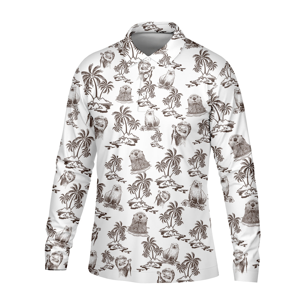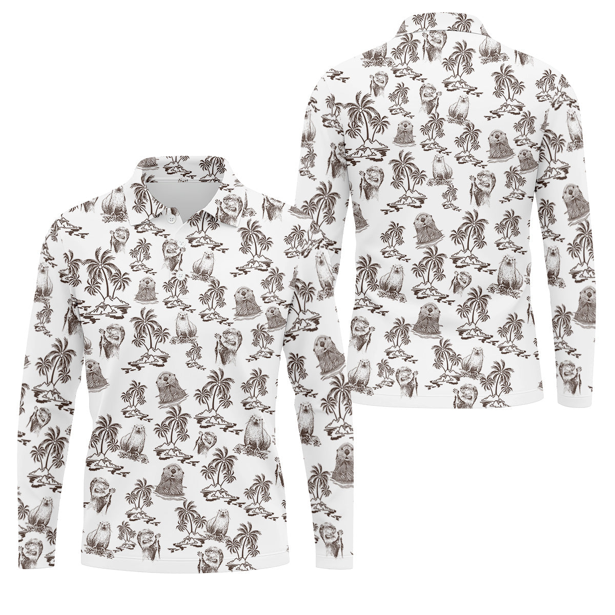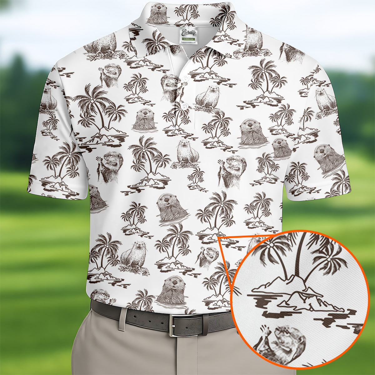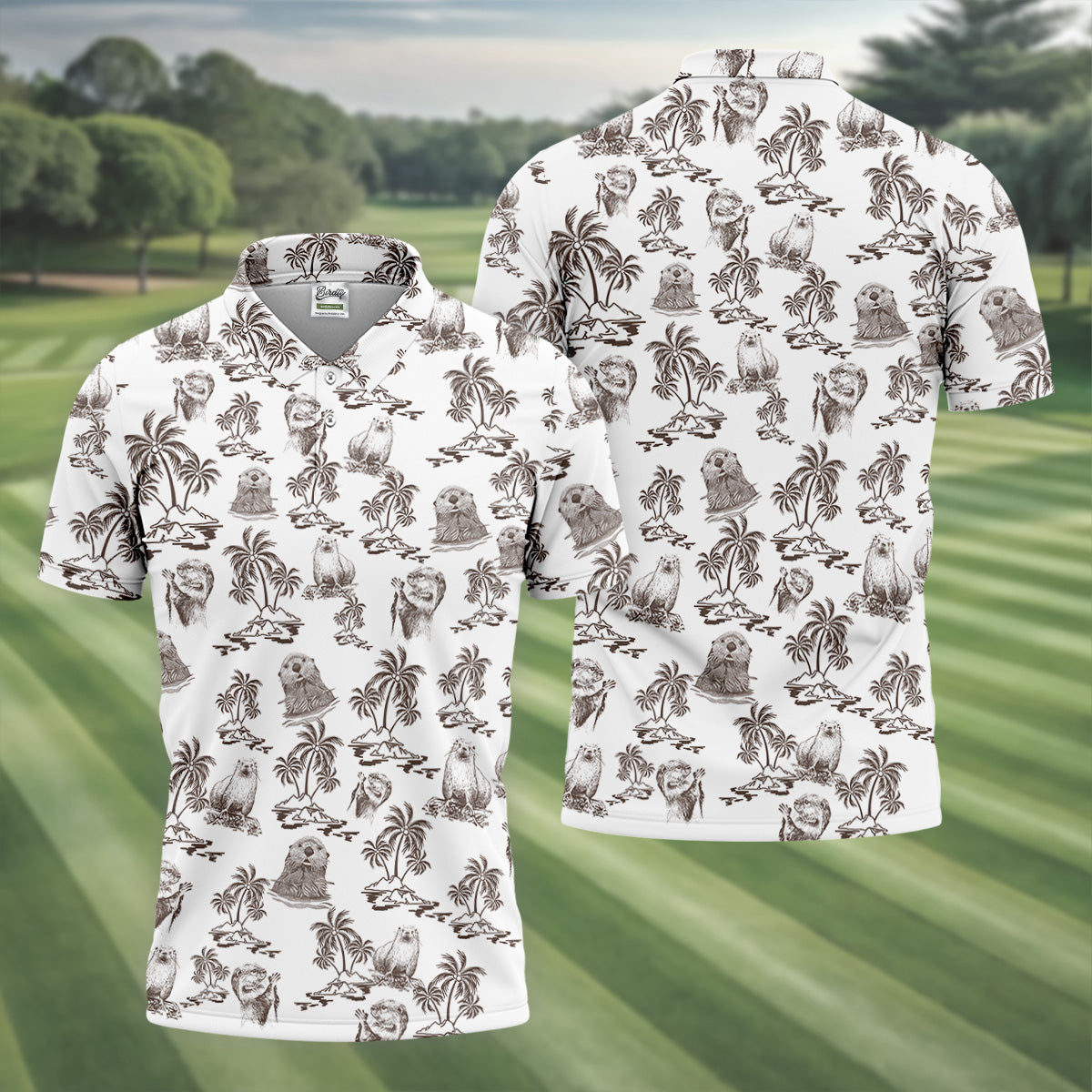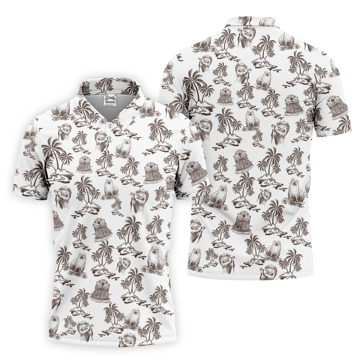 Adorable Sea Otter Tropical Golf Shirts, Cute Golf Outfit, Polo Shirts For Men, Golf Gift For Men