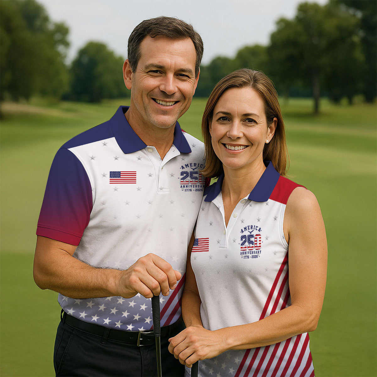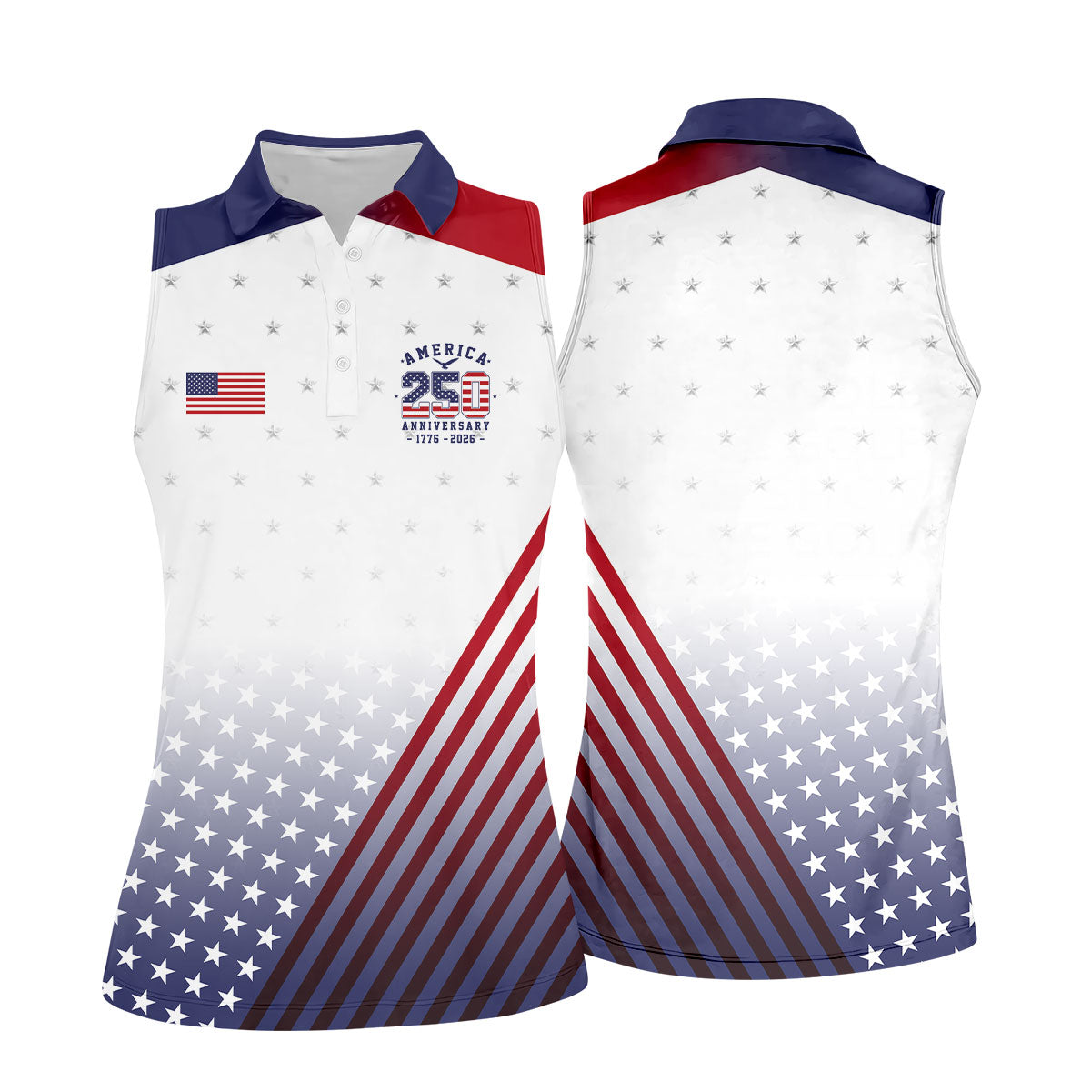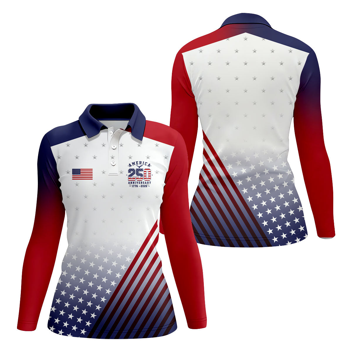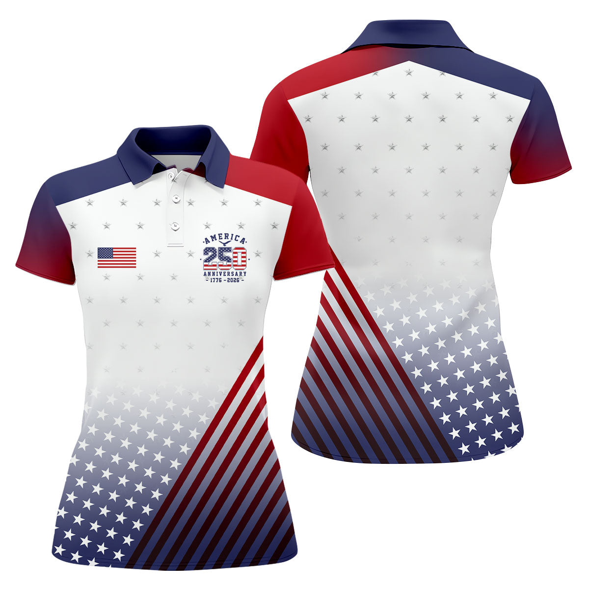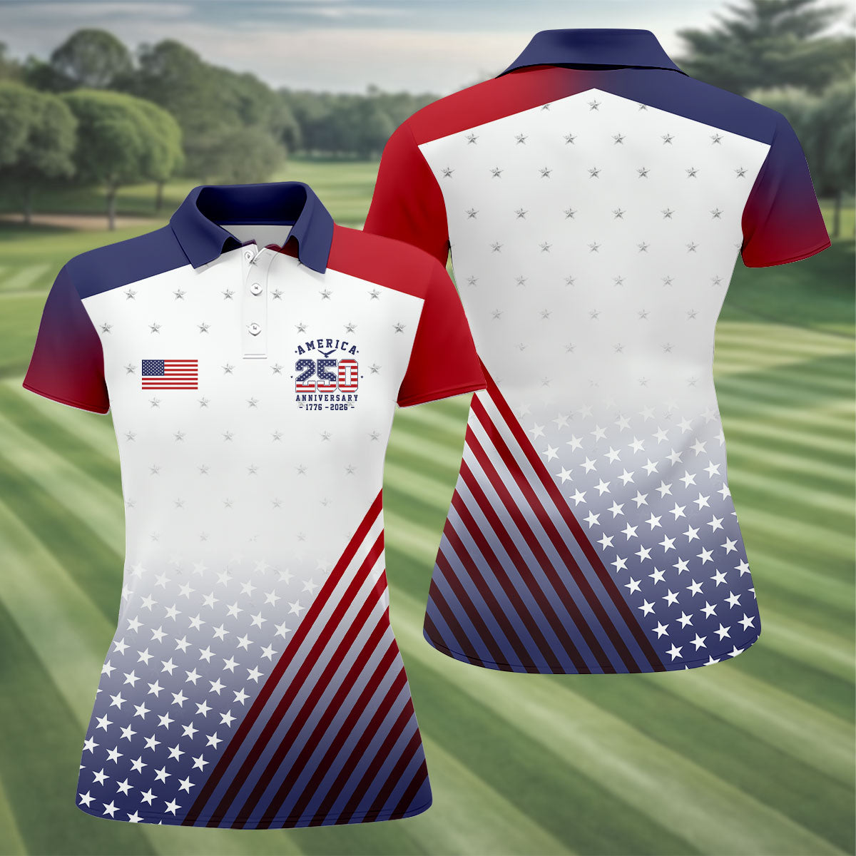 America 250 Anniversary 1776-2026 Flag Logo Golf Shirt For Women, Patriotic 4th Of July Golf Shirt