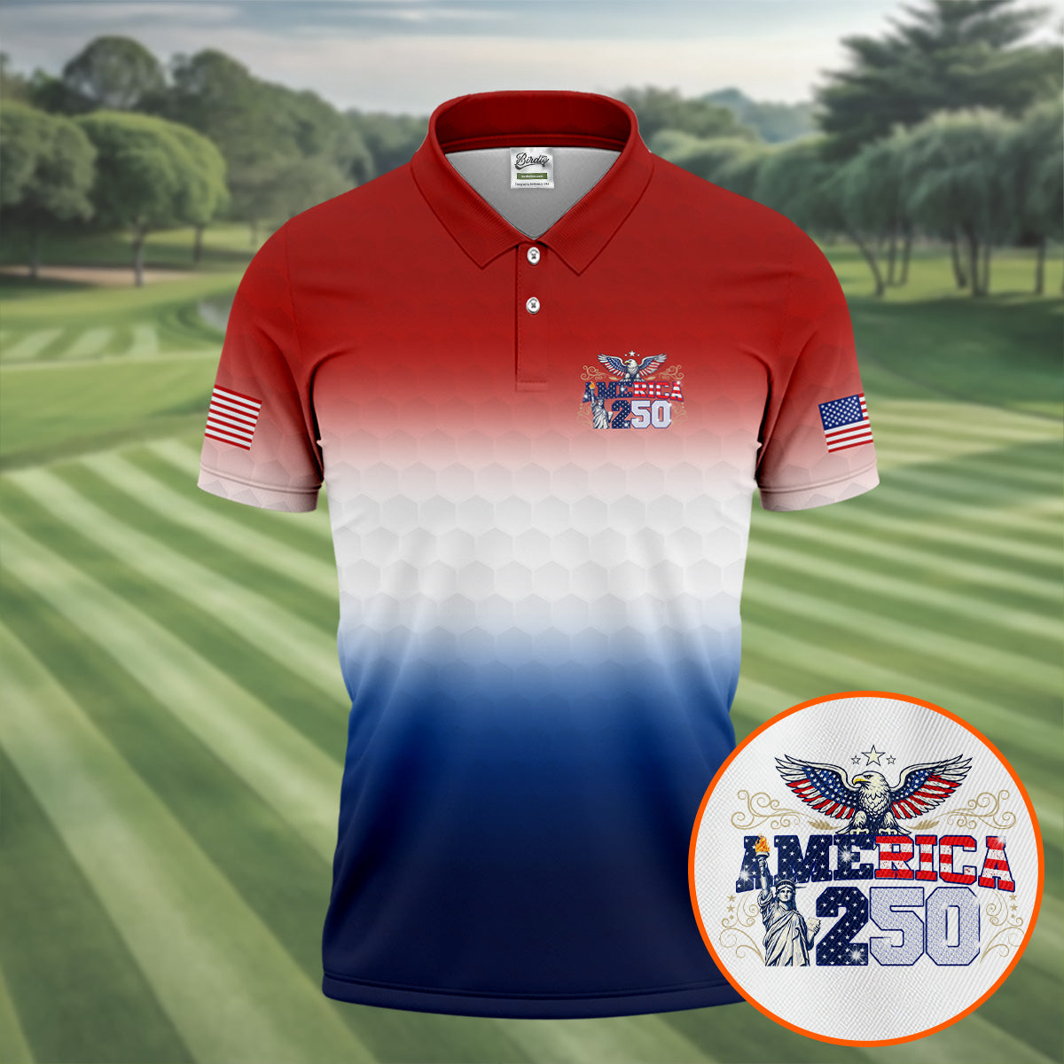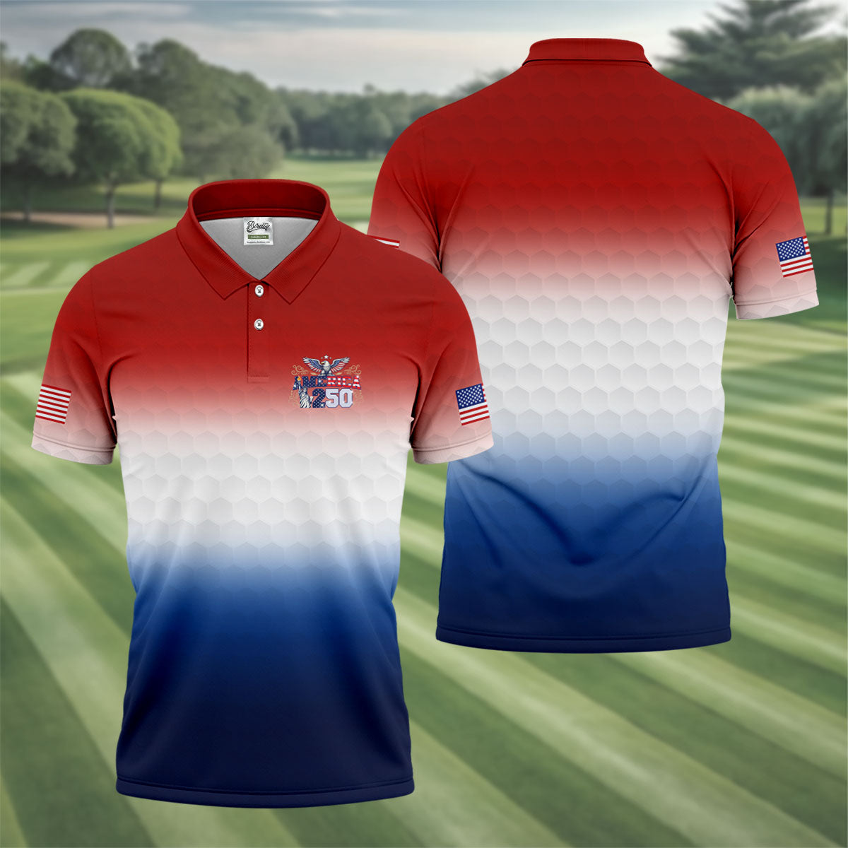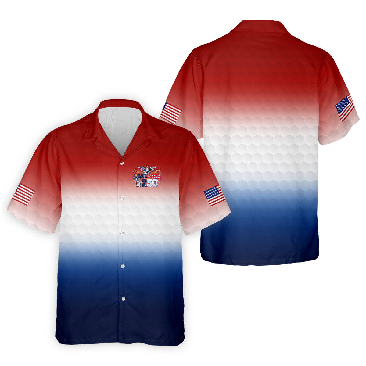 America 250 Red White Blue Golf Ball Pattern US Flag Golf Shirt, Patriotic 4th Of July Golf Shirts For Men