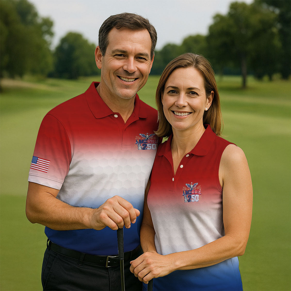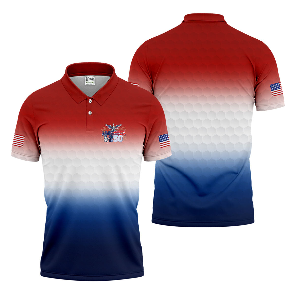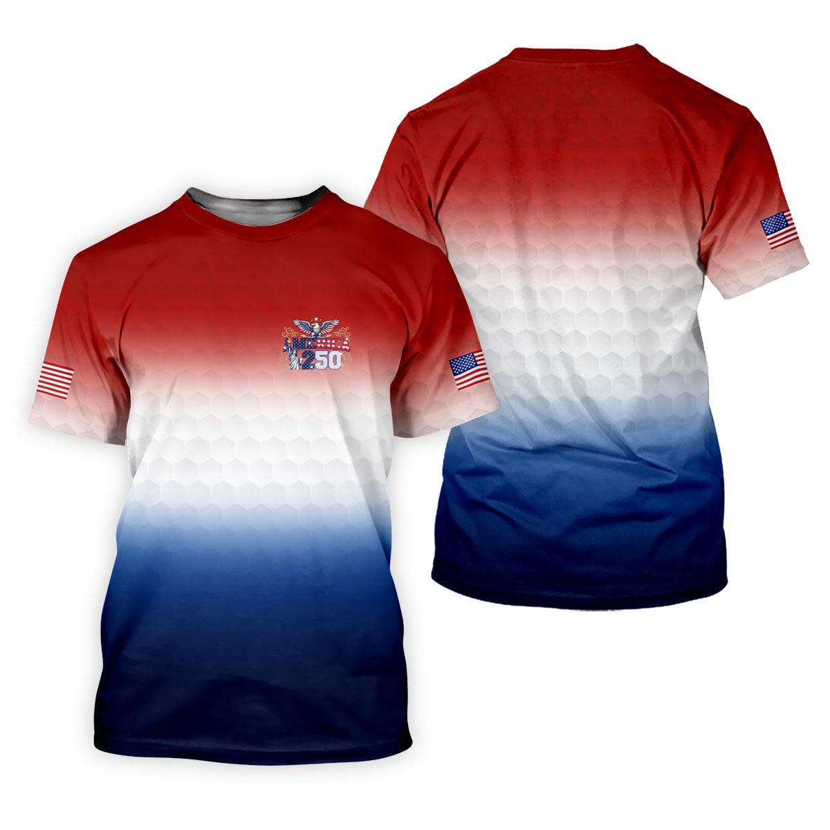 America 250 Red White Blue Golf Ball Pattern US Flag Golf Shirt, Patriotic 4th Of July Golf Shirts For Men