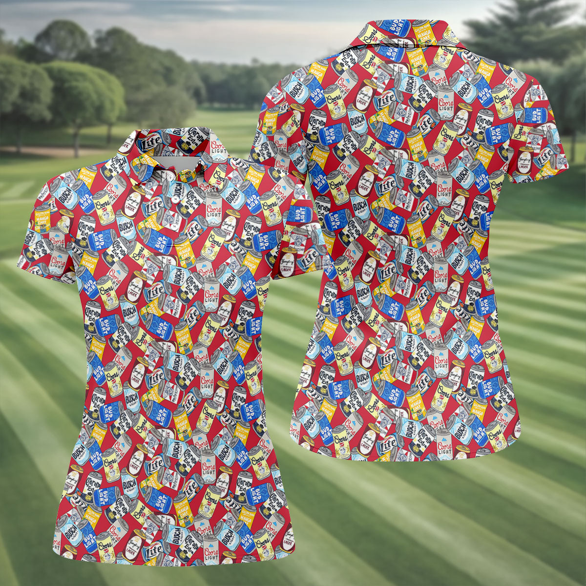 American Beer Cans Red Golf Shirt, Ladies Golf Shirts, Golf And Beer Golf Shirt For Women