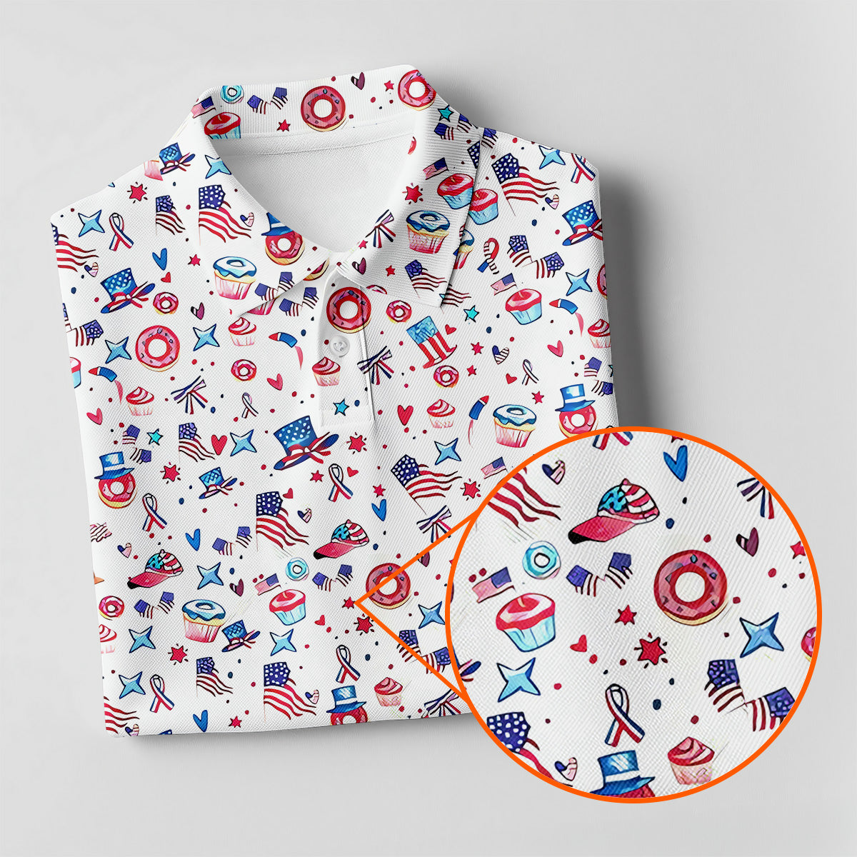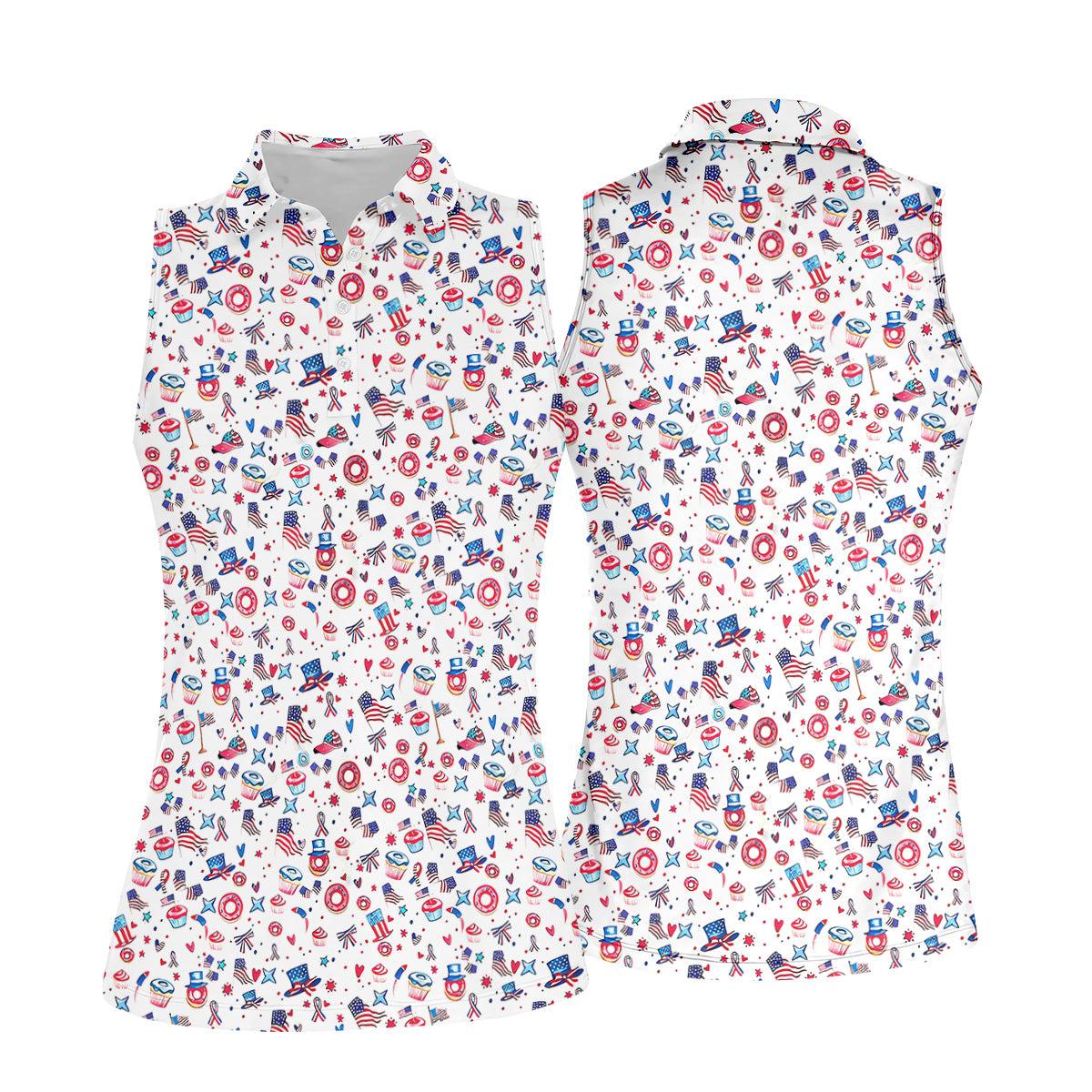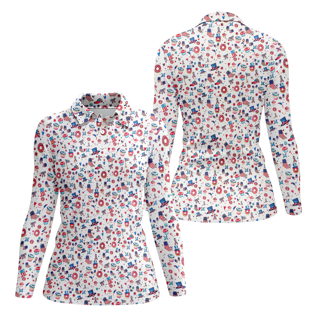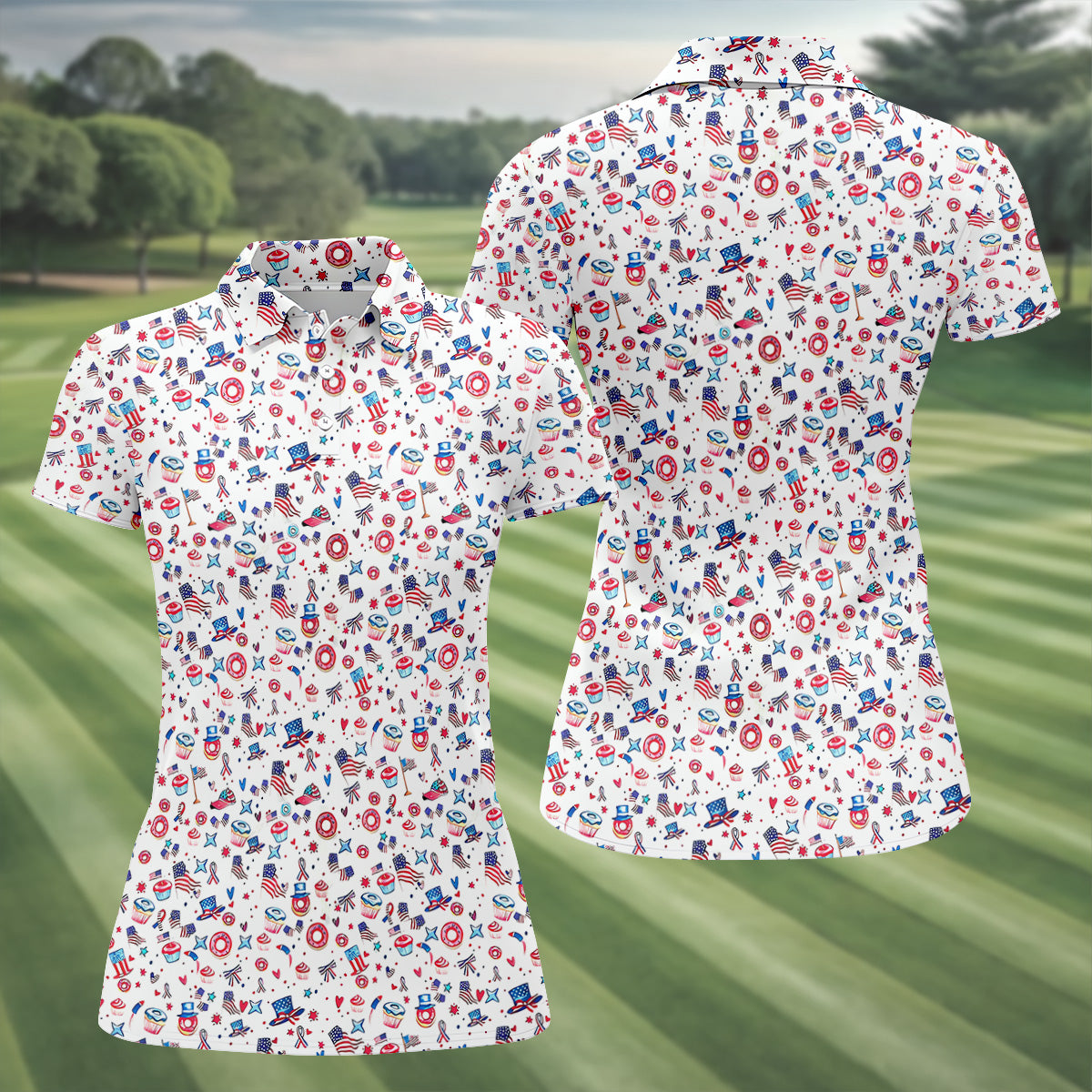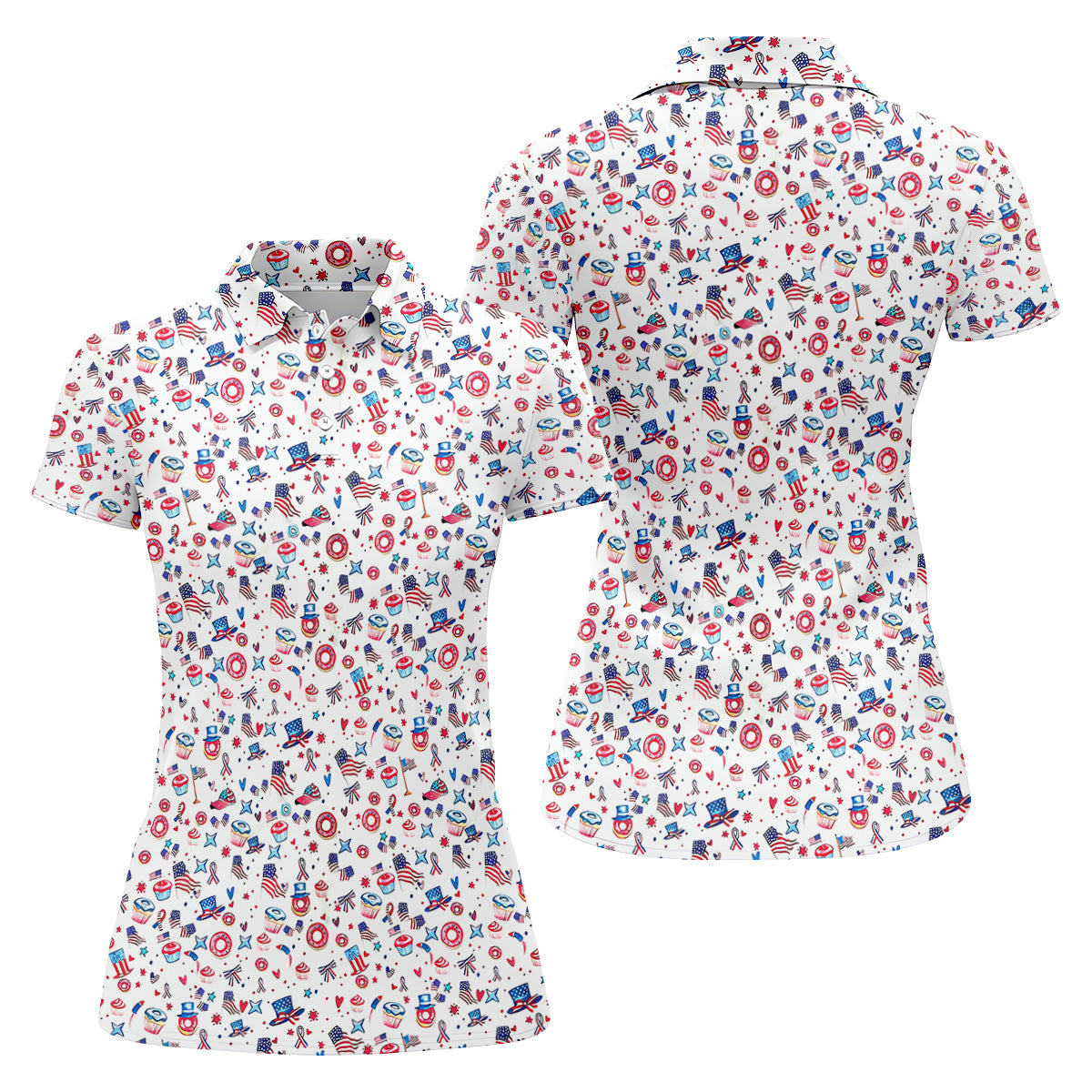 American Flag Donut Pattern Fun Women's Golf Shirts, Ladies Patriotic Golf Shirts, Women's Polo Shirt