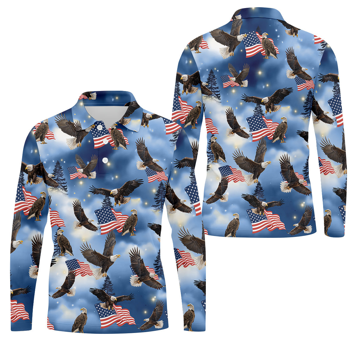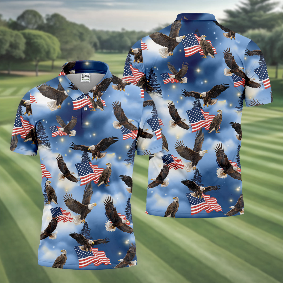 Meet the American Flag Eagle Men's Patriotic Golf Shirts, Golf Gift For Men, Golf Shirts For Men – a shirt so bold it makes argyle cry in the corner. Designed for golfers who'd rather make a fashion statement than follow dress codes, this polo is your ticket to turning heads, raising eyebrows, and maybe distracting your buddies just enough to win a few holes. (We’re not saying it’s cheating... we’re saying it’s strategy.)