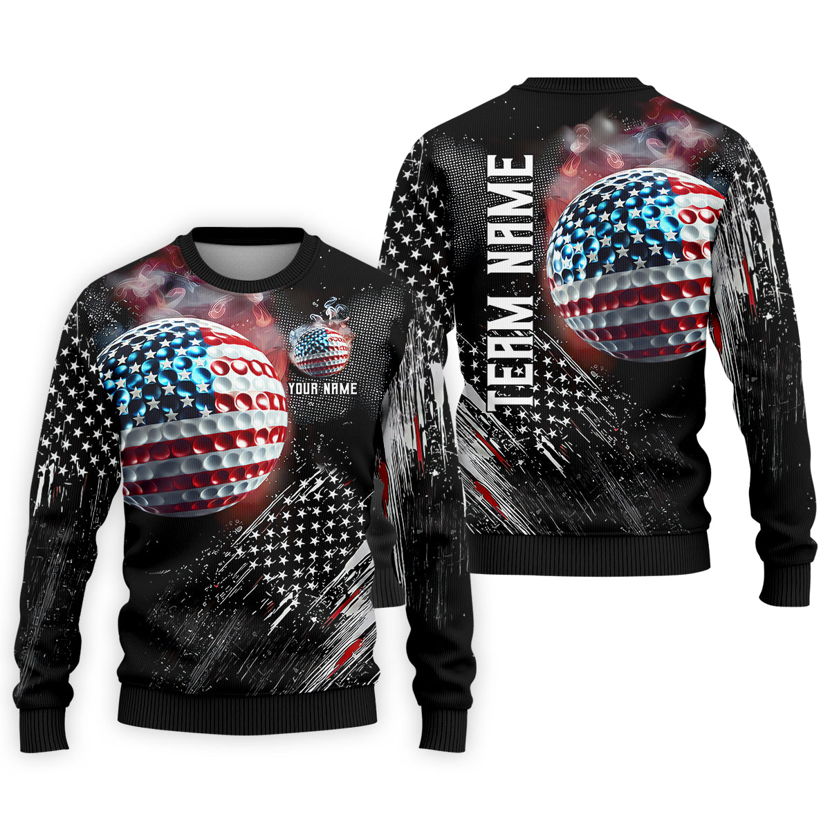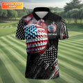 American Flag Golf Ball Funny Golf Polo Shirt, Christmas Golf Gift