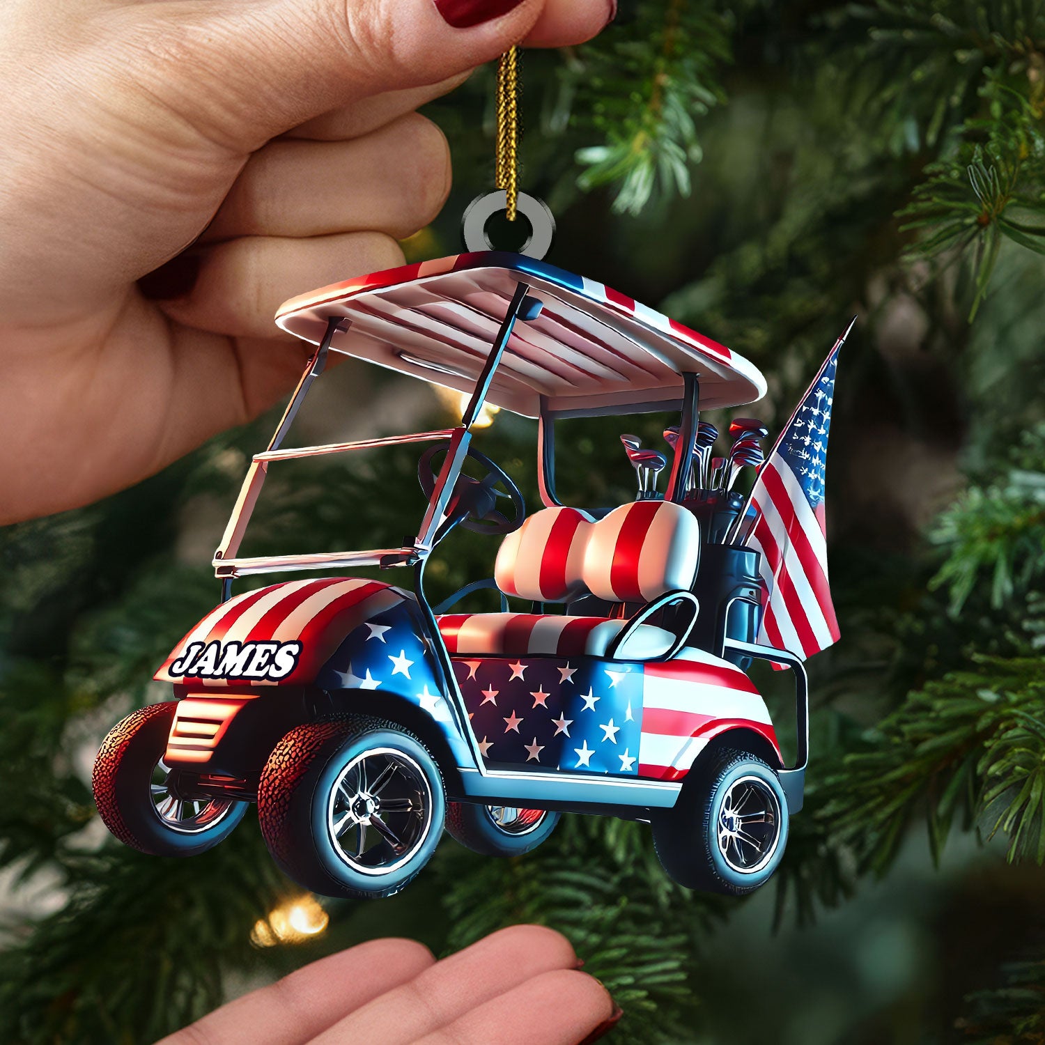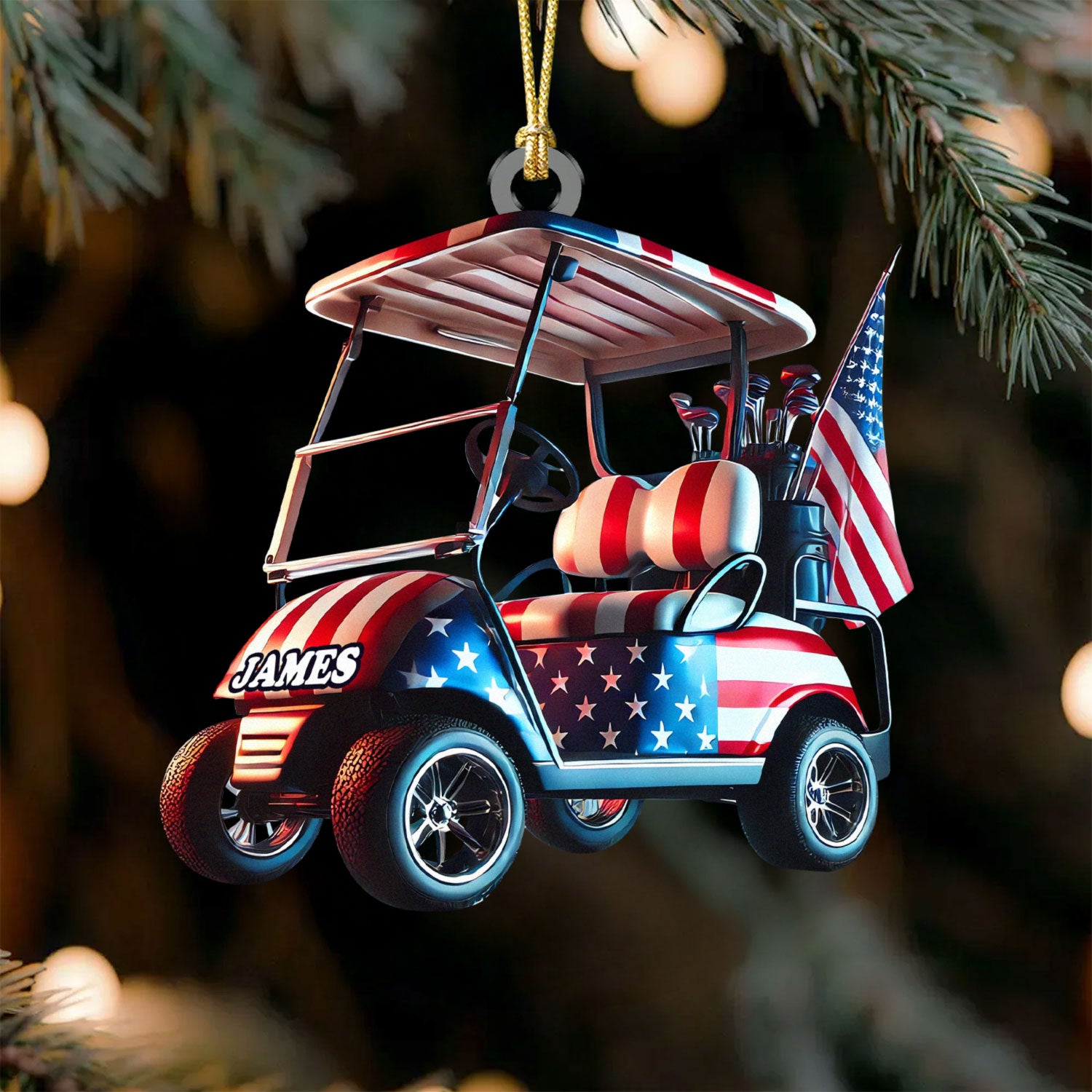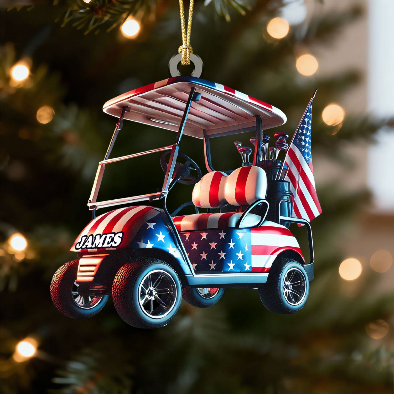American Flag Golf Cart Acrylic Ornament, Patriotic Christmas Ornaments, Golf Xmas Ornaments, Golf Christmas Gifts