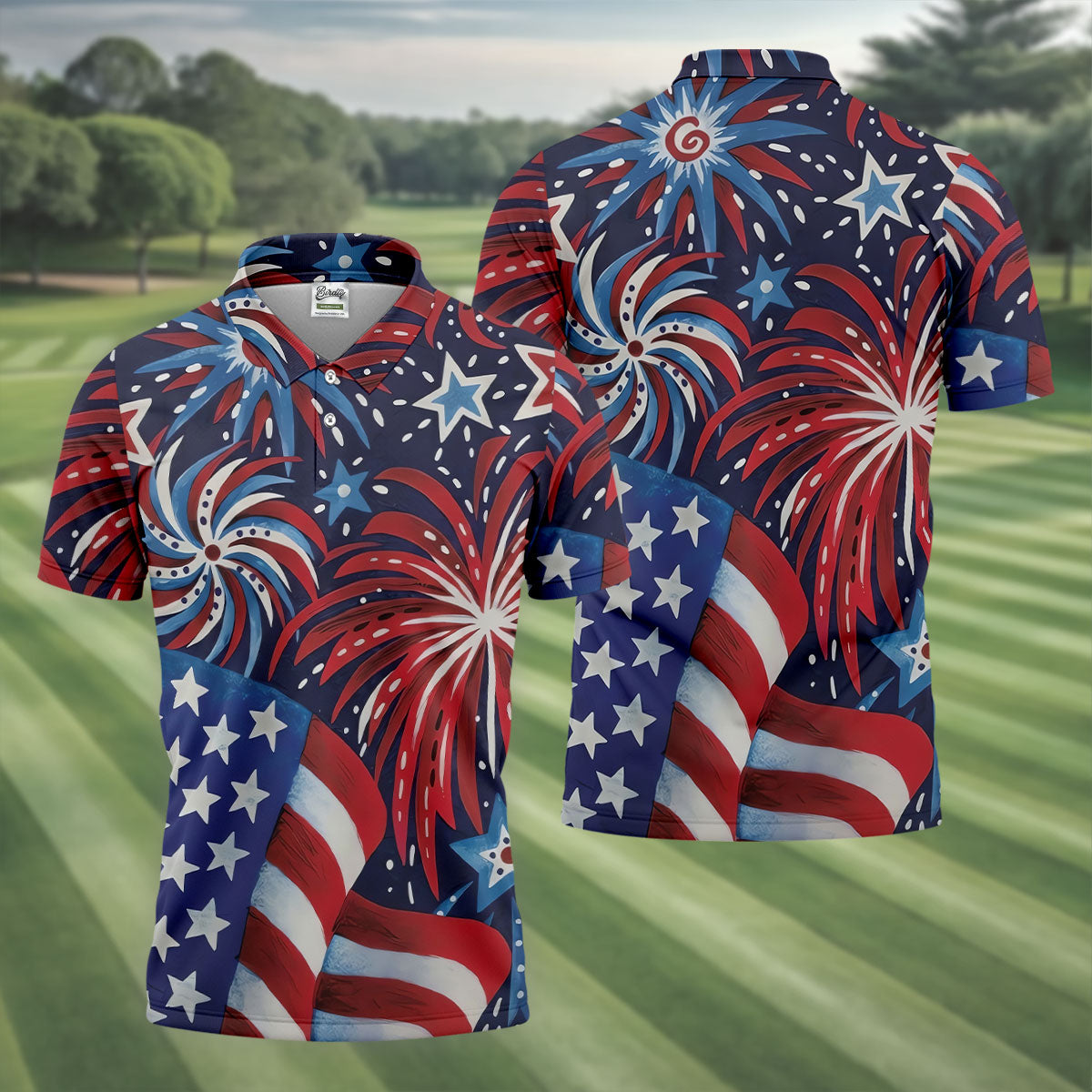 American Flag Pattern Red White Blue 250th Anniversary Patriotic Golf Shirt, Golf Shirts For Men