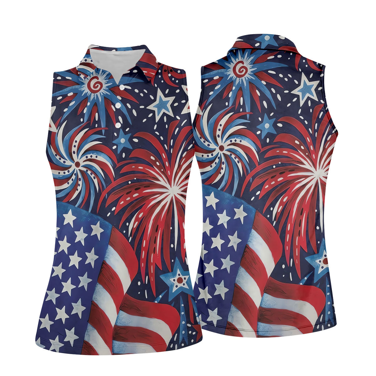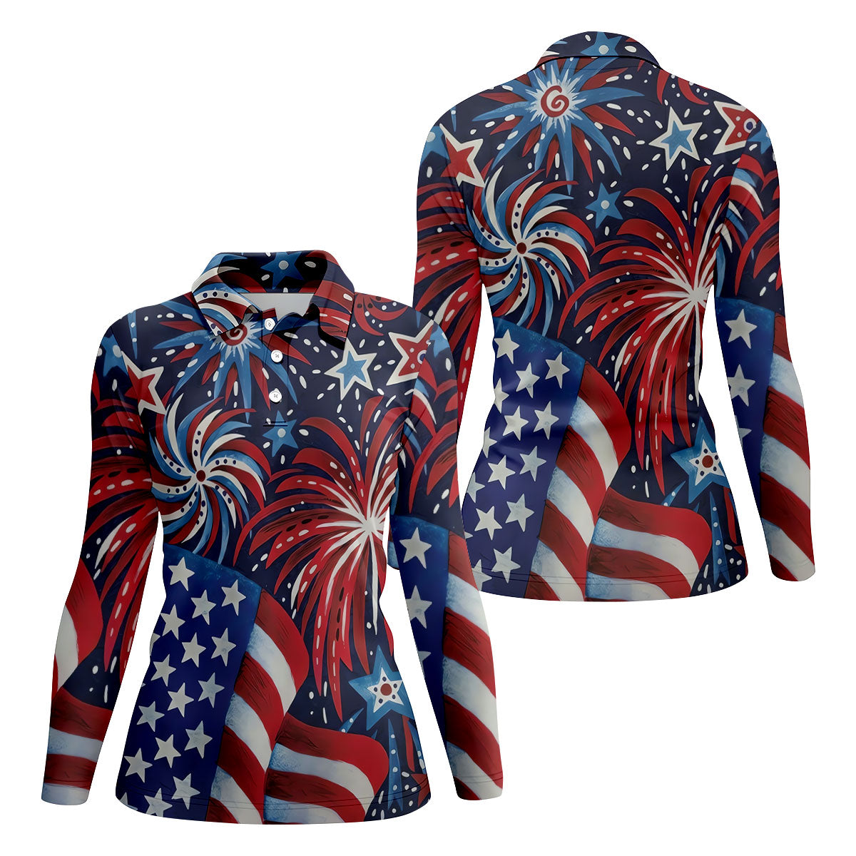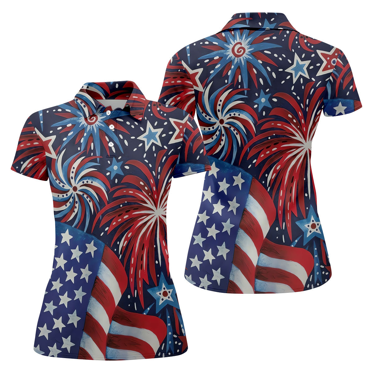 American Flag Pattern Red White Blue 250th Anniversary Patriotic Golf Shirt, Women's Polo Shirt