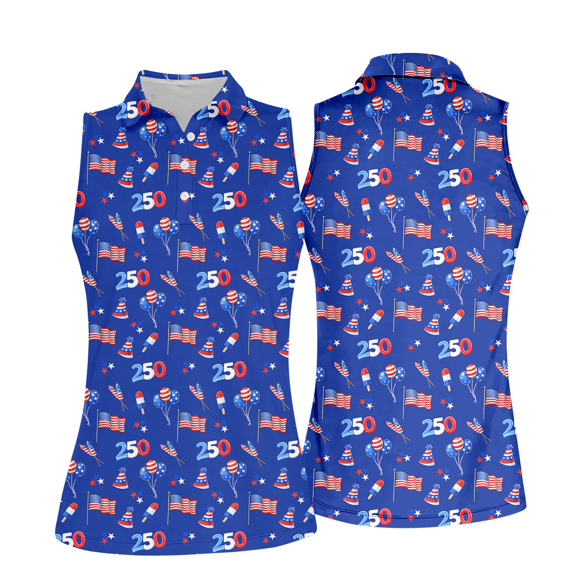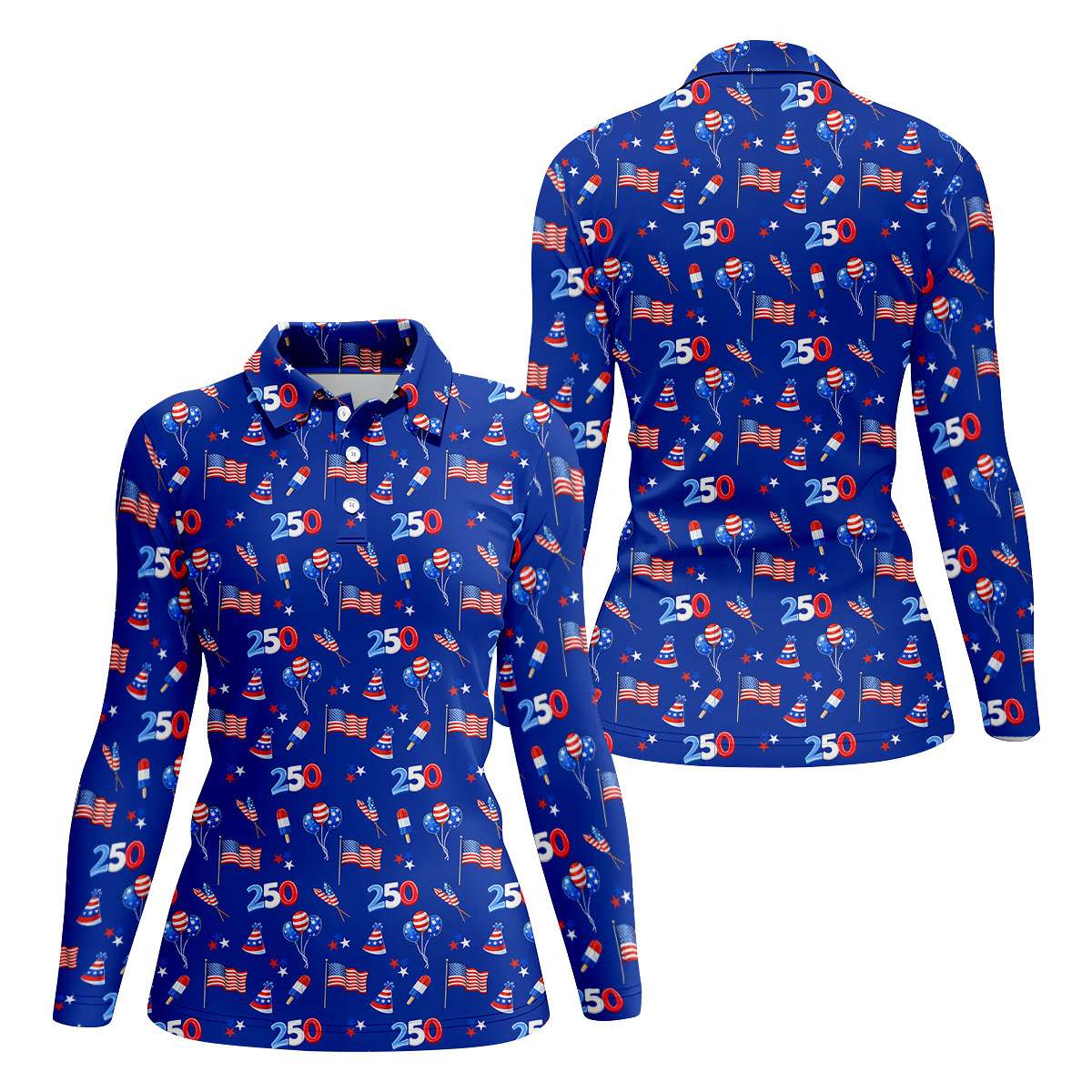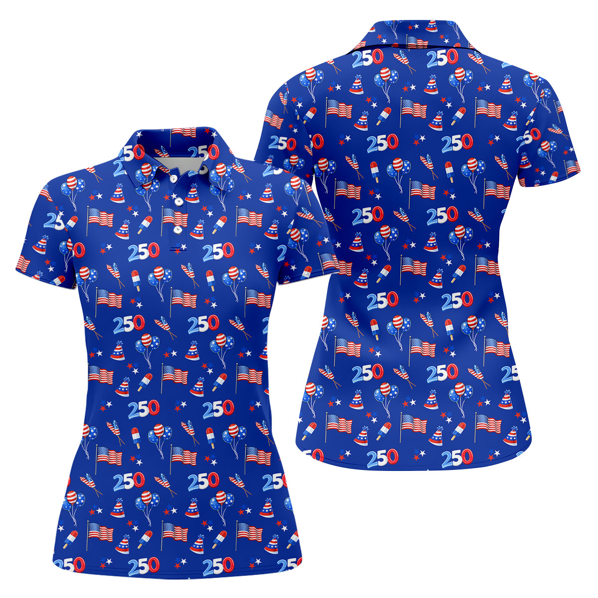 American Flags Balloon Hats Seamless Pattern 250th Anniversary Golf Shirt For Women, Patriotic Golf Shirt