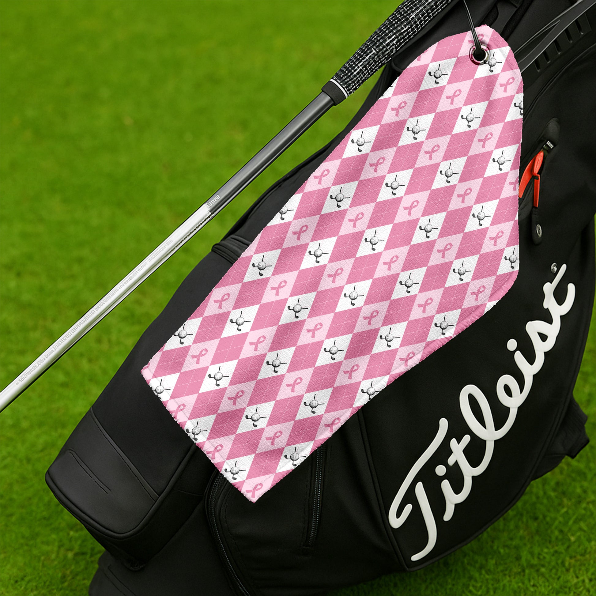 Argyle Pink Breast Cancer Golf Towel, Unique Gift For Golfer, Christmas Golf Gift, Golf Accessories