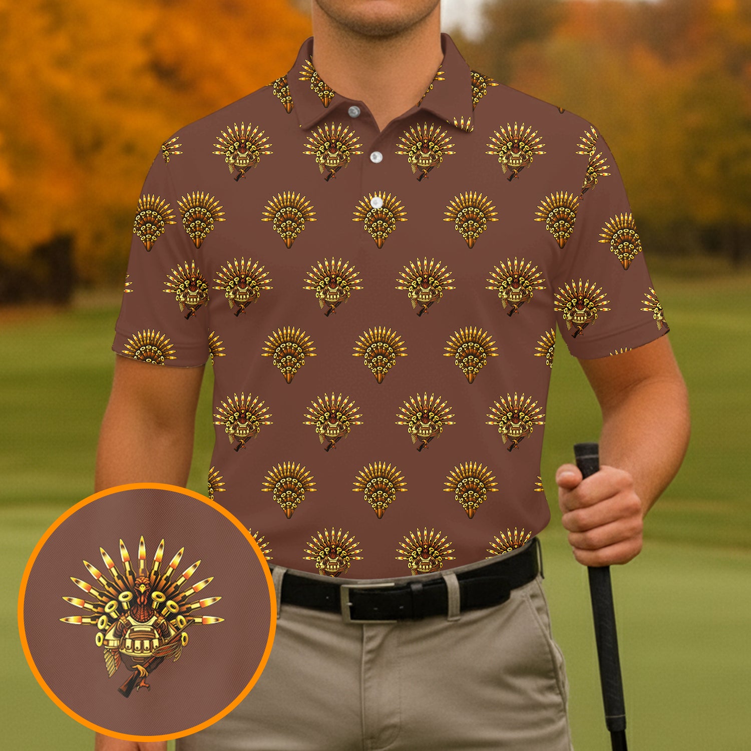 Army Turkey Thanksgiving Golf Tops For Men, Fun Golf Shirts For Men, Christmas Golf Shirt, Polo Shirts For Men