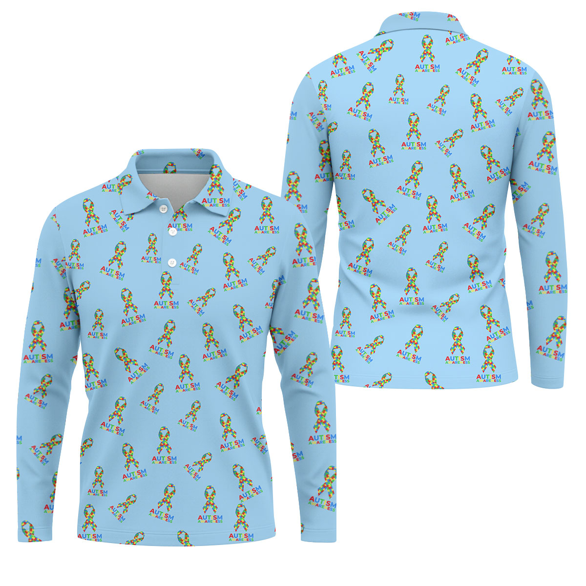 Autism Awareness Colors Autism Ribbon Blue Golf Shirt, Golf Tops For Men, Golf Shirts For Men