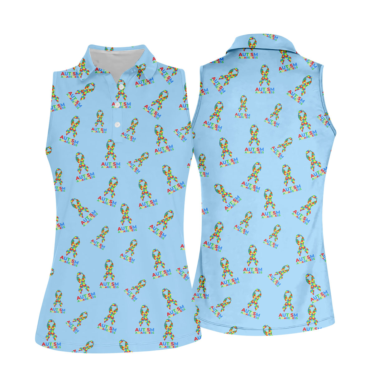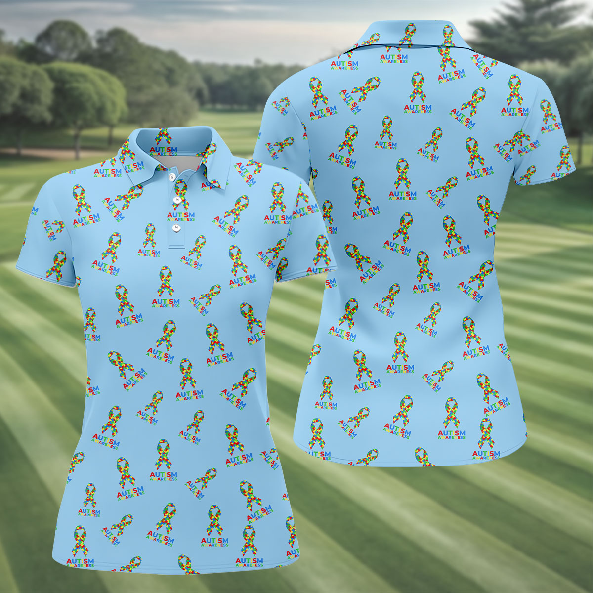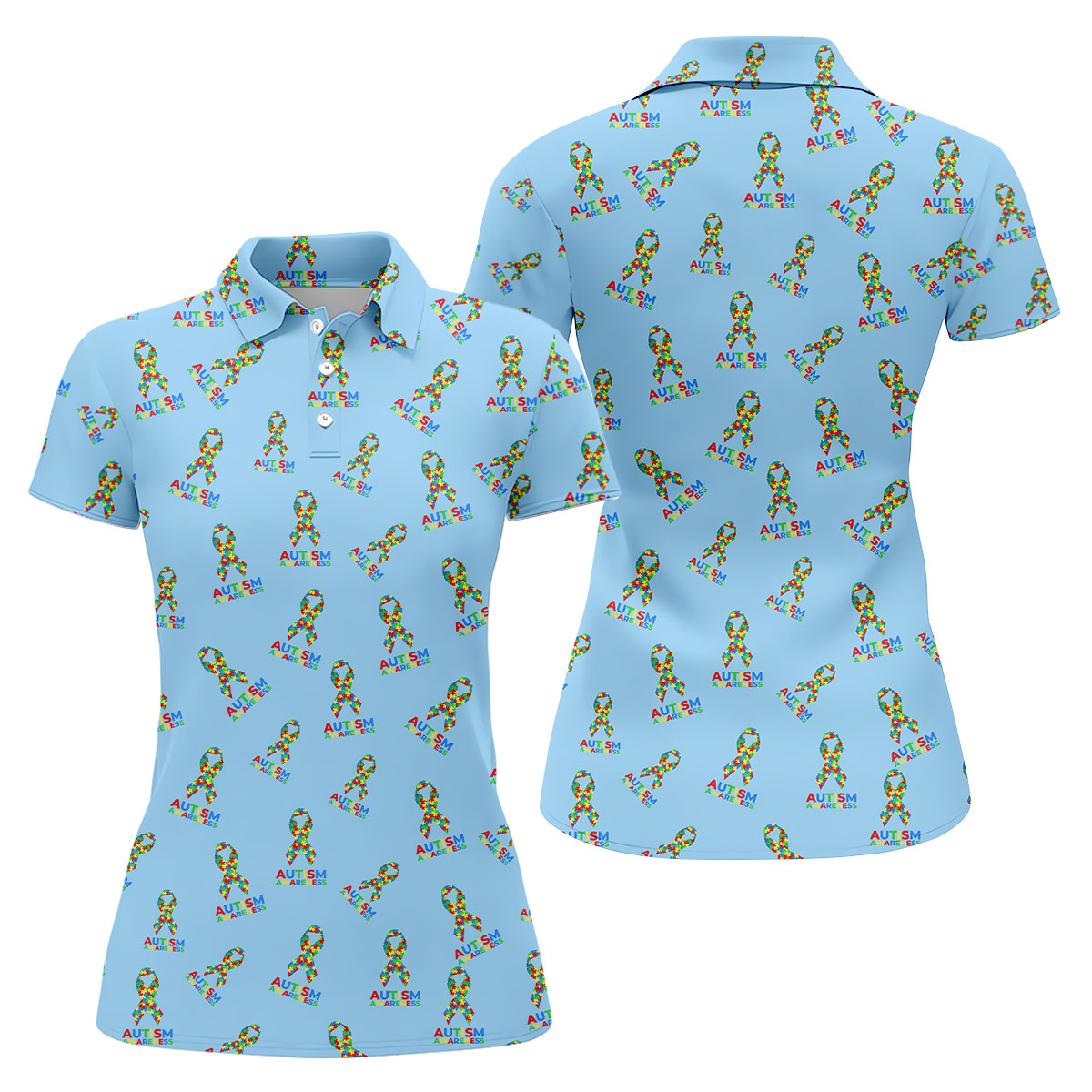 Autism Awareness Colors Autism Ribbon Blue Golf Shirt, Women's Golf Tops, Ladies Golf Polos