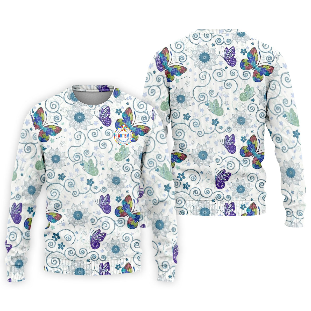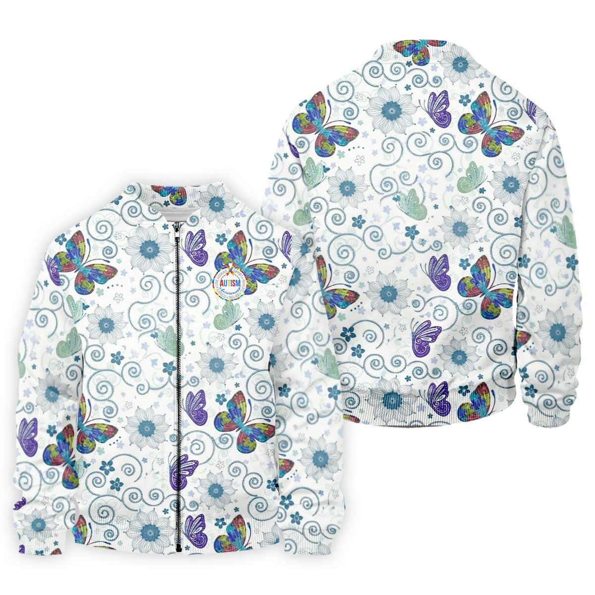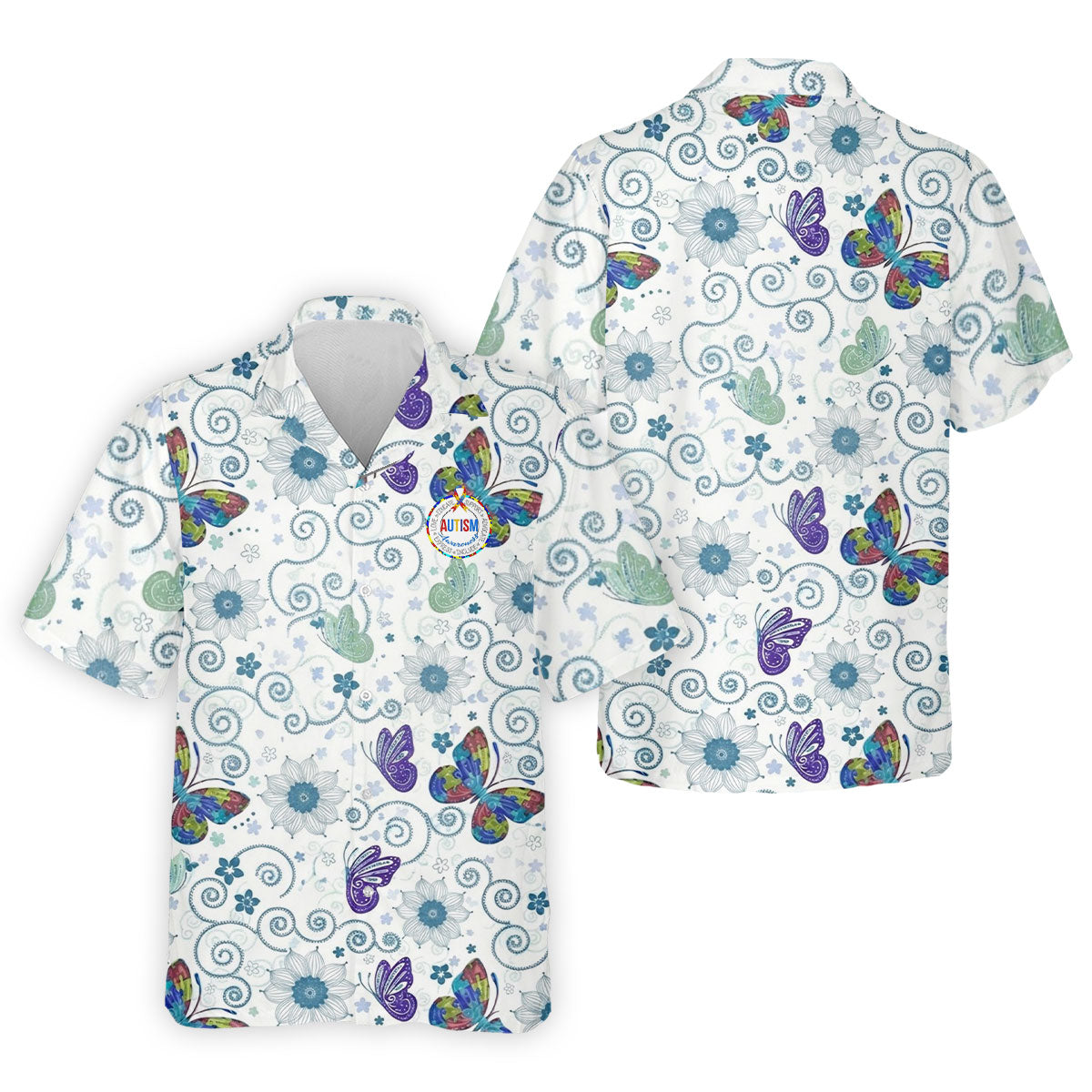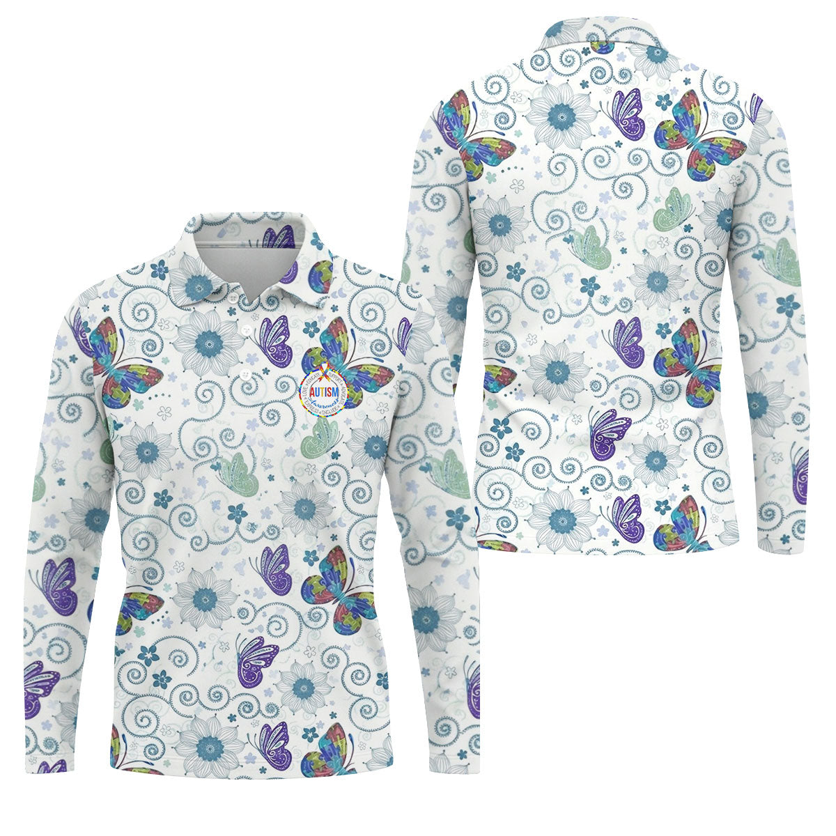 Autism Awareness Flower And Butterfly Puzzle Ribbon Men's Golf Shirt, Polo Shirts For Men