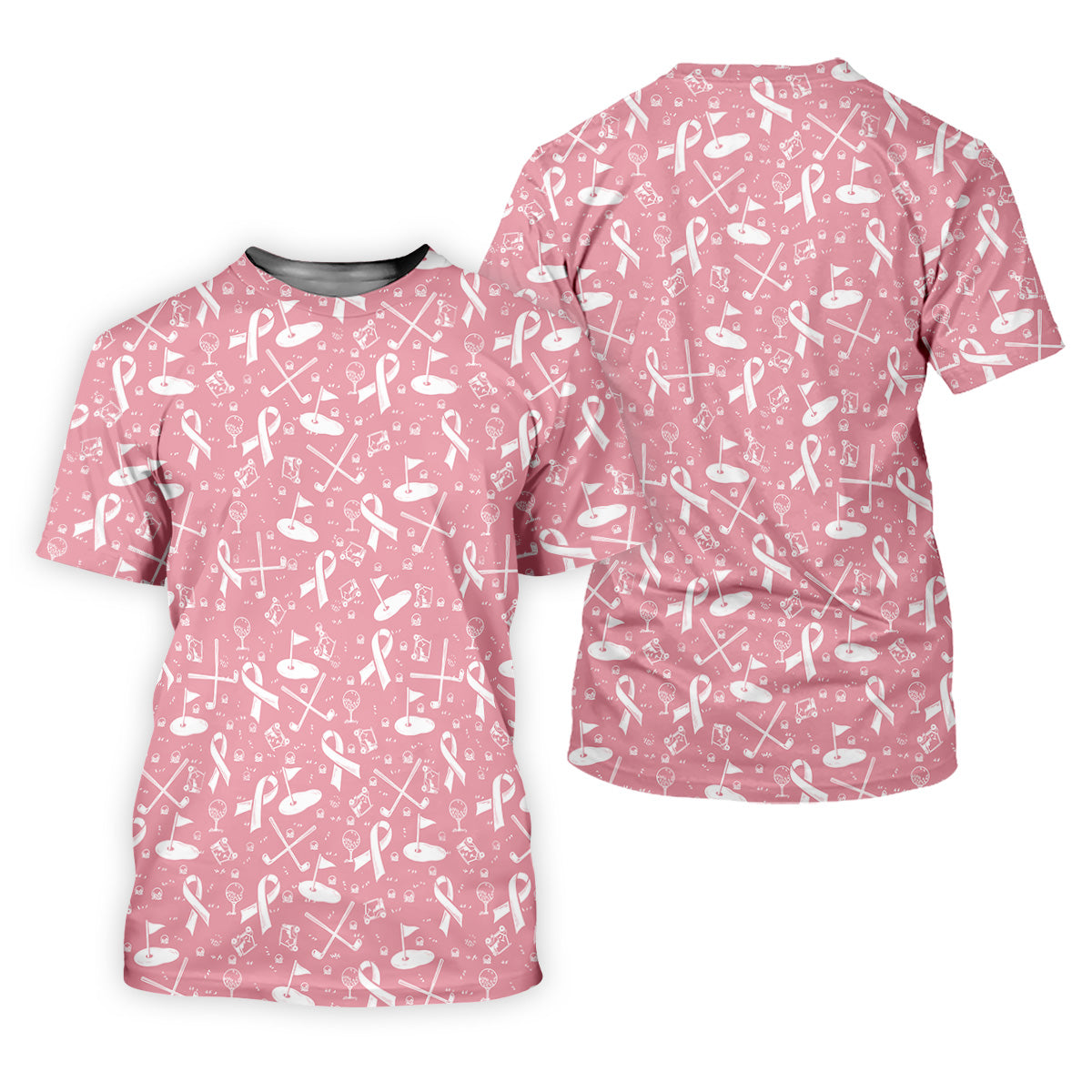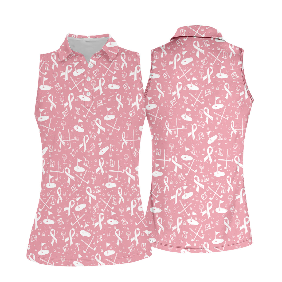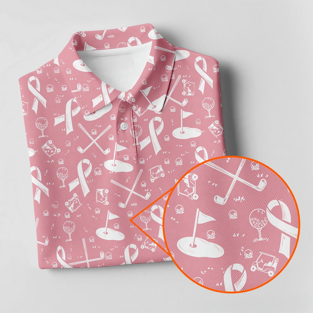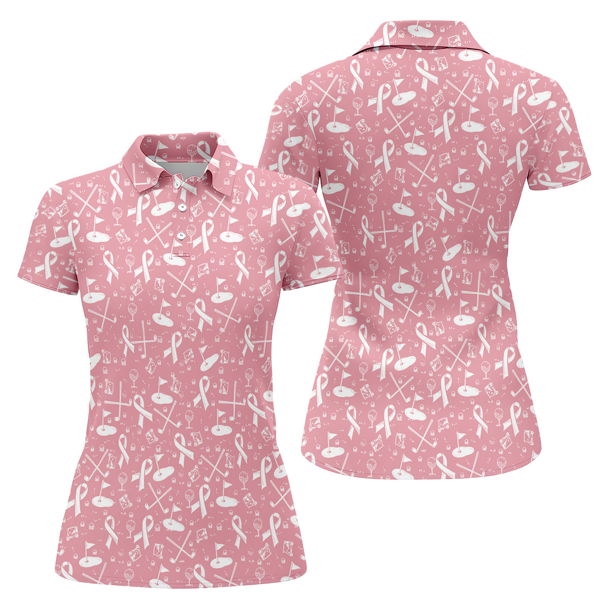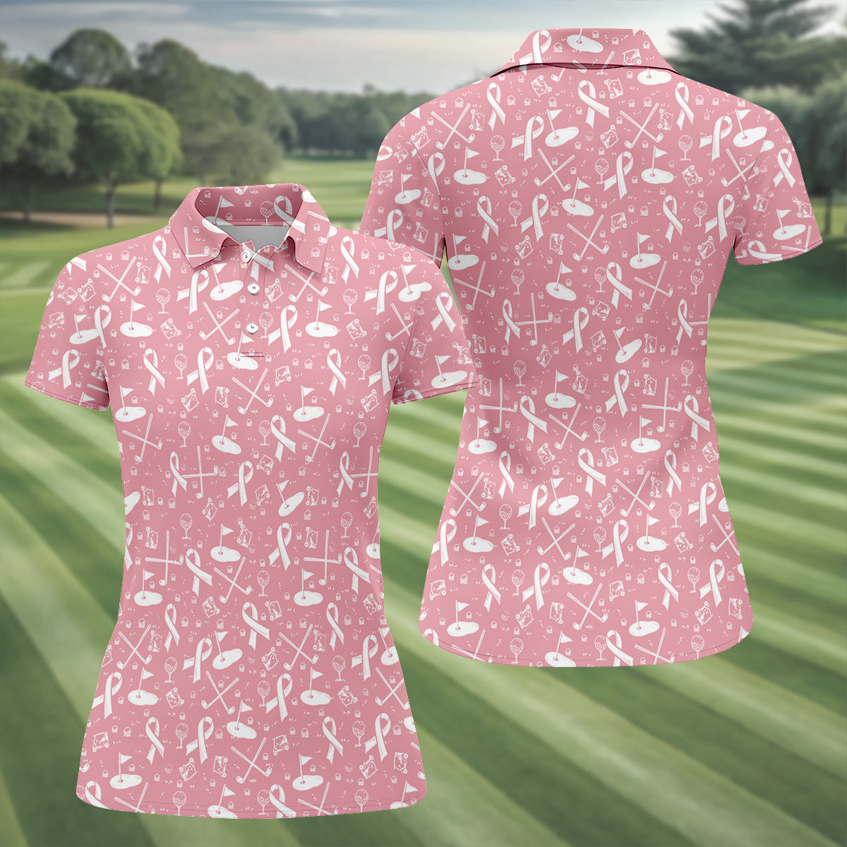 Awareness Ribbon Light Pink And White Golf Shirt, Cancer Awareness Shirt, Ladies Golf Shirts