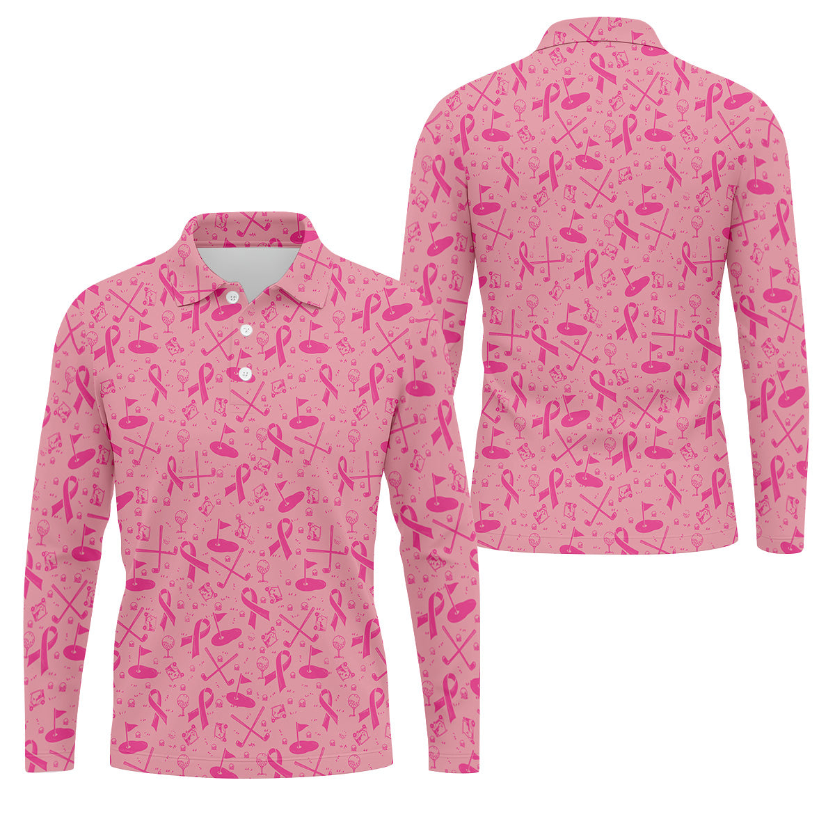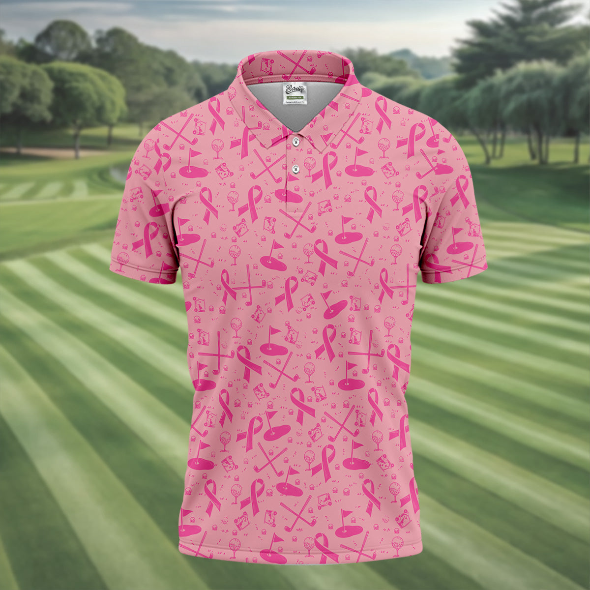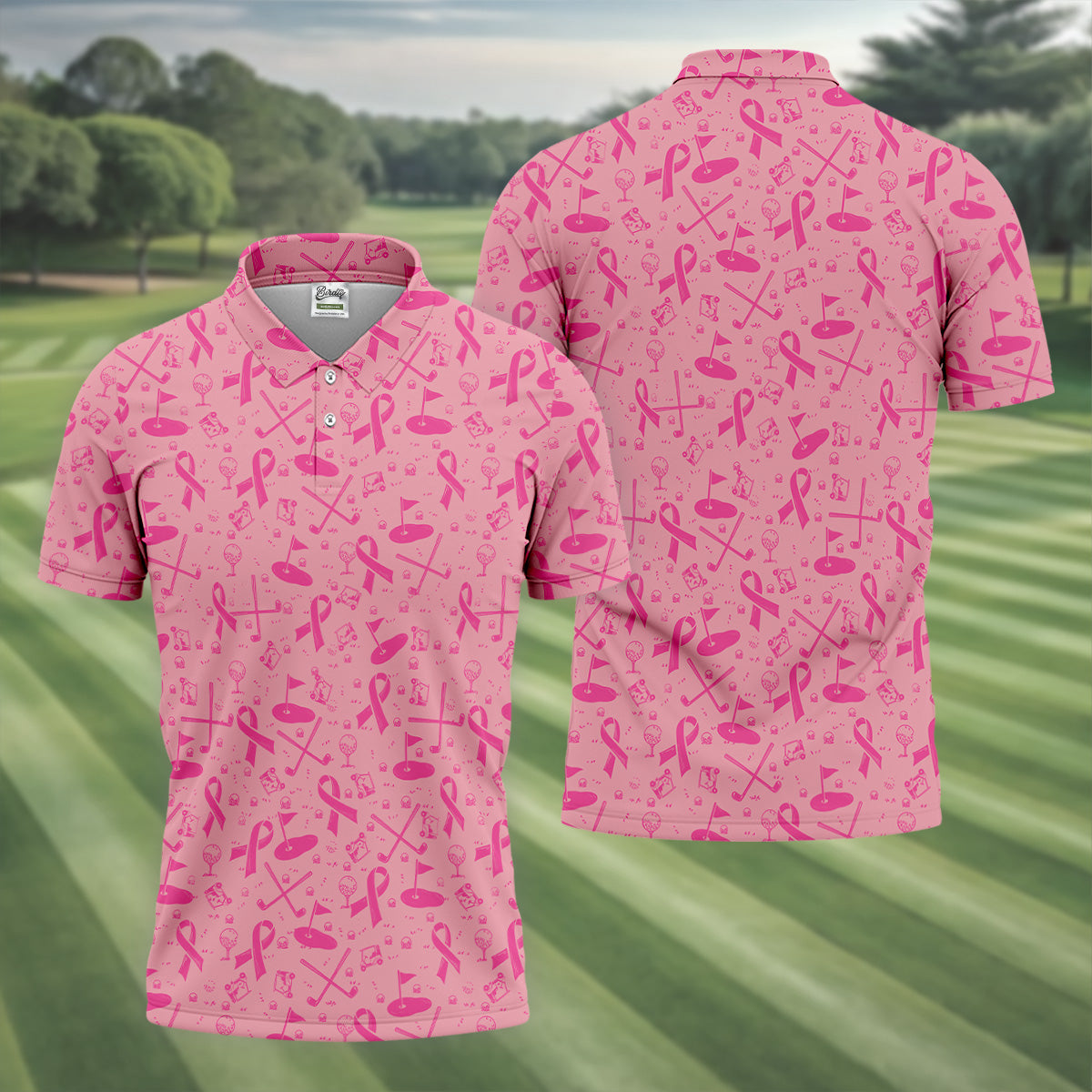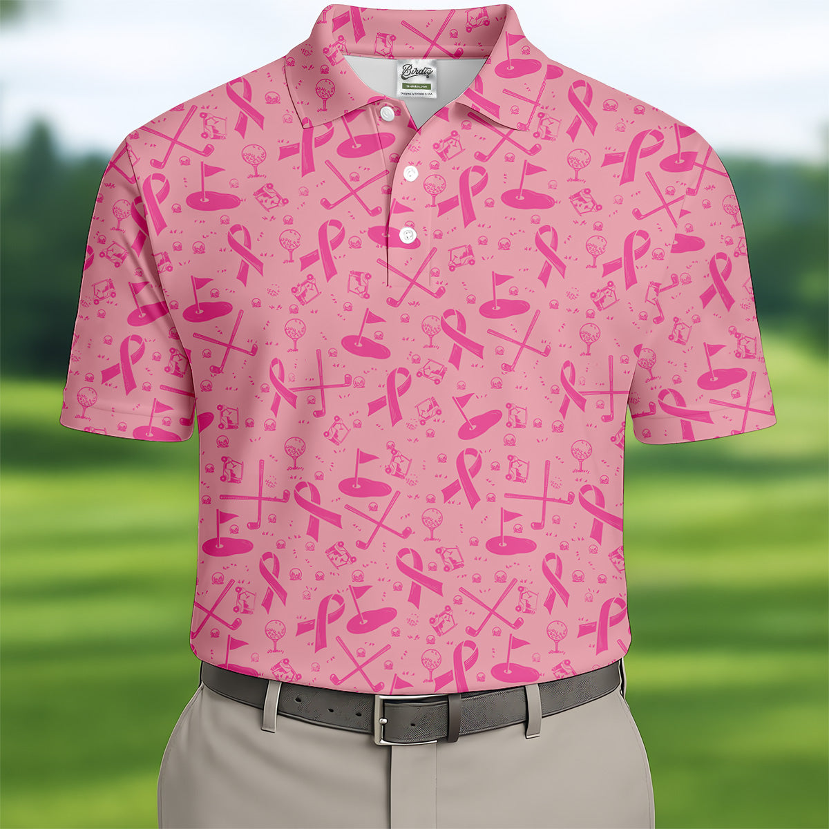 Awareness Ribbon Light Pink Golf Shirt, Cancer Awareness Shirt, Polo Shirts For Men