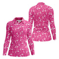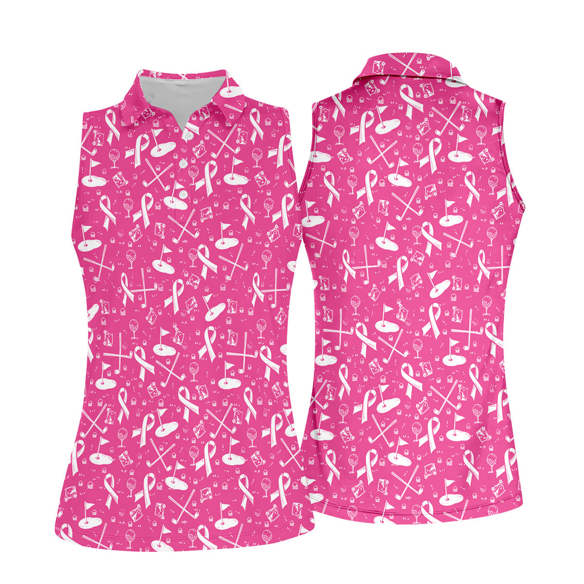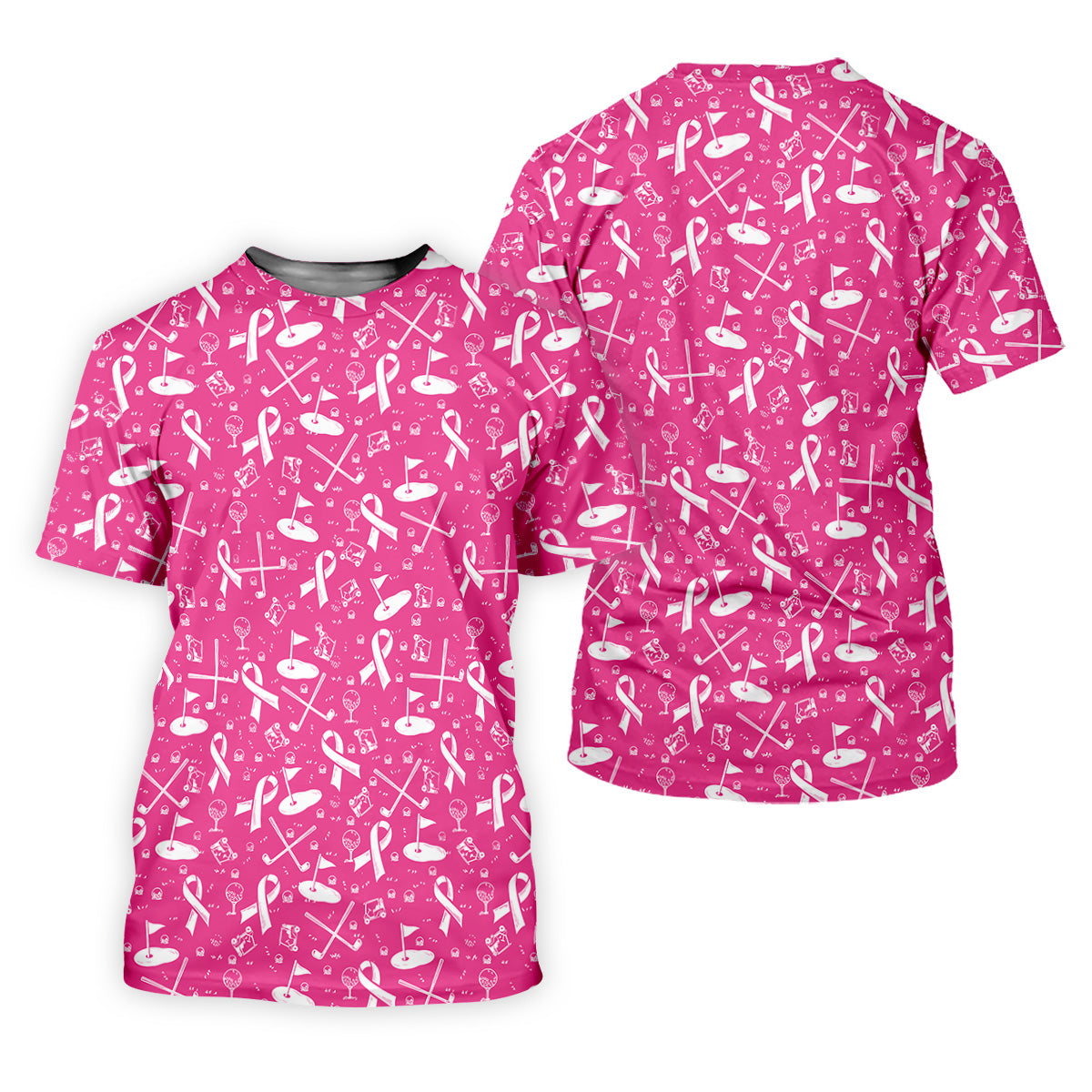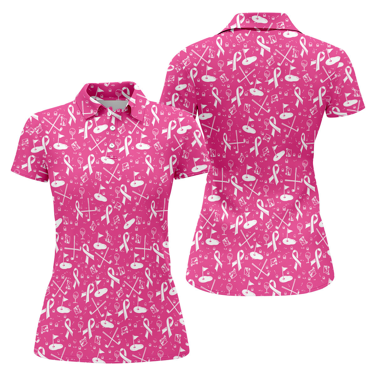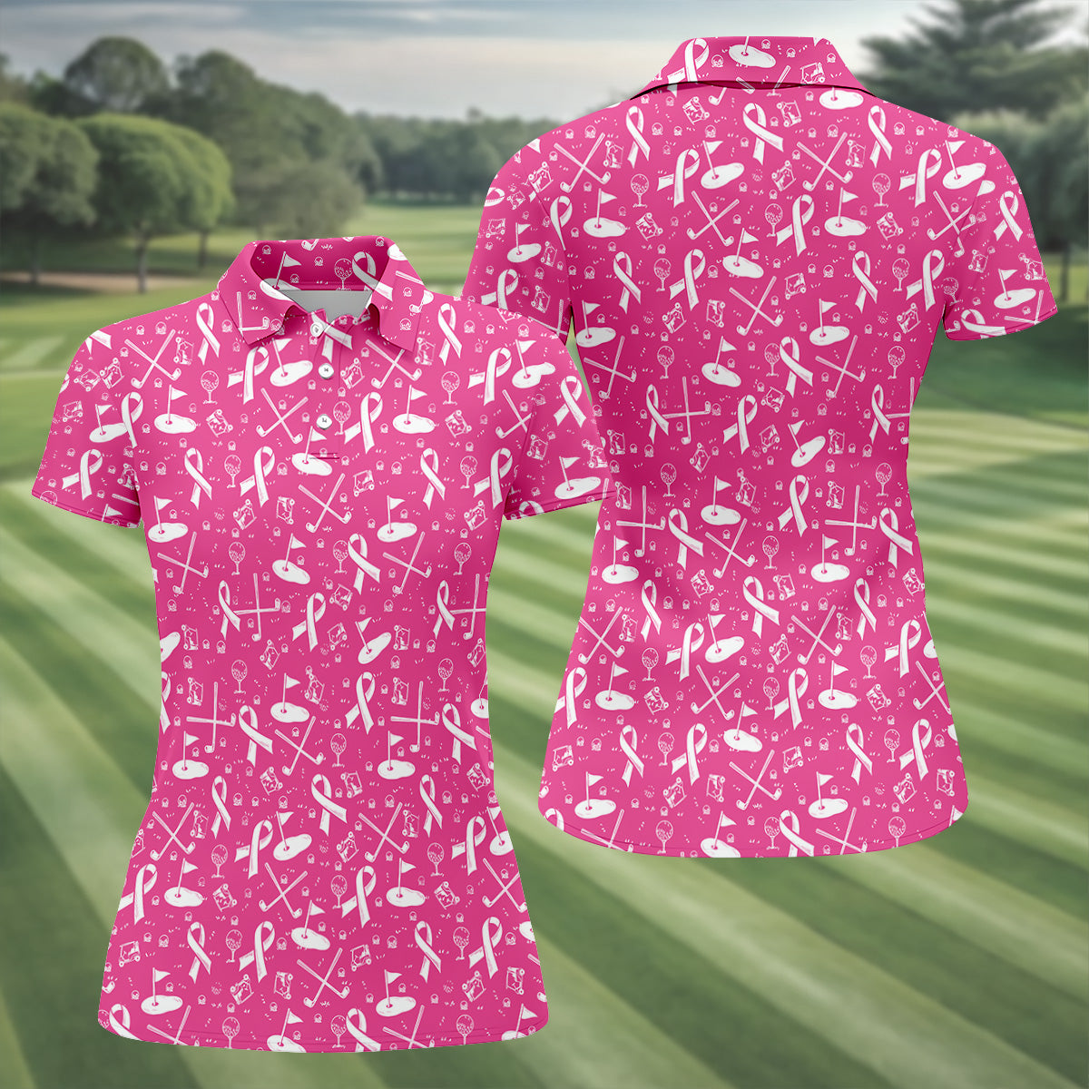 Awareness Ribbon Hot Pink Golf Shirt, Cancer Awareness Shirt, Ladies Golf Shirts, Golfing Apparel