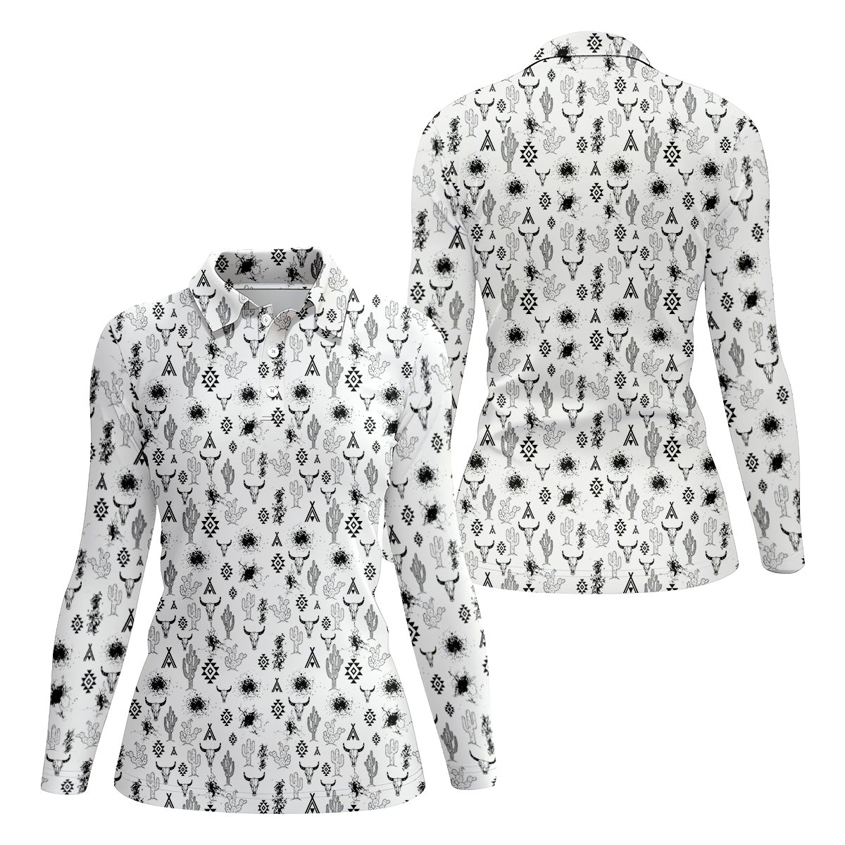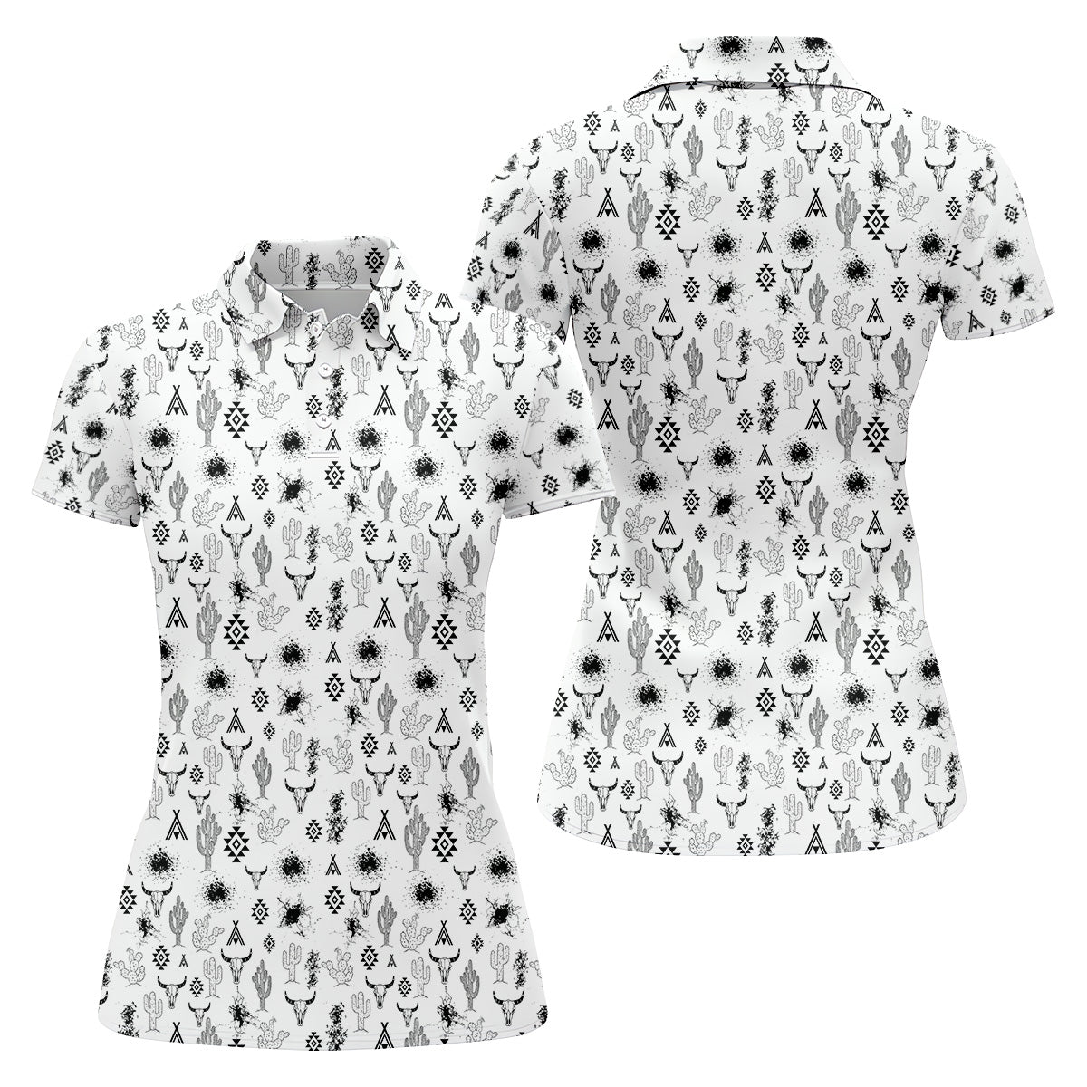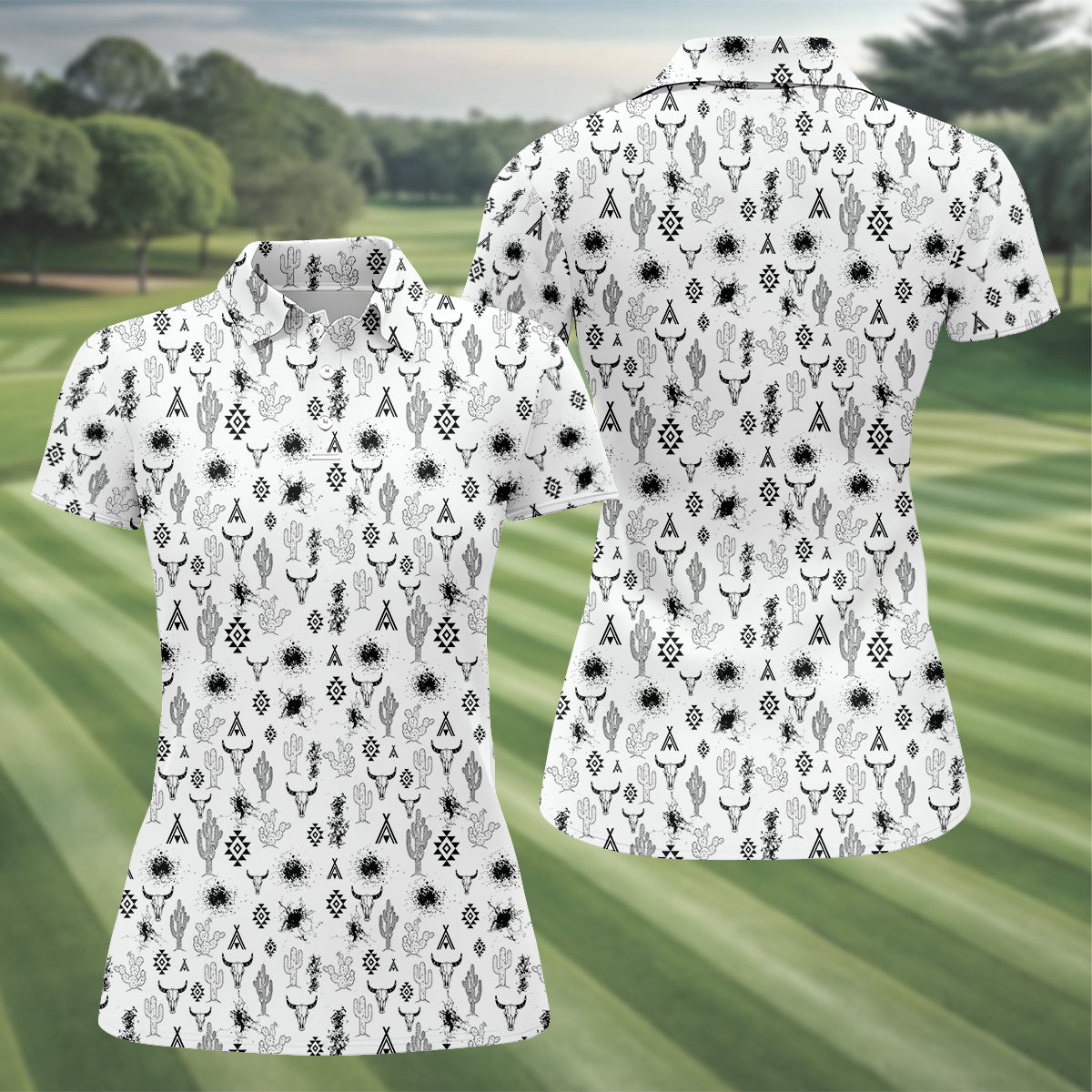 Aztec Bull Skull Western Golf Shirts Women, Women Golf Top, Ladies Golf Polos, Golfing Apparel