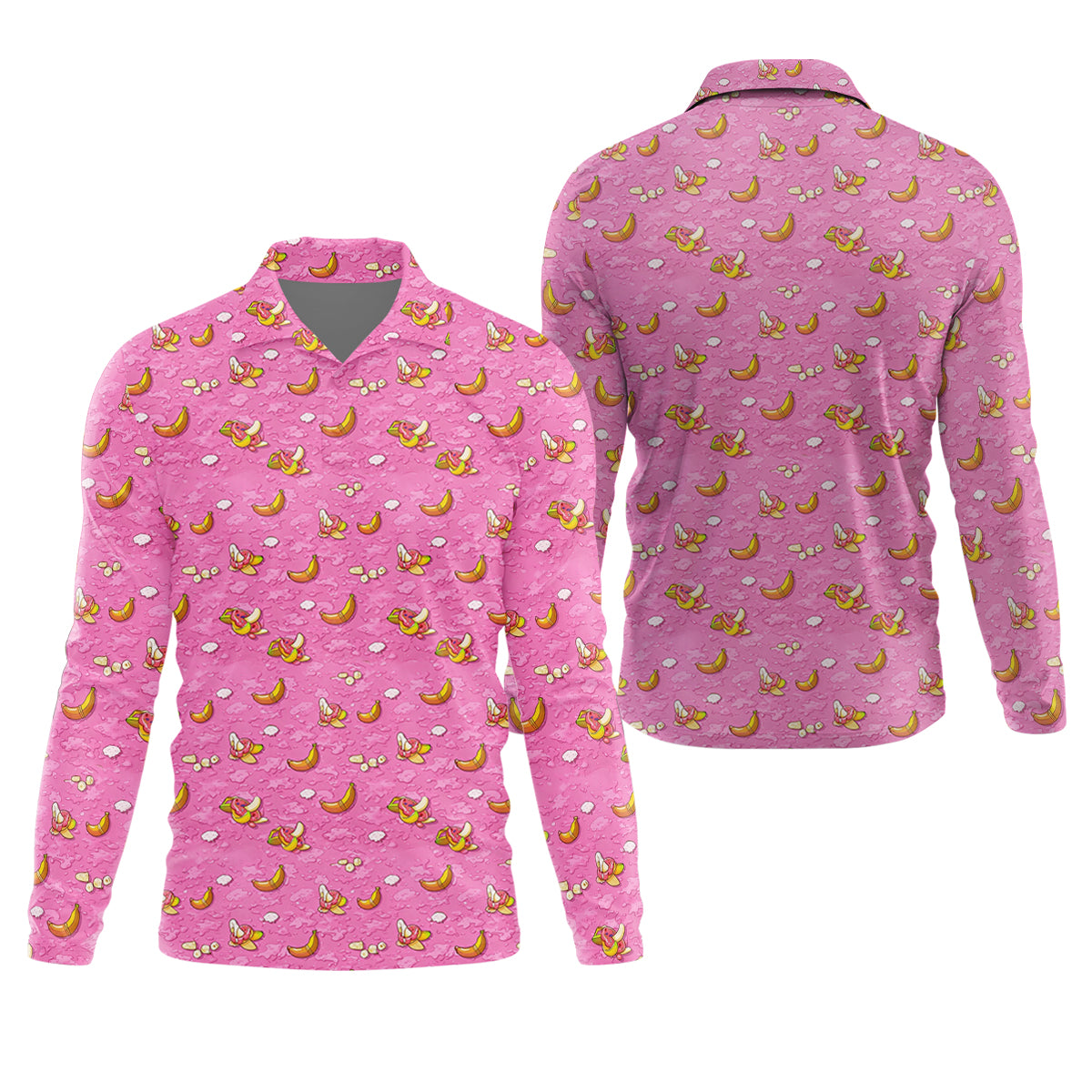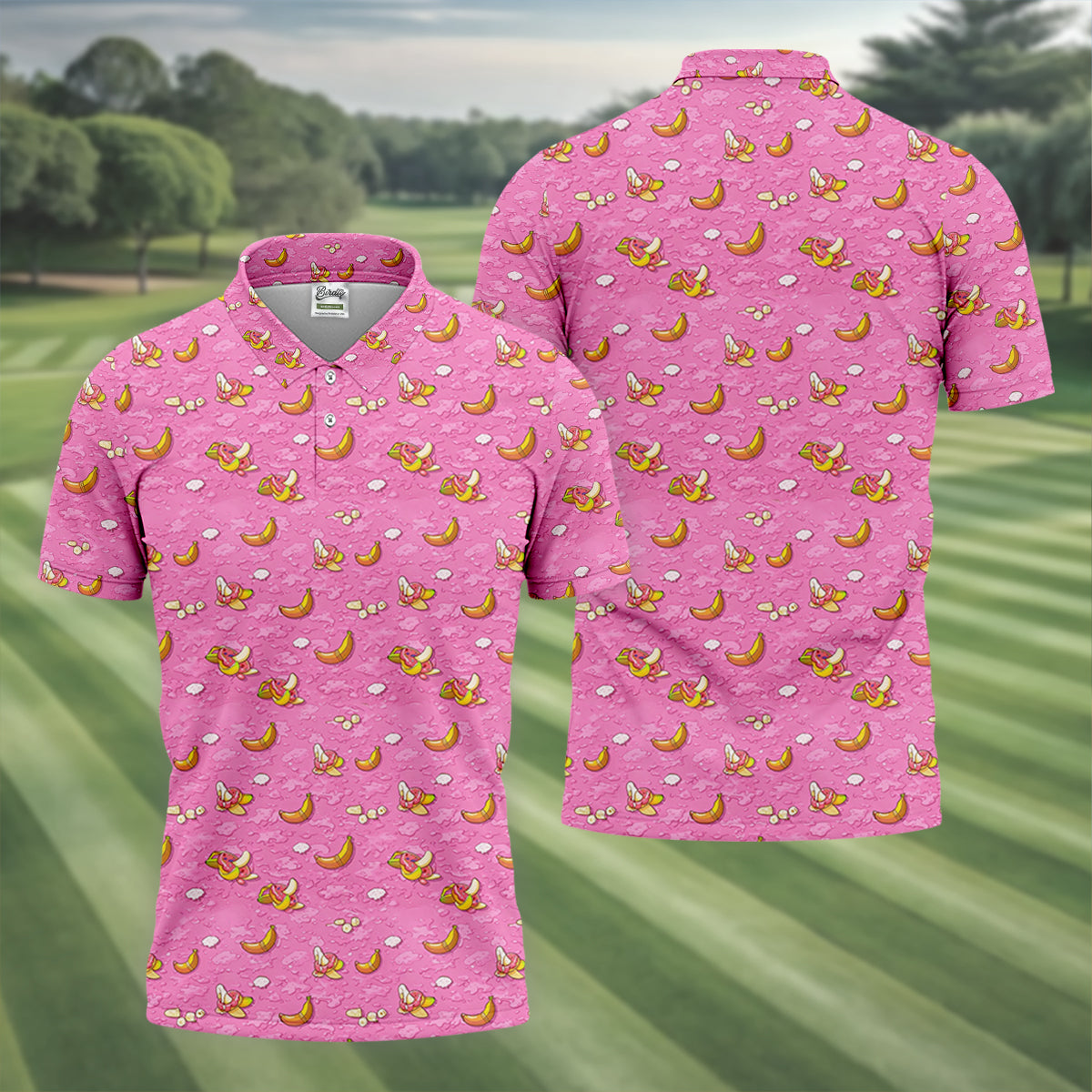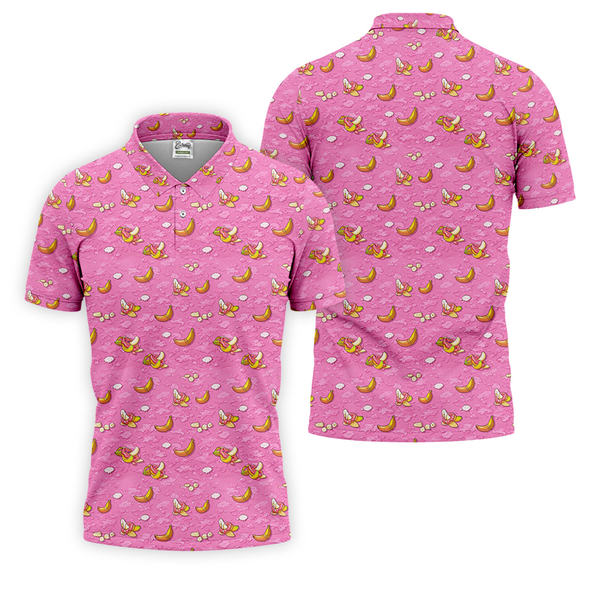 Banana And Donut Dirty Humor Pink Golf Shirt, Fun Golf Shirts For Men, Valentines Golf Gift, Golf Shirts For Men