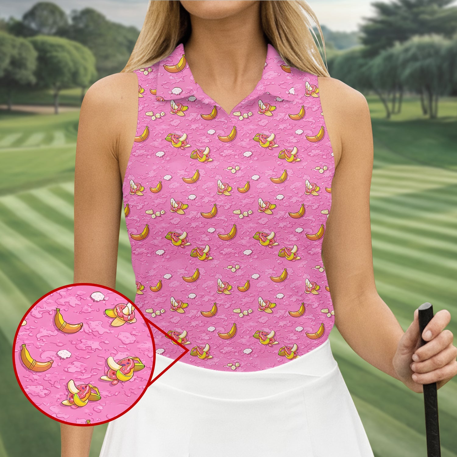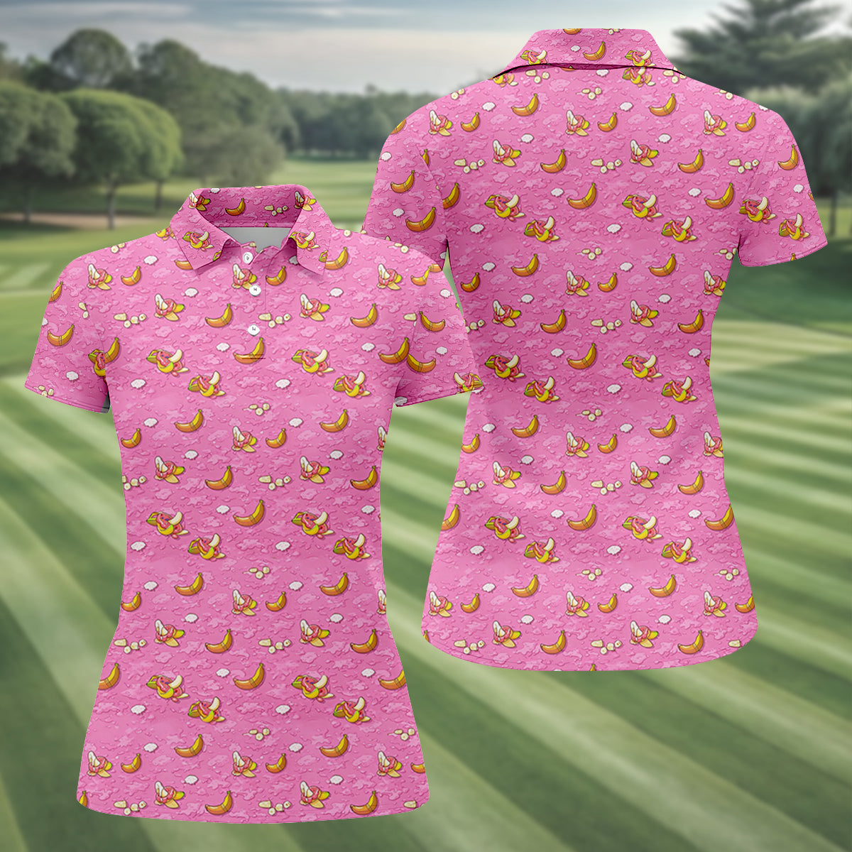 Banana And Donut Dirty Humor Pink Golf Shirt, Fun Women's Golf Shirts, Valentines Golf Gift, Ladies Golf Polos