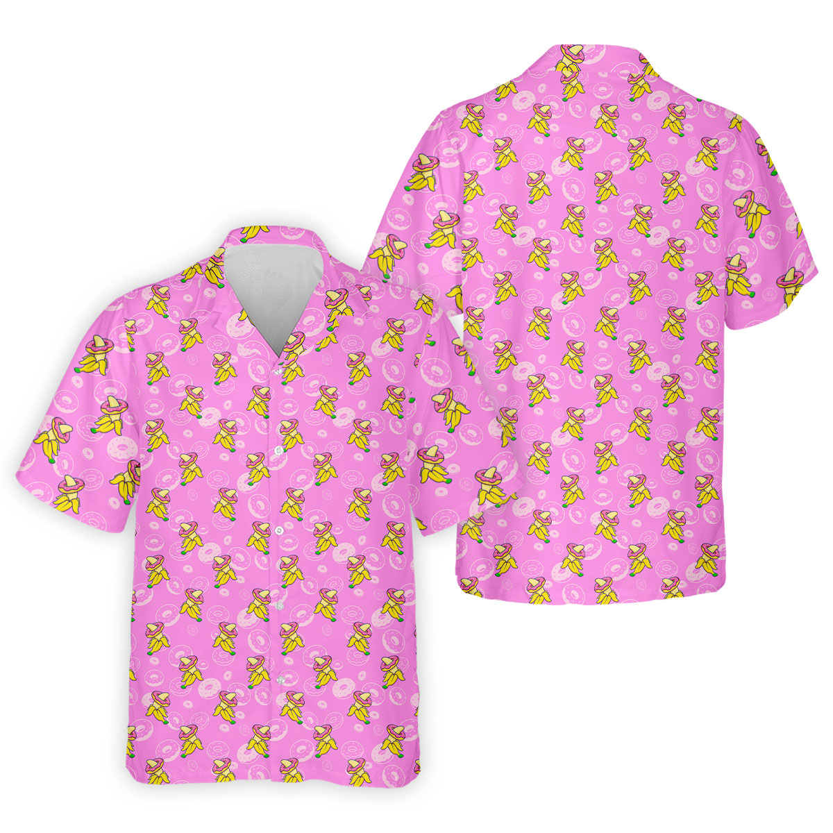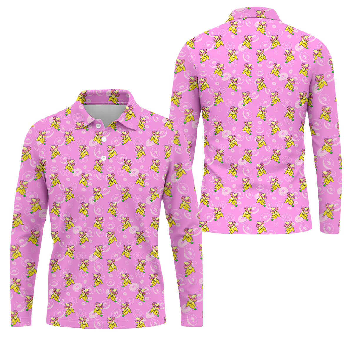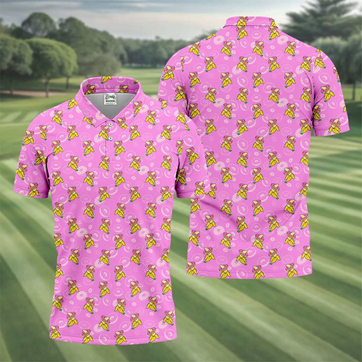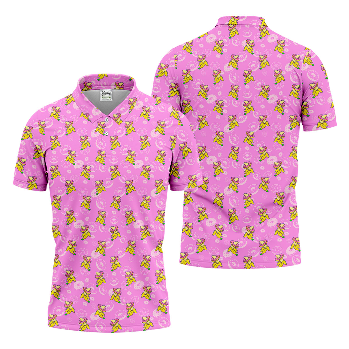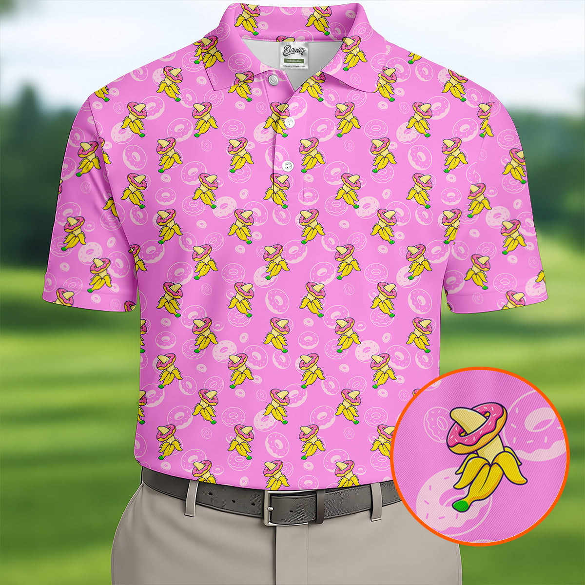 Banana And Donut Dirty Naughty Fun Golf Shirts For Men, Valentines Golf Gift, Hot Pink Color Polo Shirts For Men