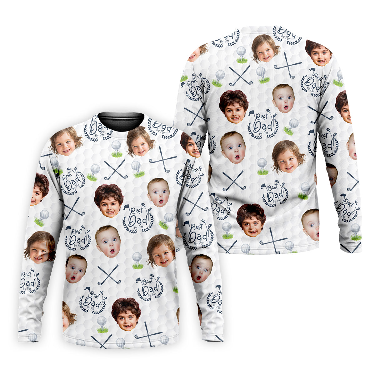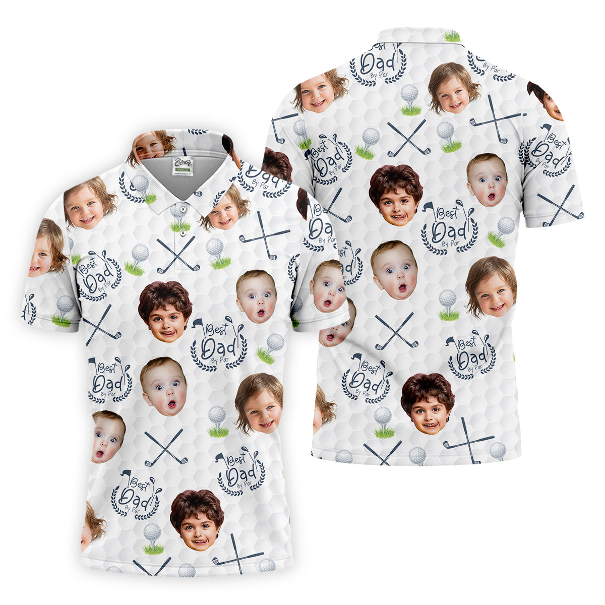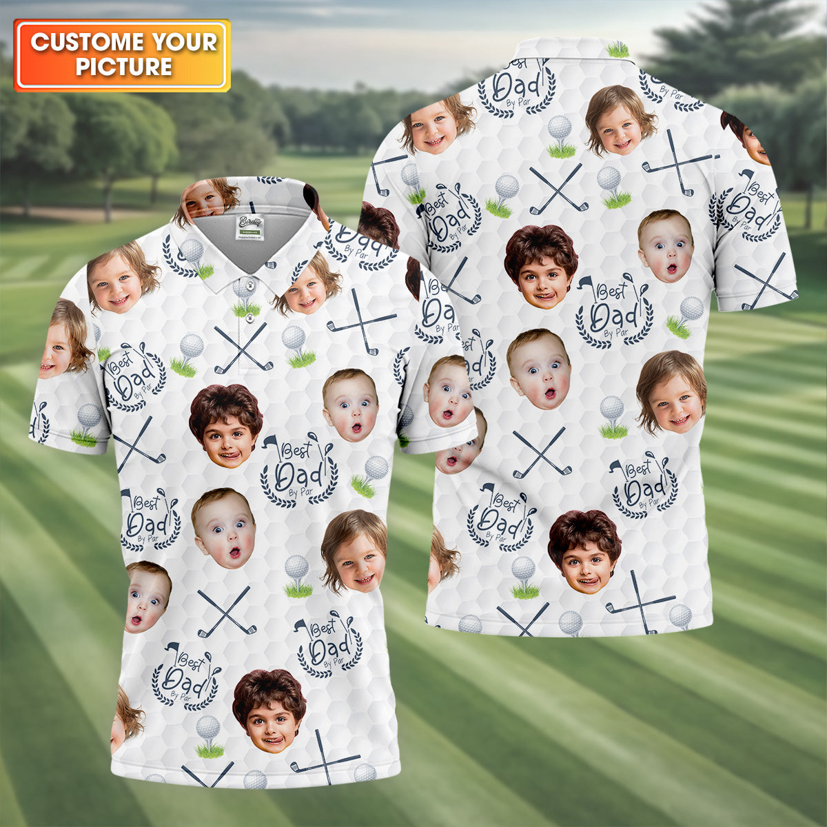 Best Dad By Par Custom Face Kids Photo Funny Polo Golf Shirt, Christmas Golf Gift