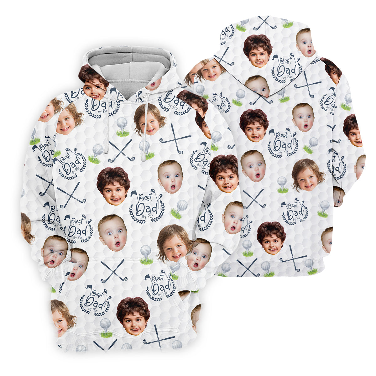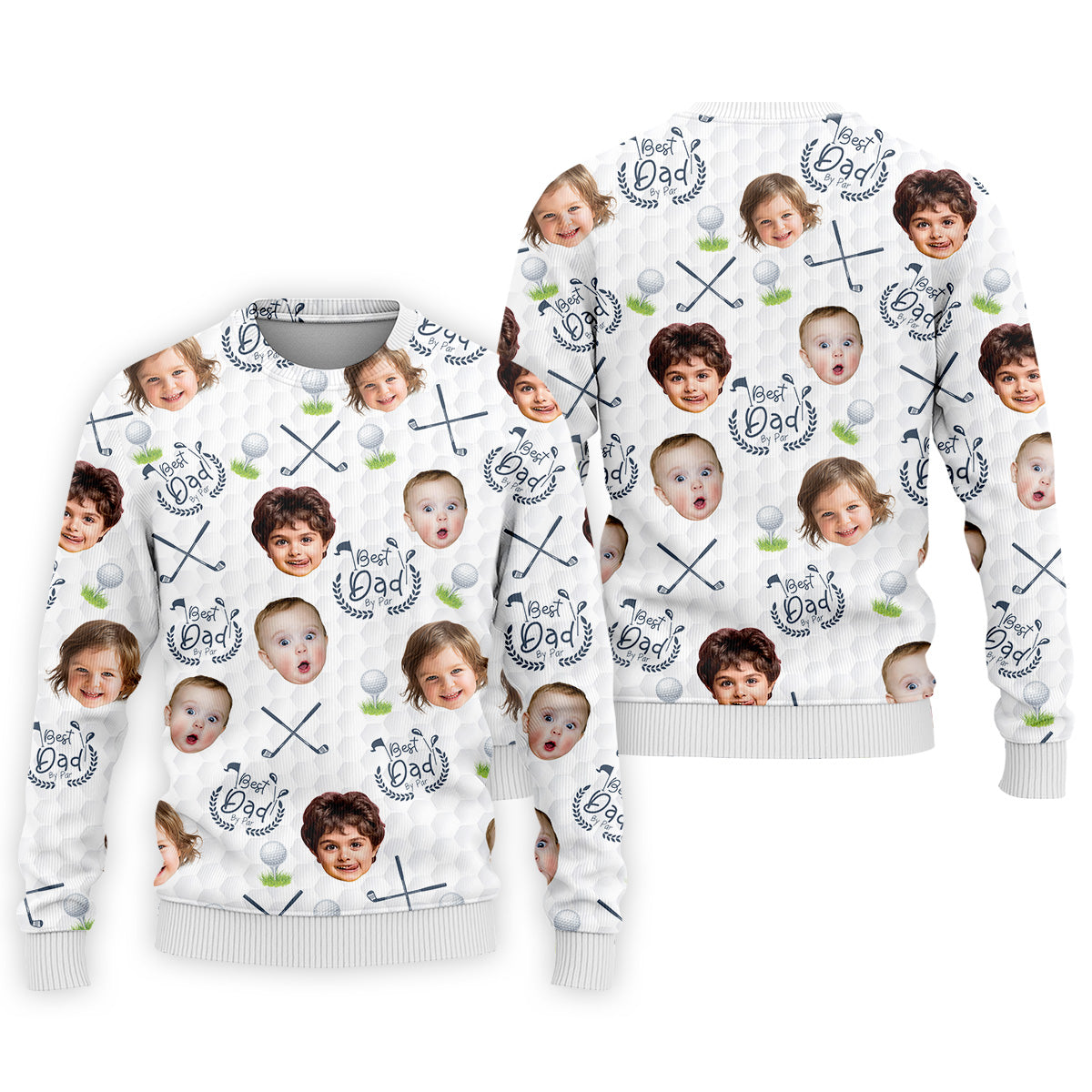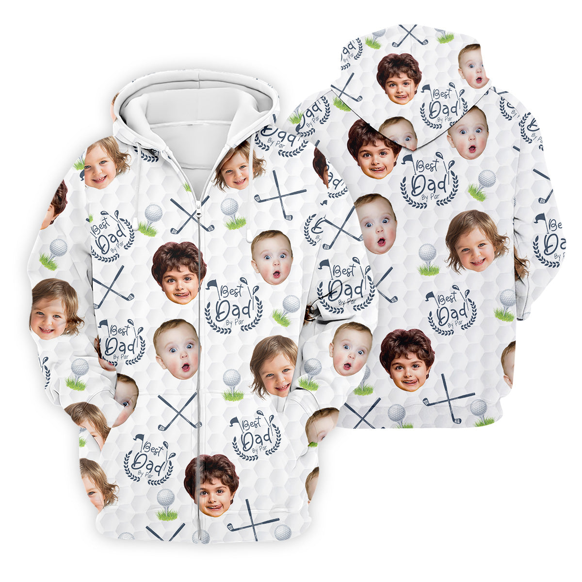 Best Dad By Par Custom Face Kids Photo Funny Polo Golf Shirt, Christmas Golf Gift