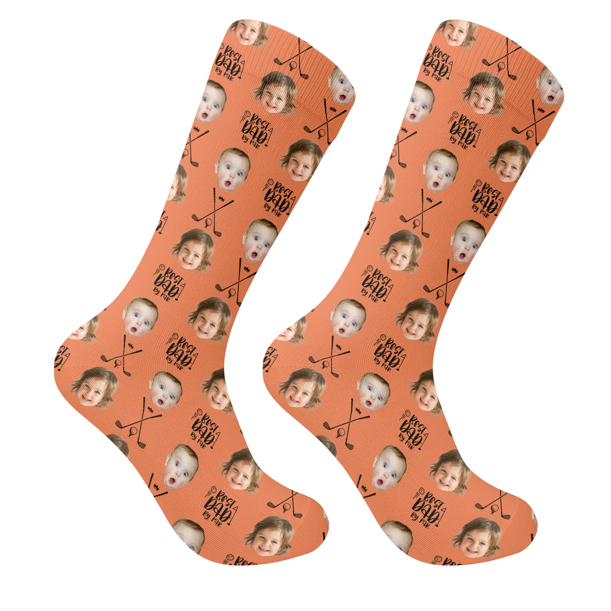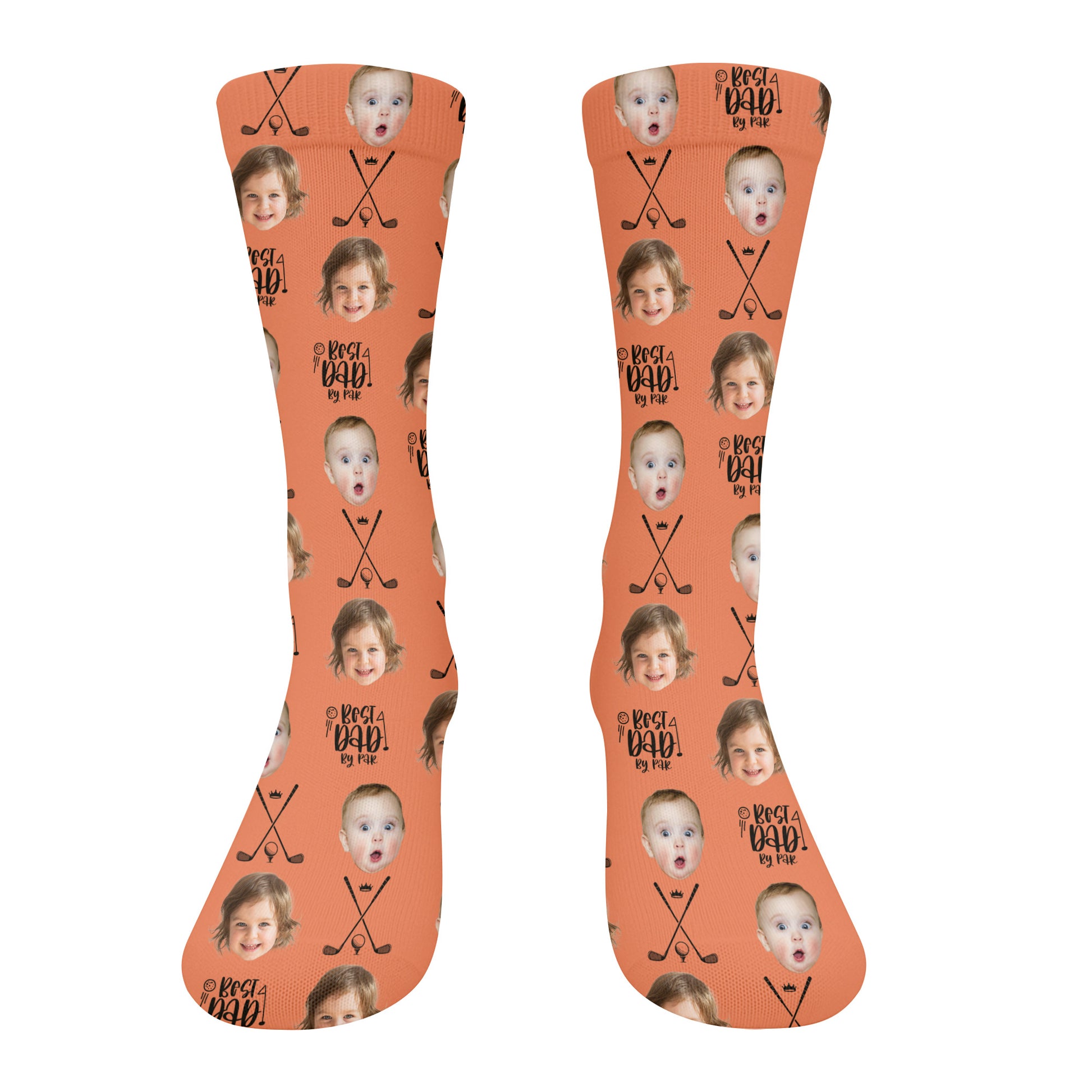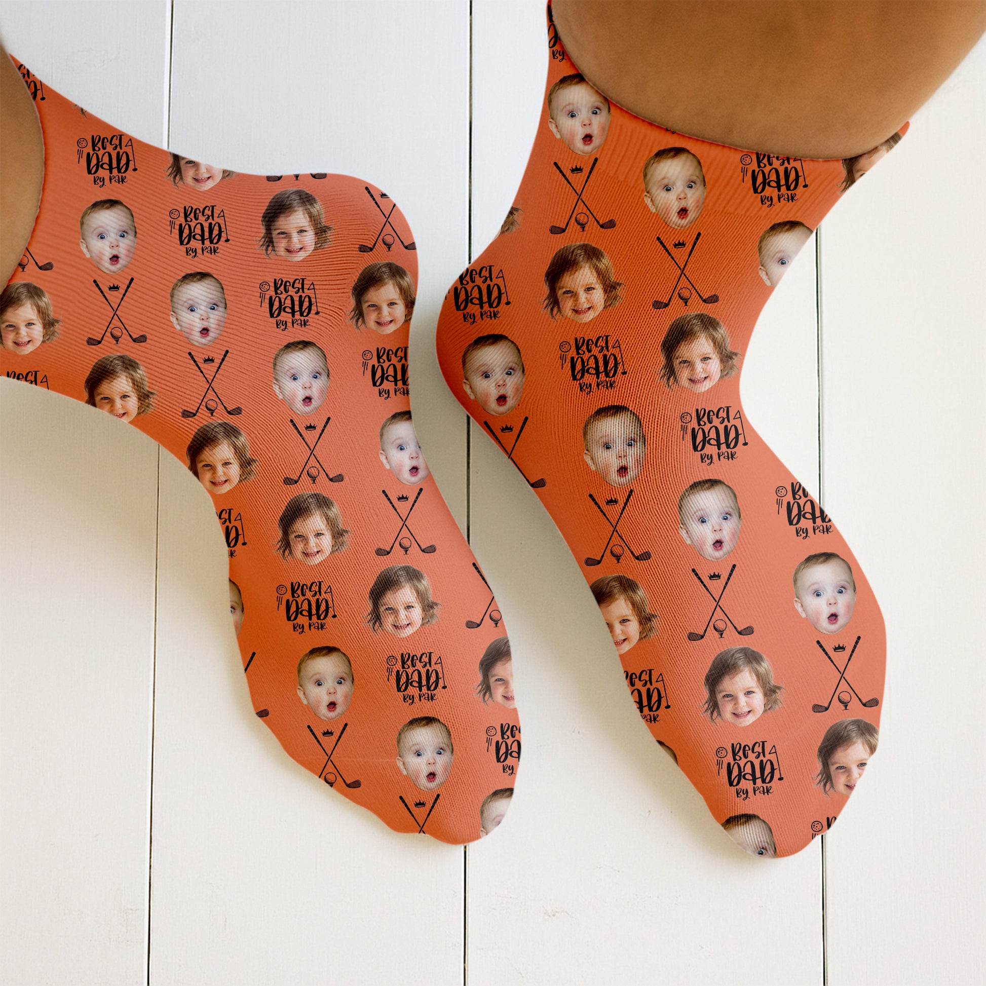 Best Dad By Par Custom Face Kids Photo, Orange Golf Socks For Dad, Fun Socks For Men, Dad Golf Gift