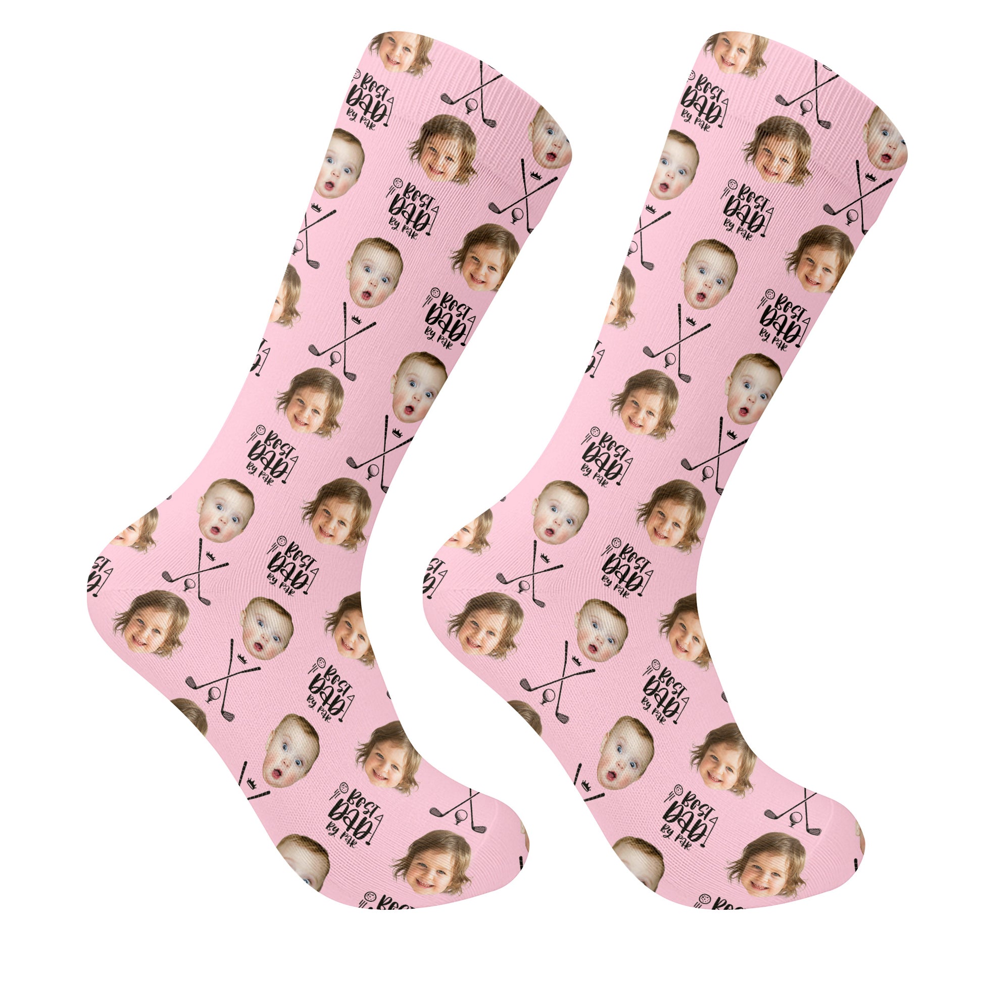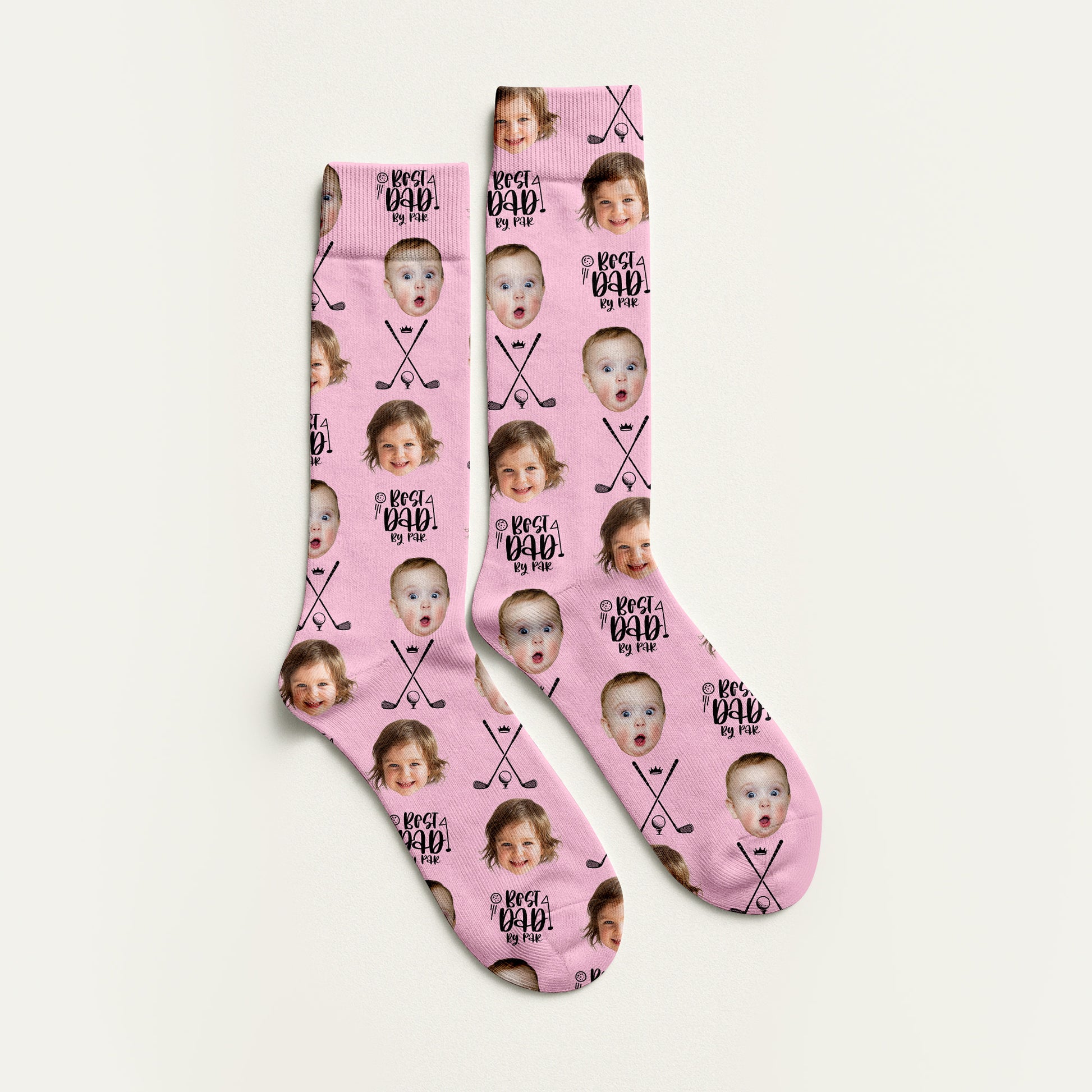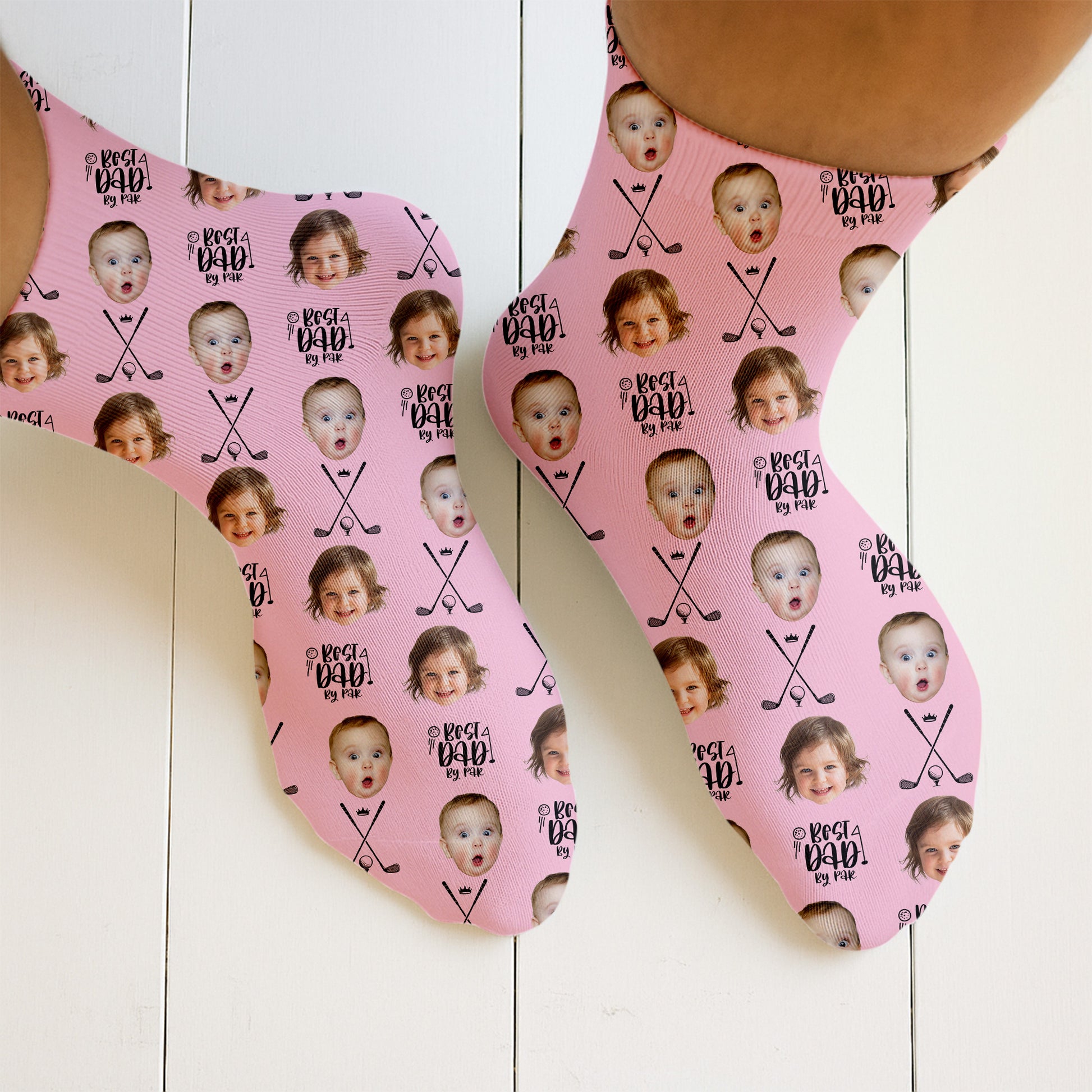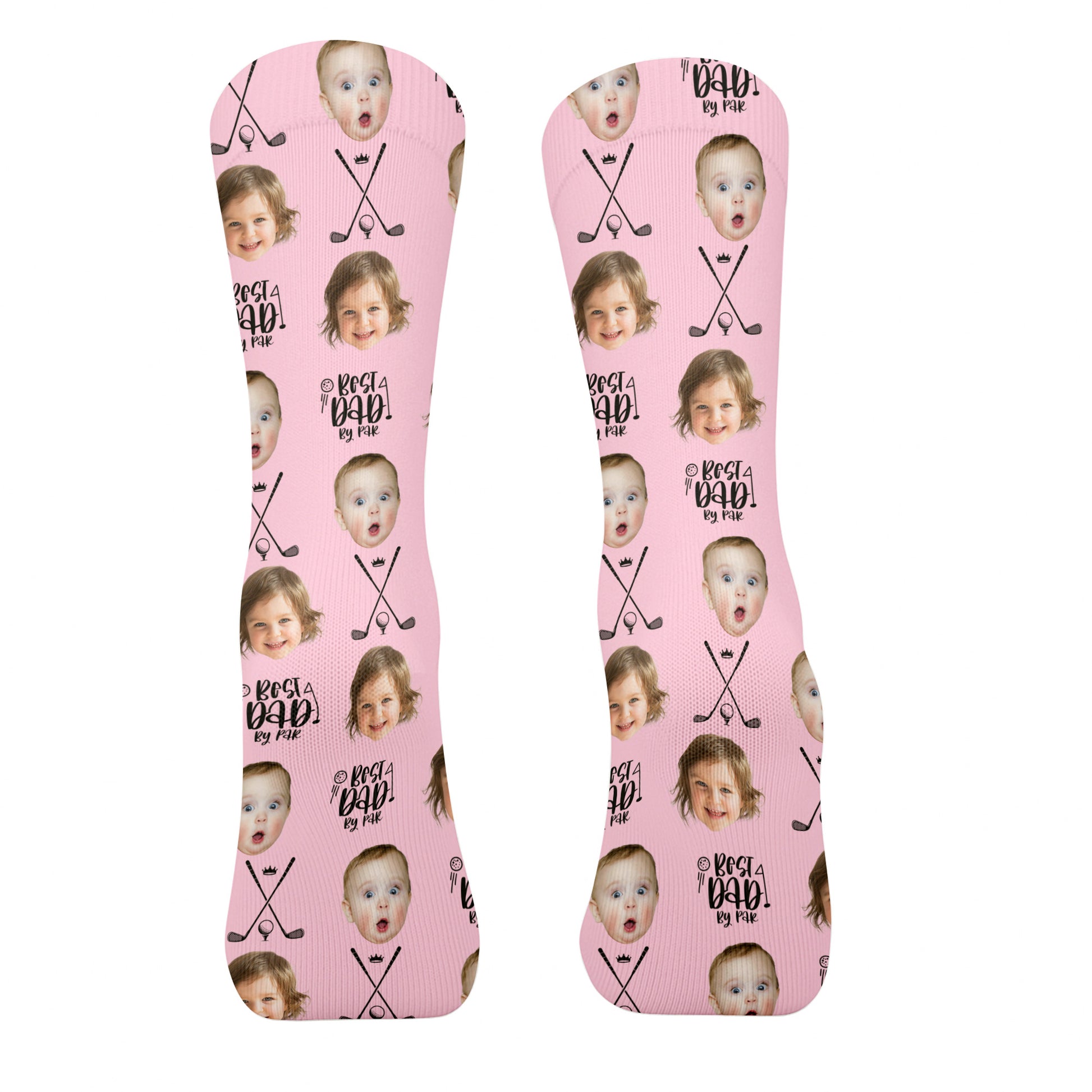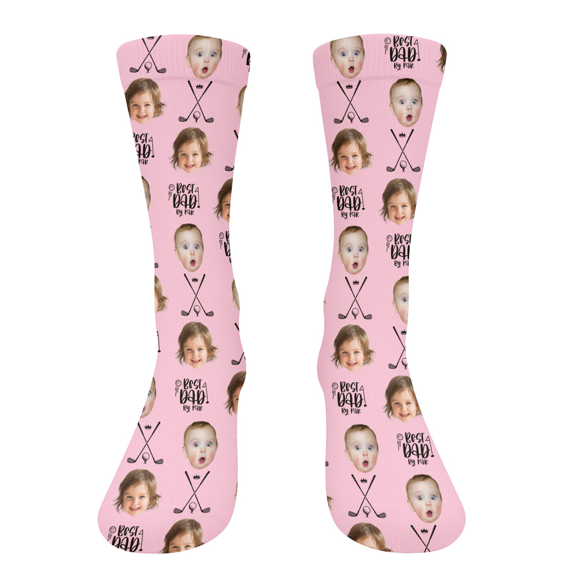 Best Dad By Par Custom Face Kids Photo, Pink Golf Socks For Dad, Fun Socks For Men, Christmas Golf Gift