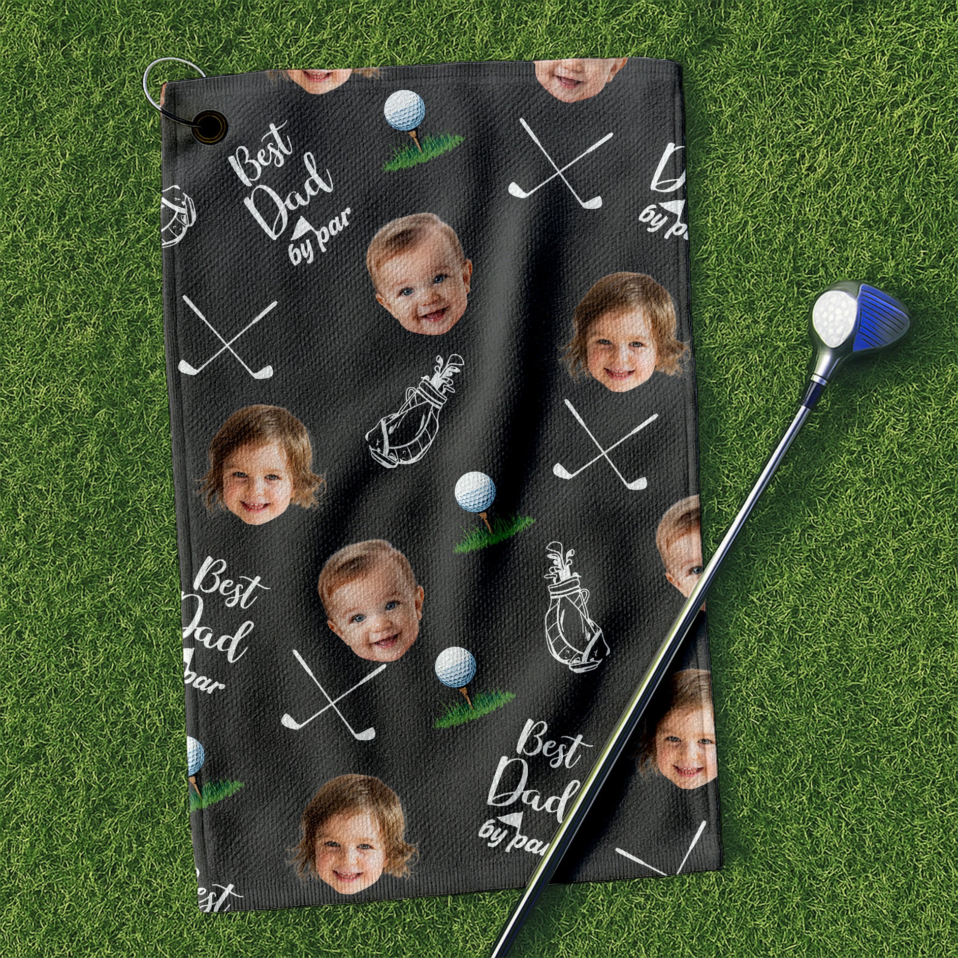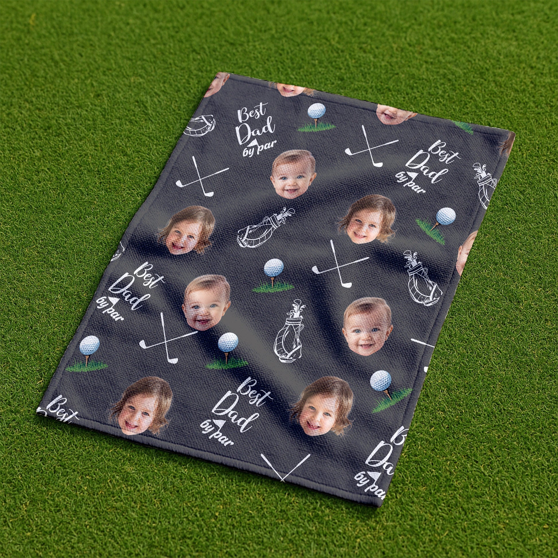 Best Dad By Par Custom Face Microfiber Waffle Small Funny Golf Towel, Christmas Golf Gift