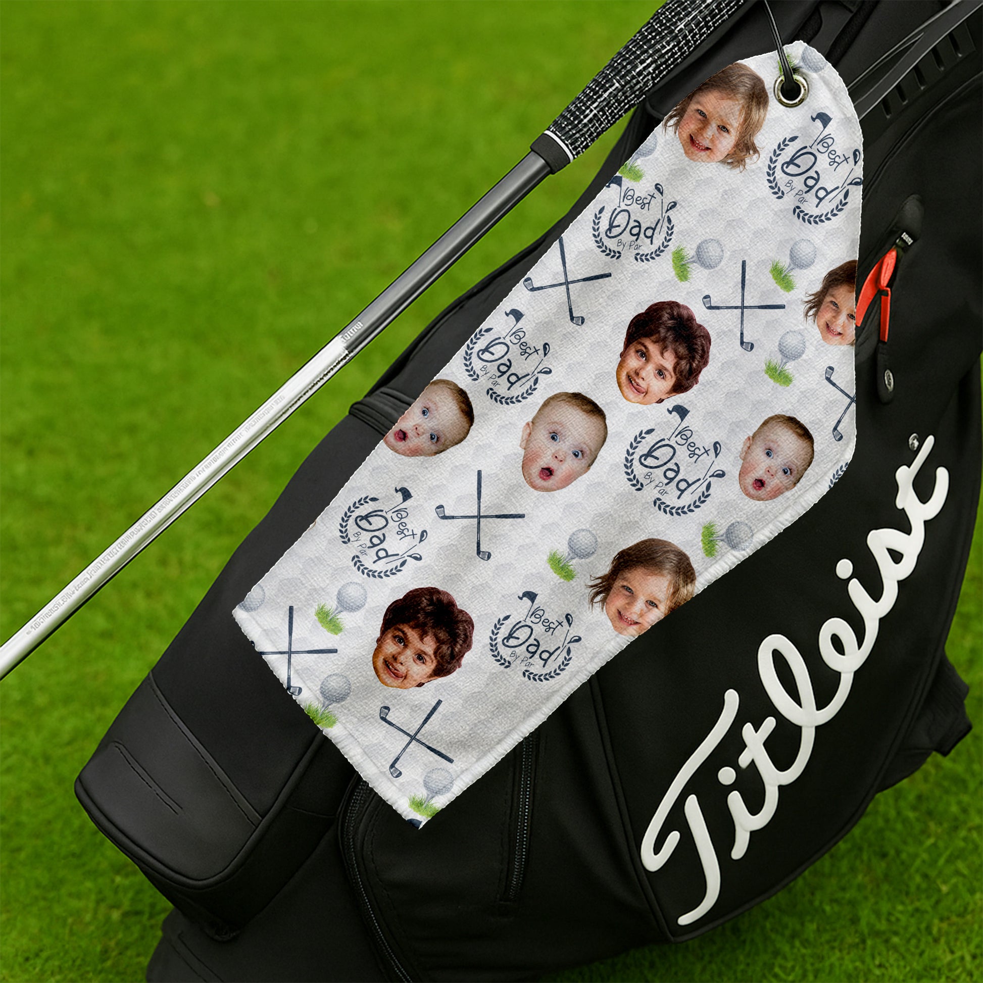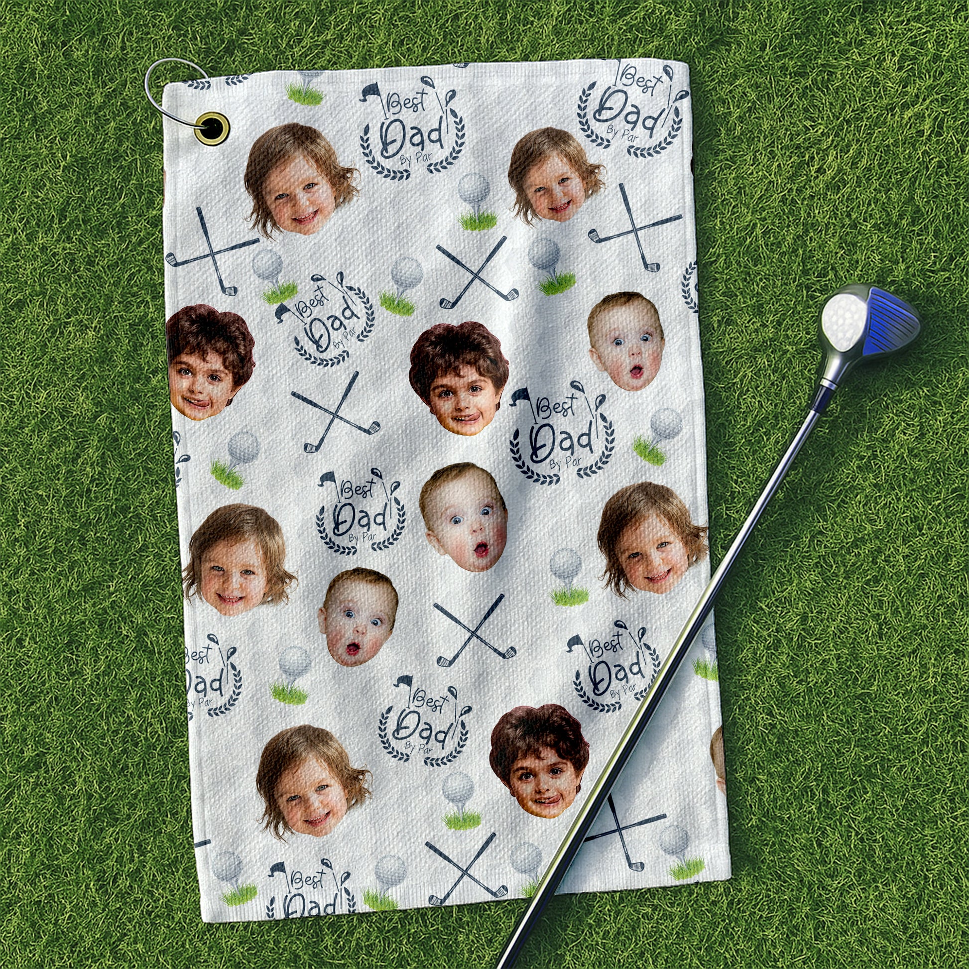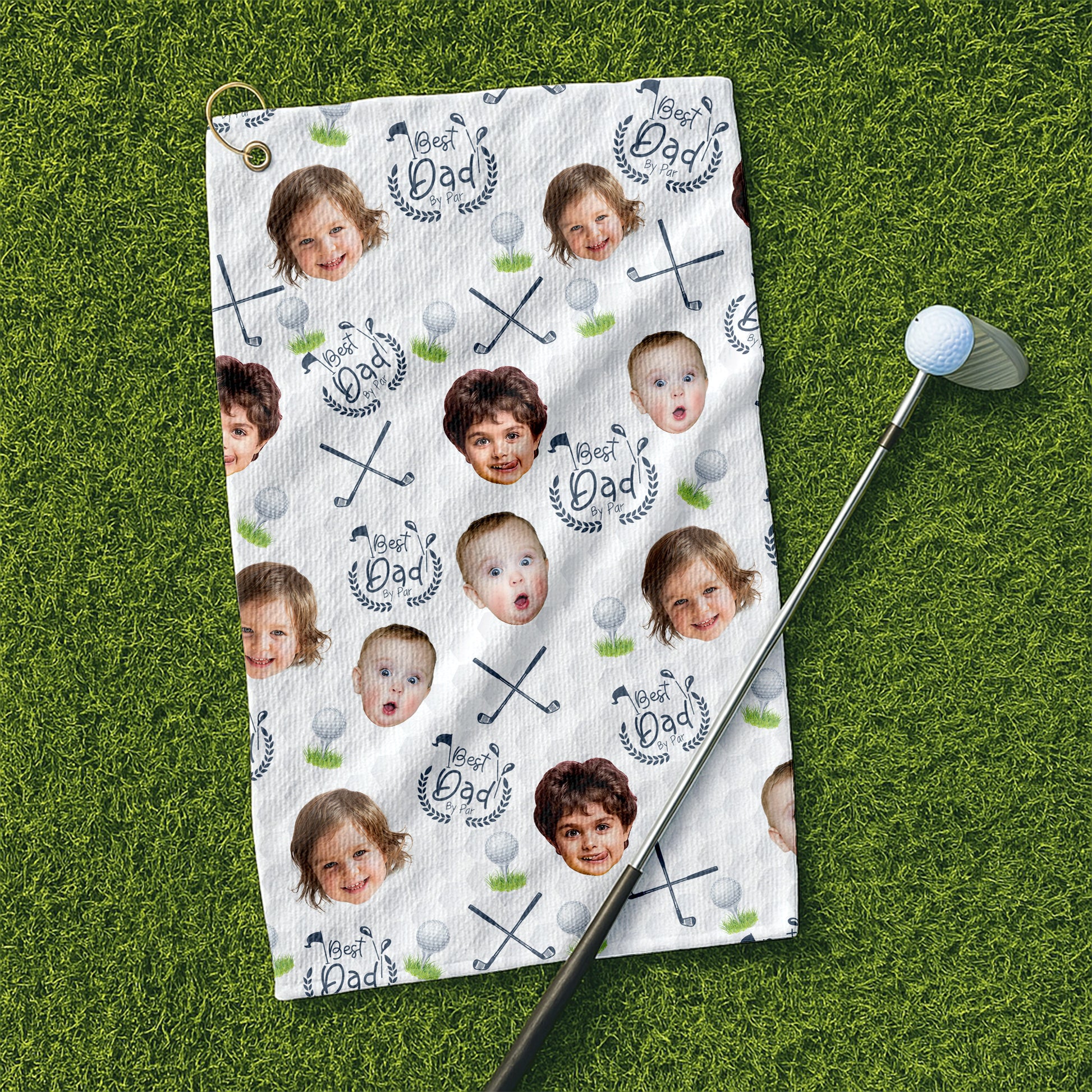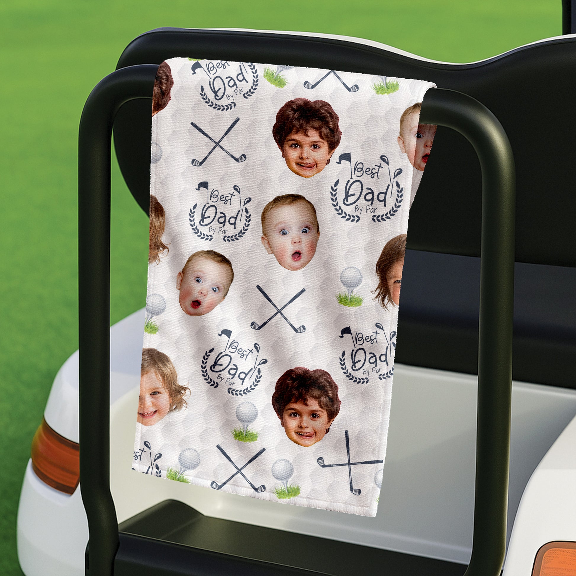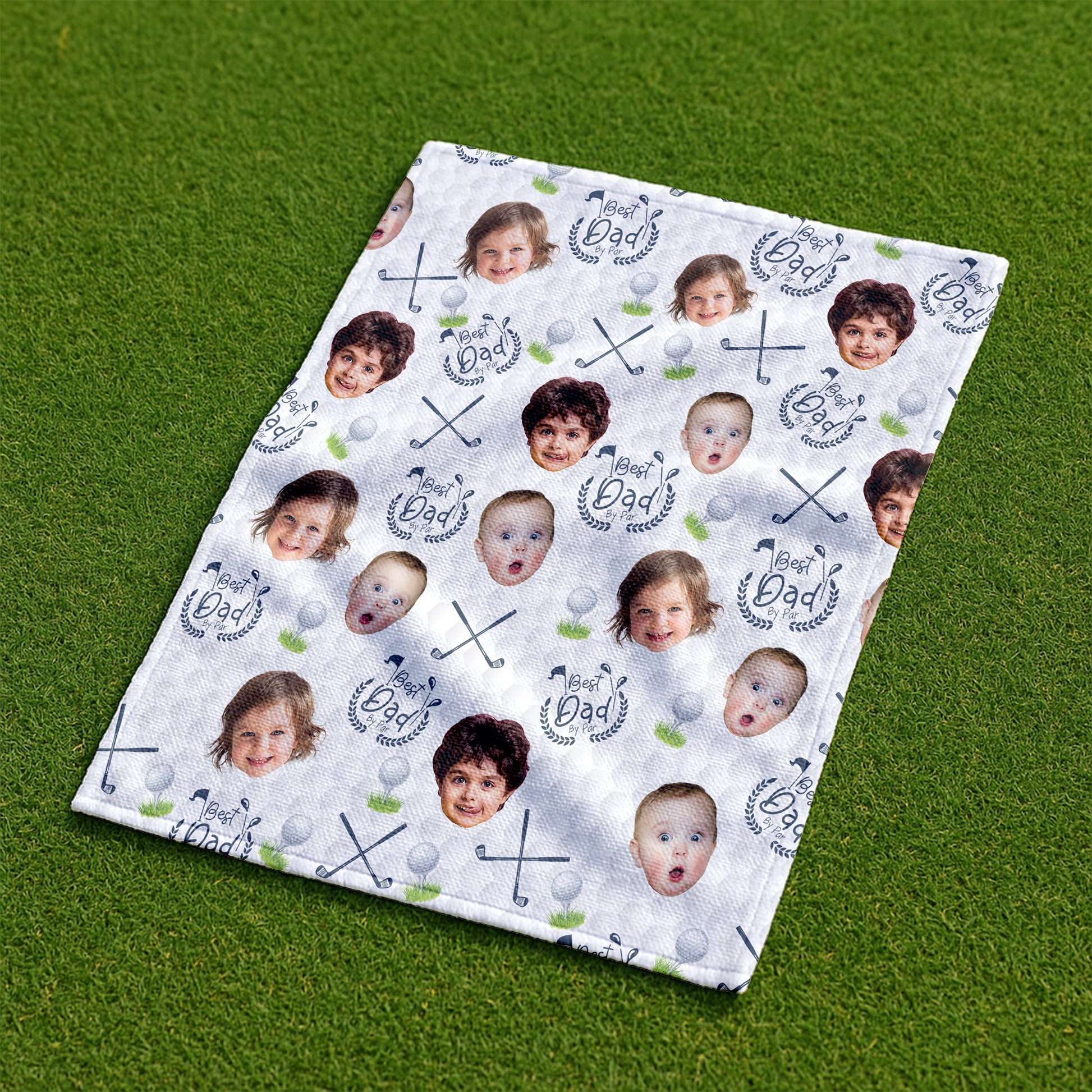 Best Dad By Par Custom Golf Towel With Kids Photo, Funny Golf Towel, Gifts For The Golfing Dad