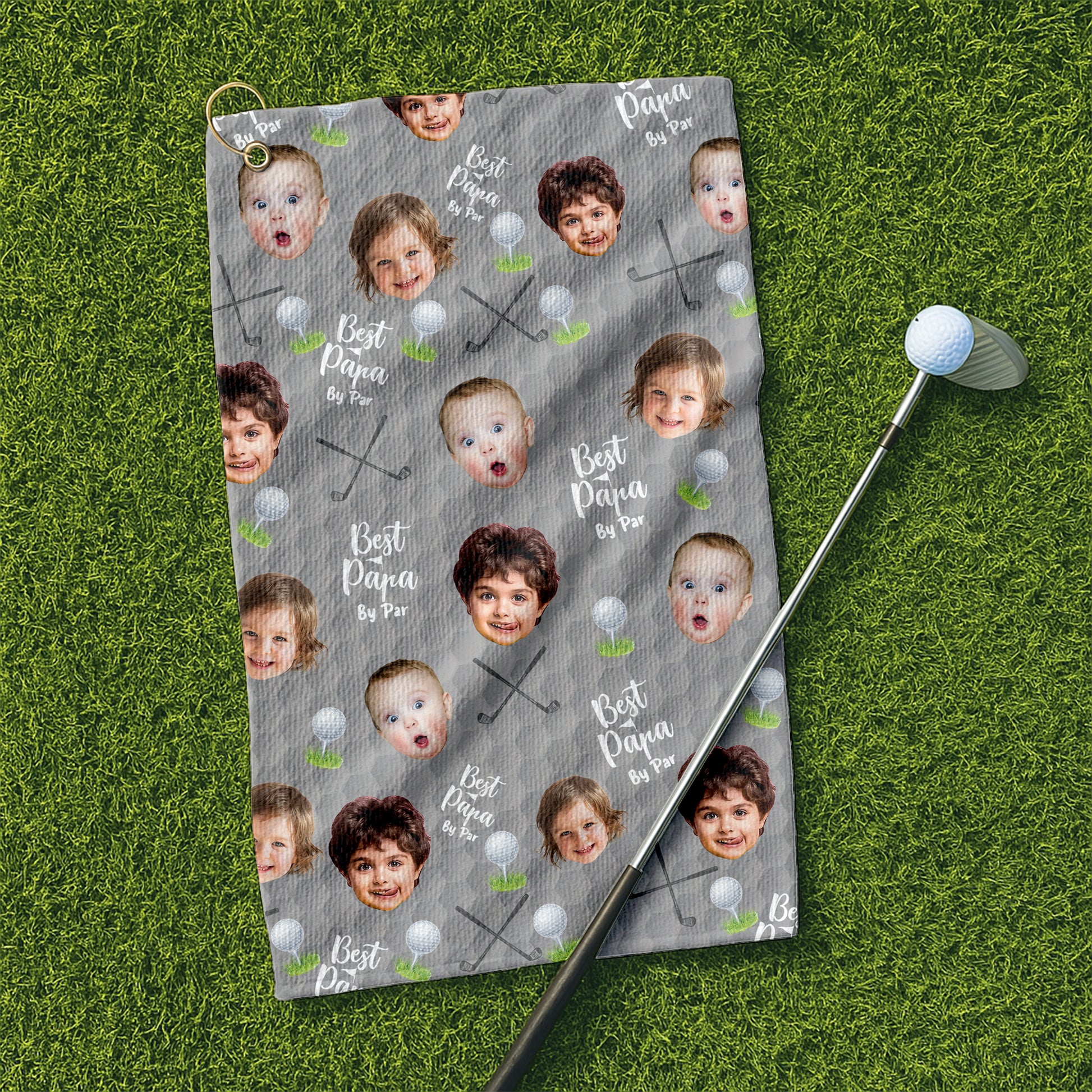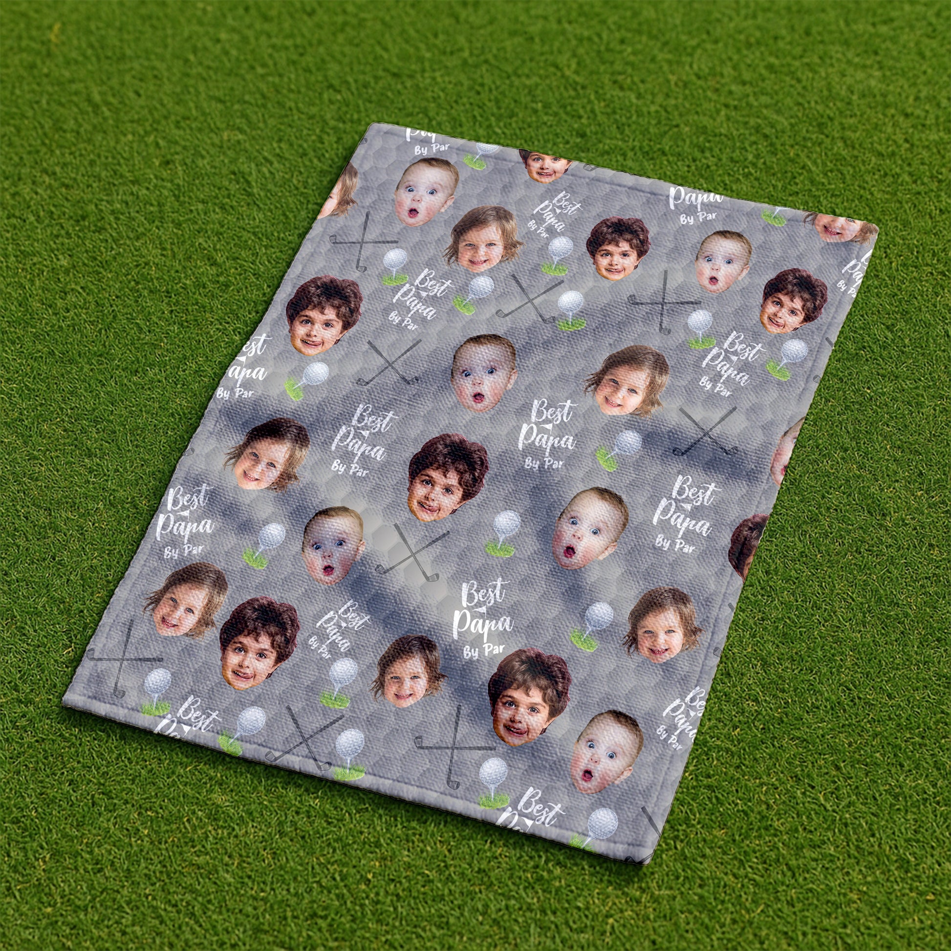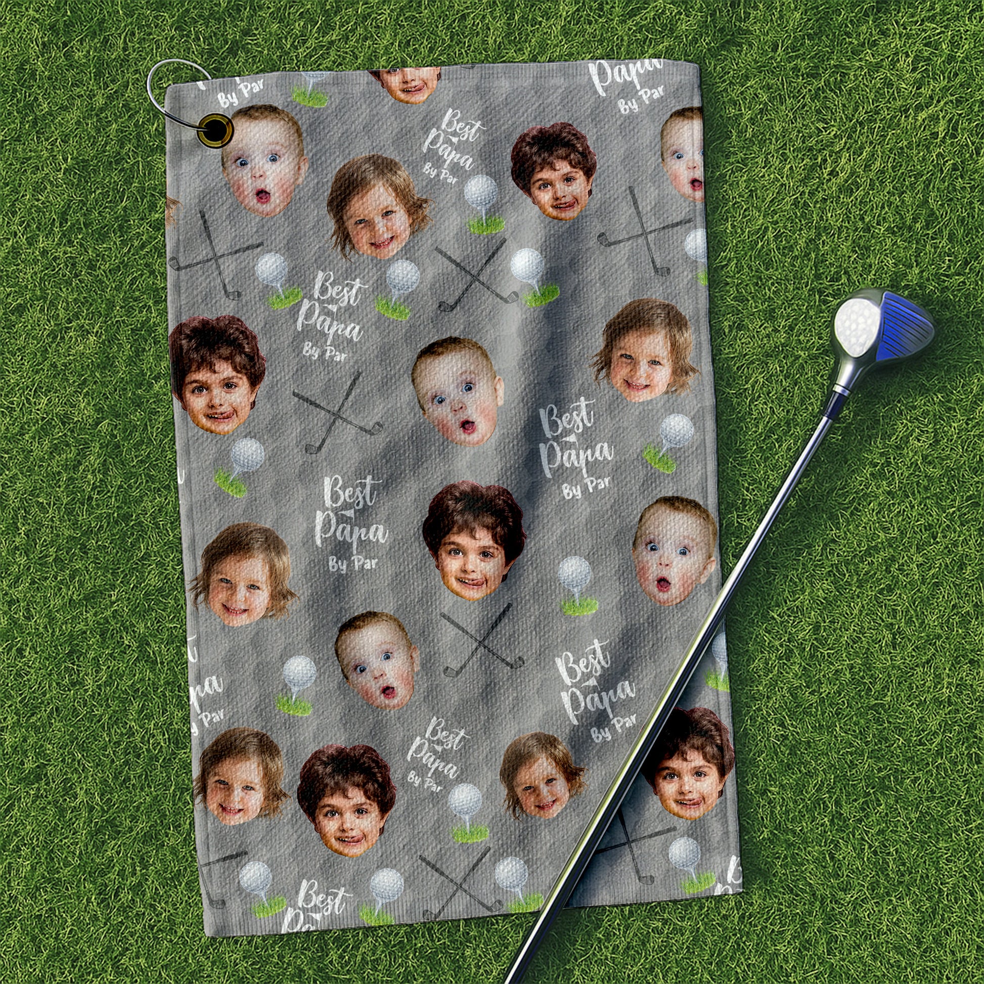 Best Dad By Par Grey Golf Towel, Custom Golf Towel With Kids Photo, Cool Golf Towels, Christmas Golf Gift