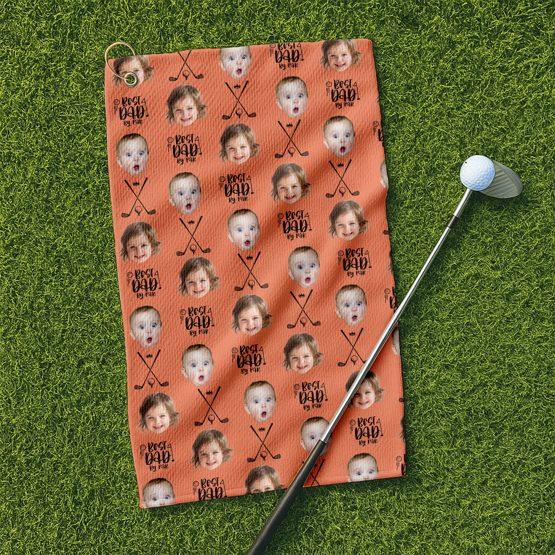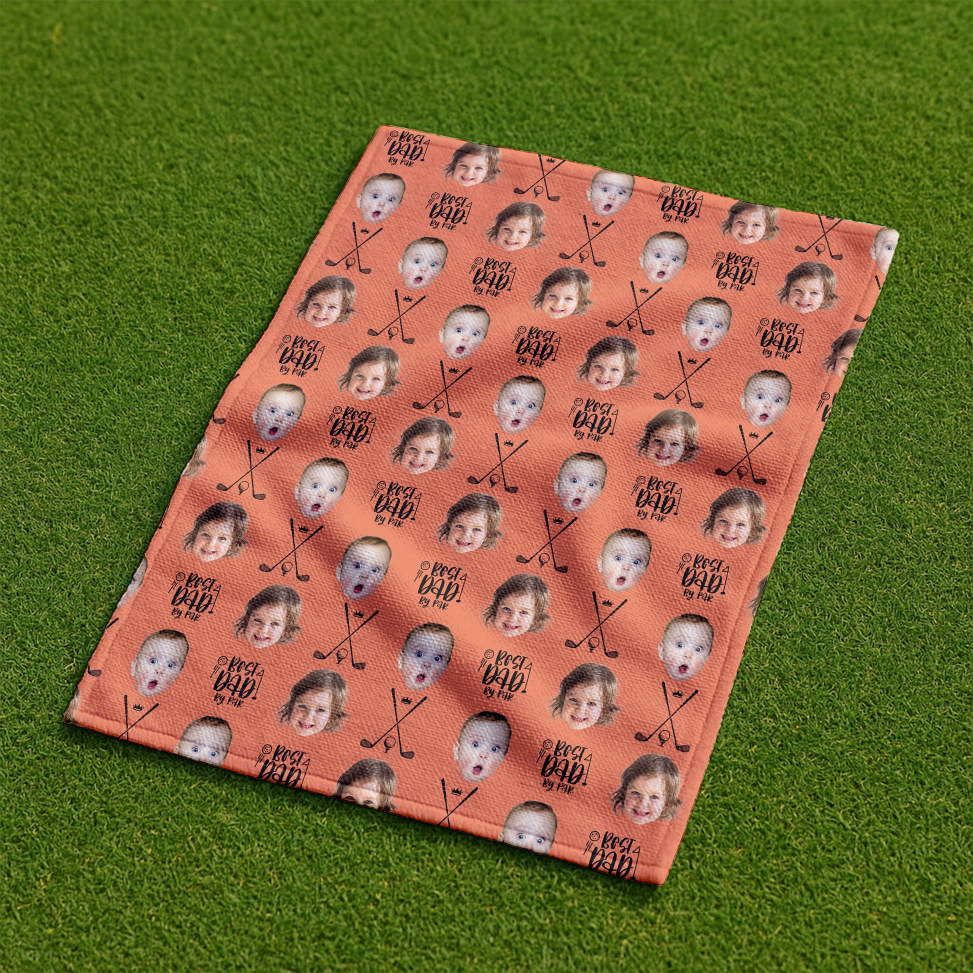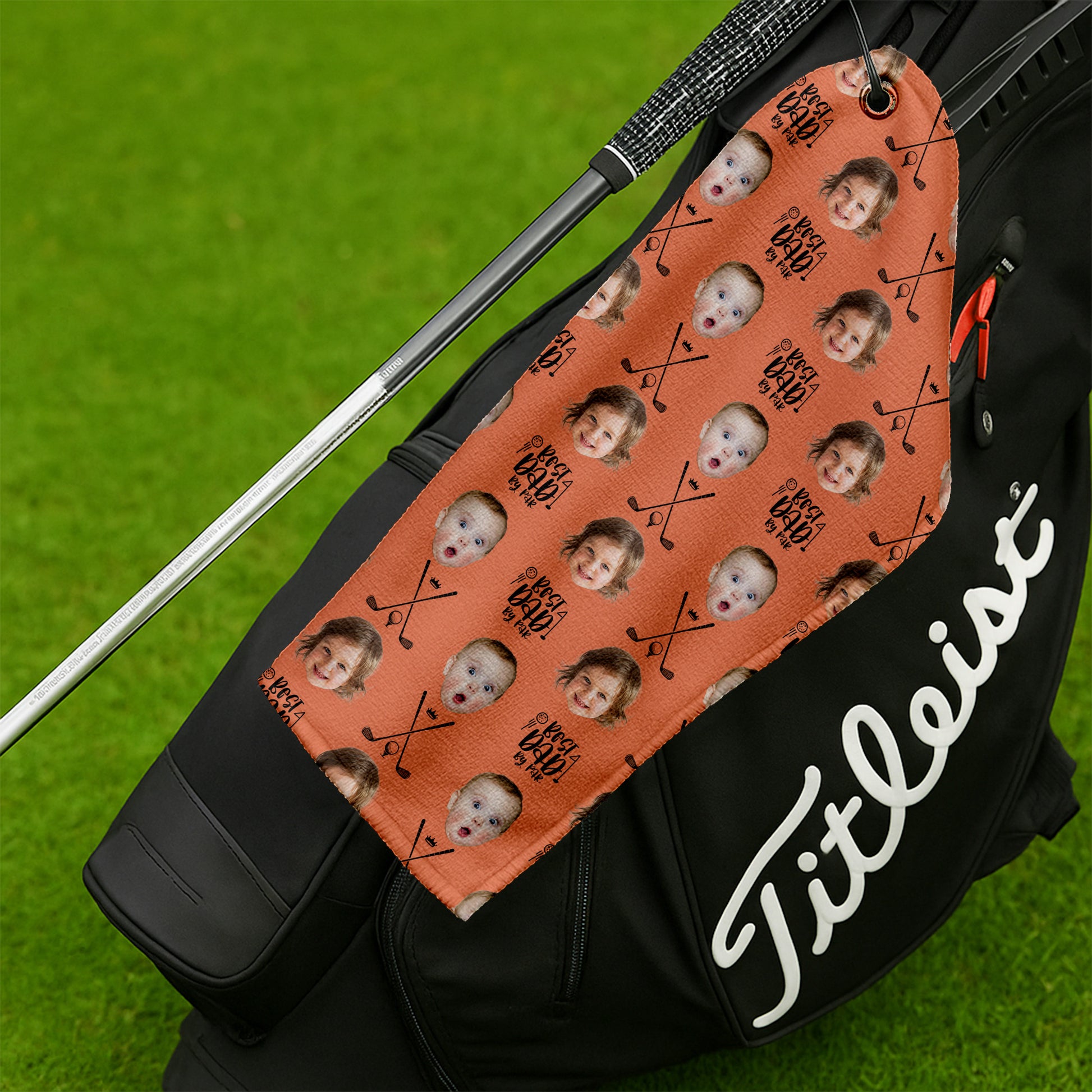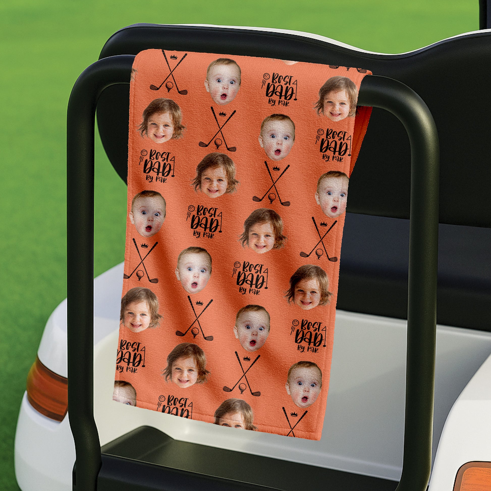 Best Dad By Par Orange Golf Towel, Custom Golf Towel With Kids Photo, Christmas Golf Gift