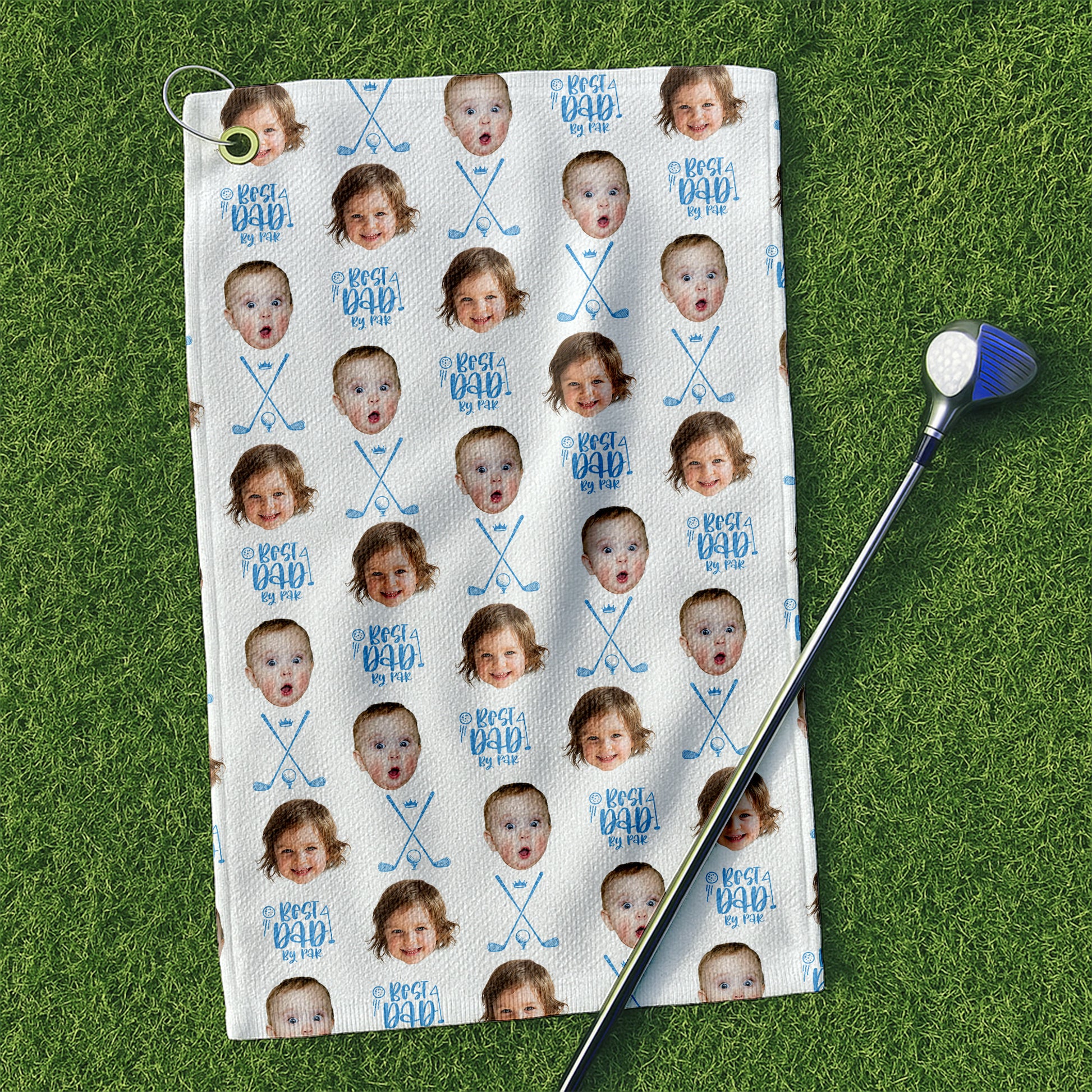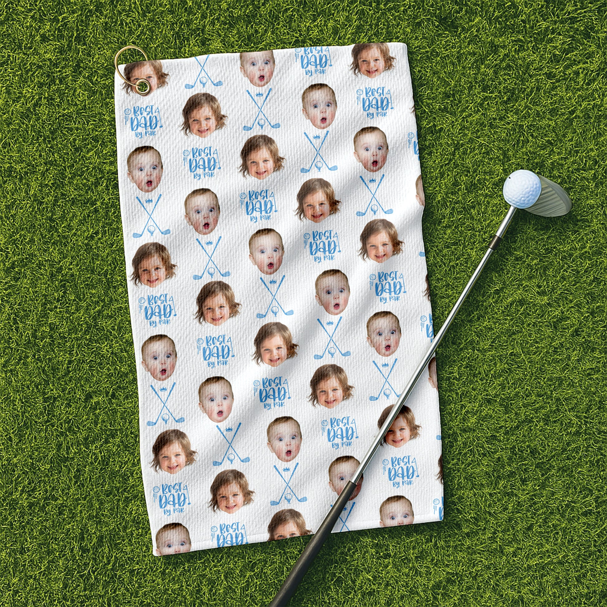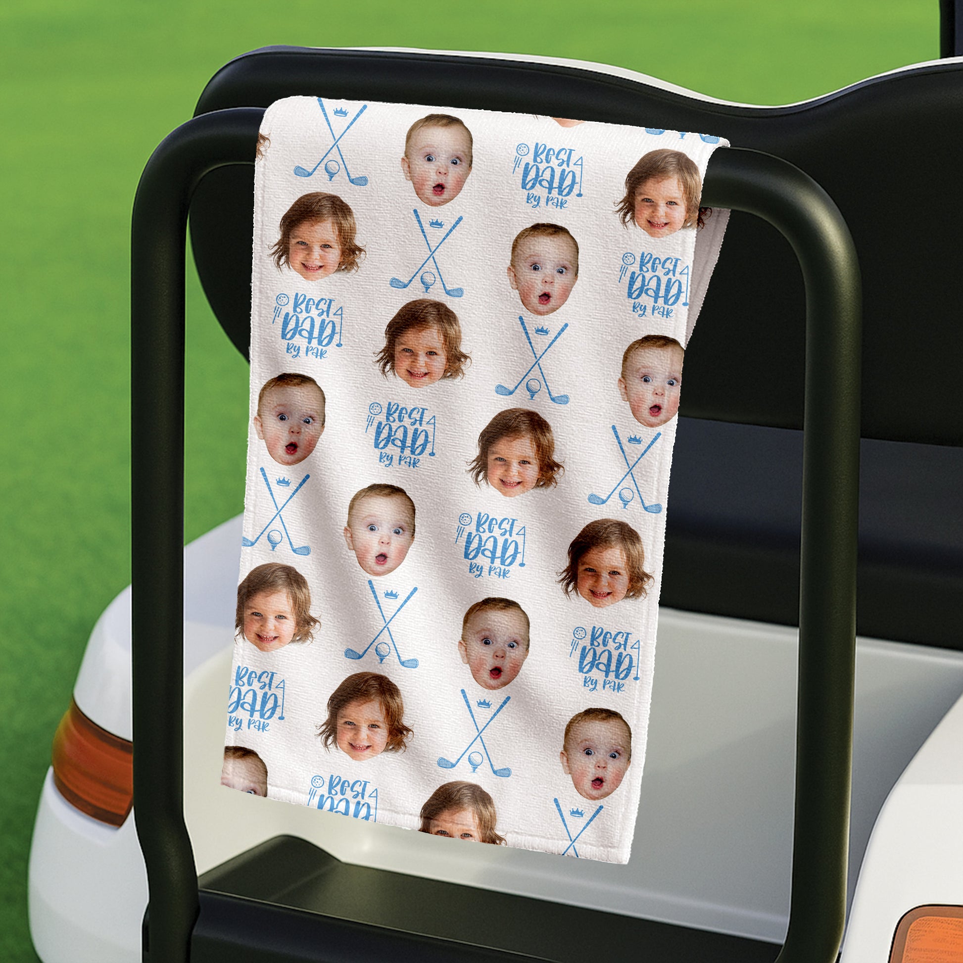 Best Dad By Par White Golf Towel, Custom Golf Towel With Kids Photo, Christmas Golf Gift
