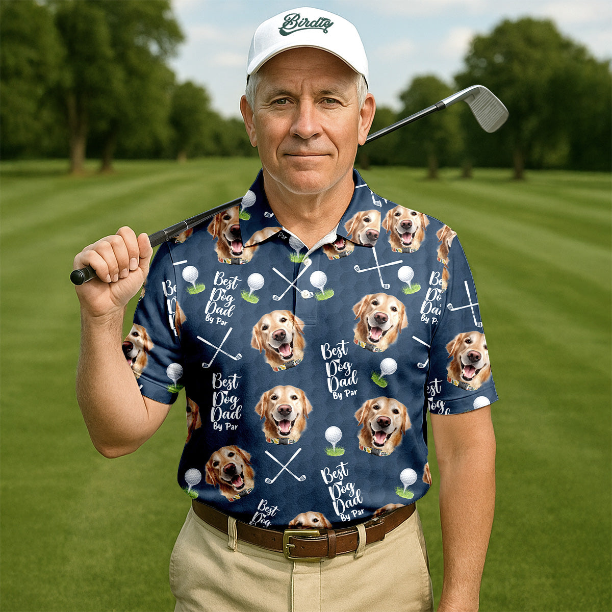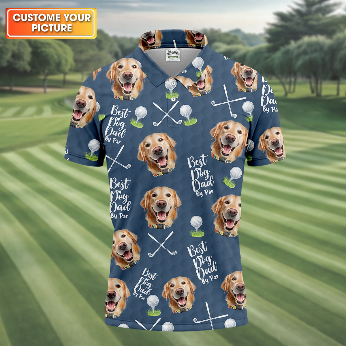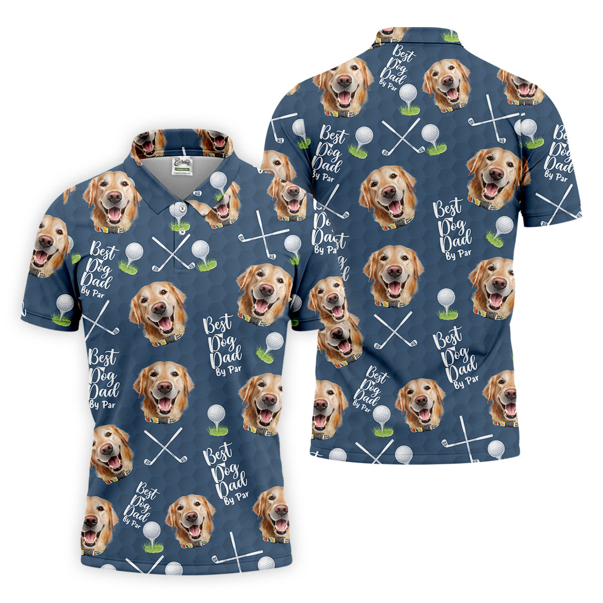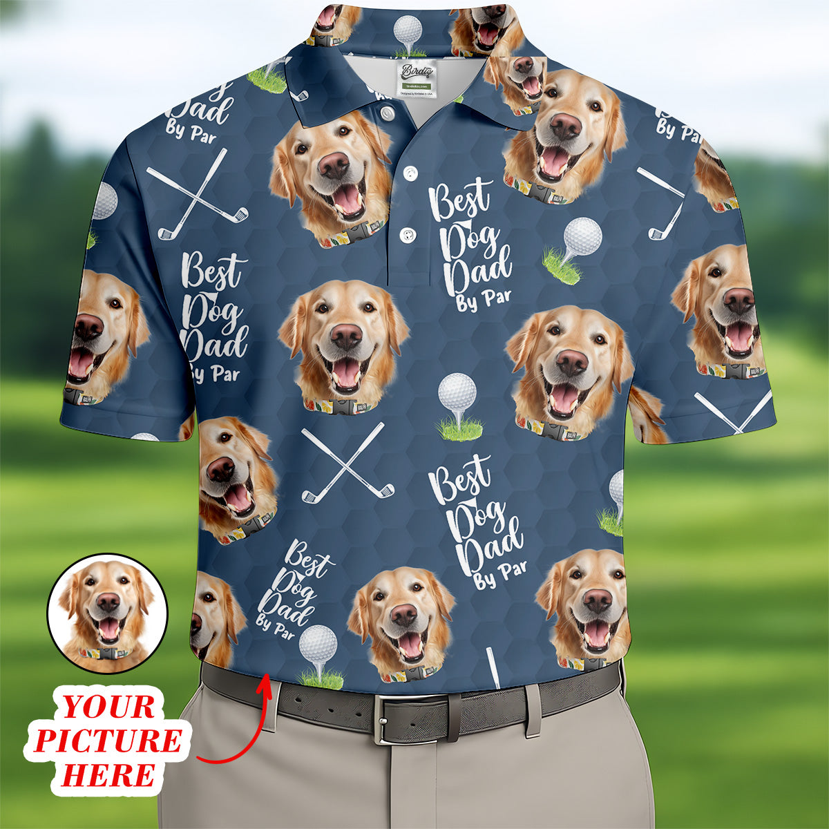 Best Dog Dad By Par Blue Custom Face Golf Shirt, Funny Golf Polo Shirt, Dad Golf Gifts