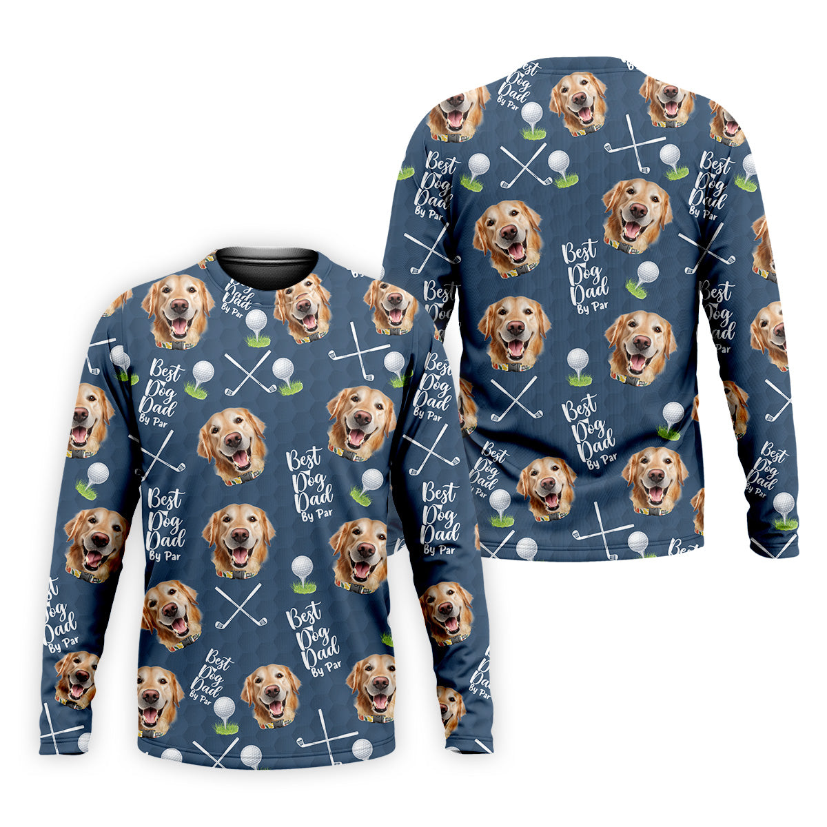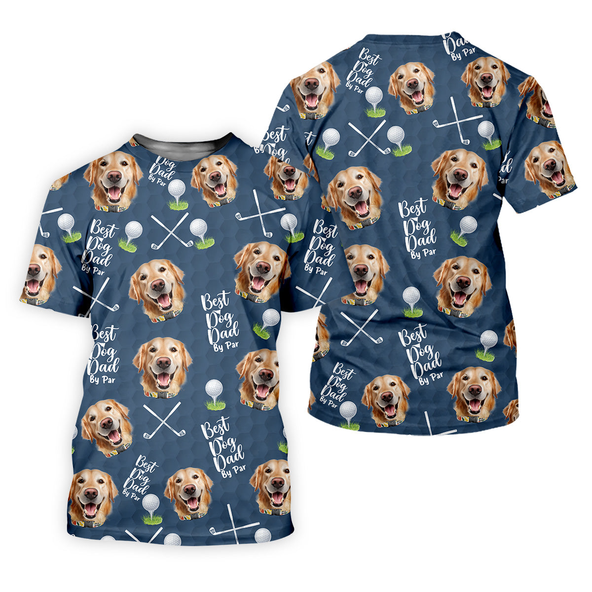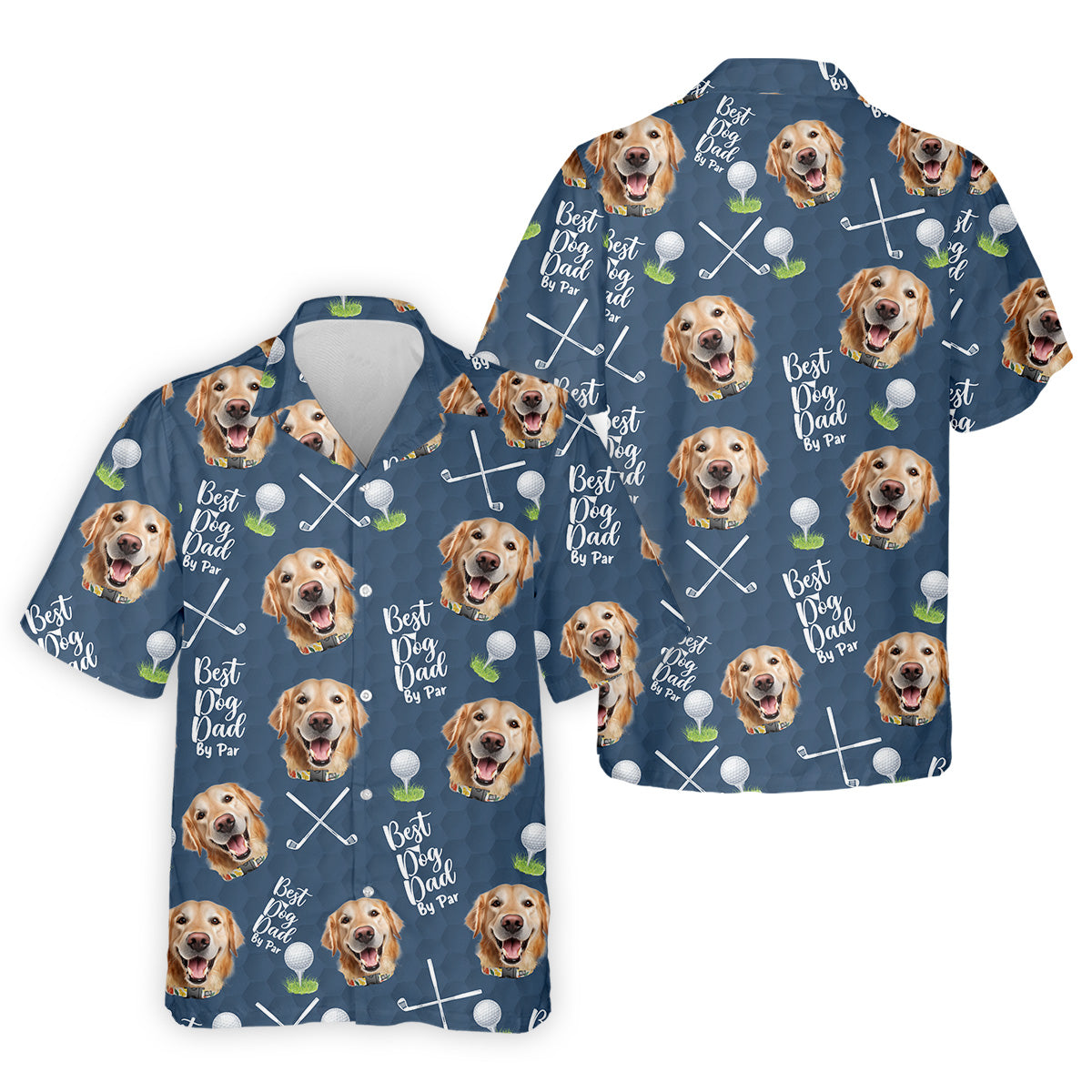 Best Dog Dad By Par Blue Custom Face Golf Shirt, Funny Golf Polo Shirt, Dad Golf Gifts