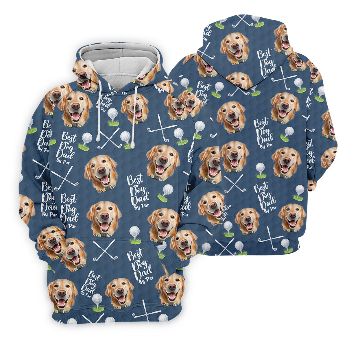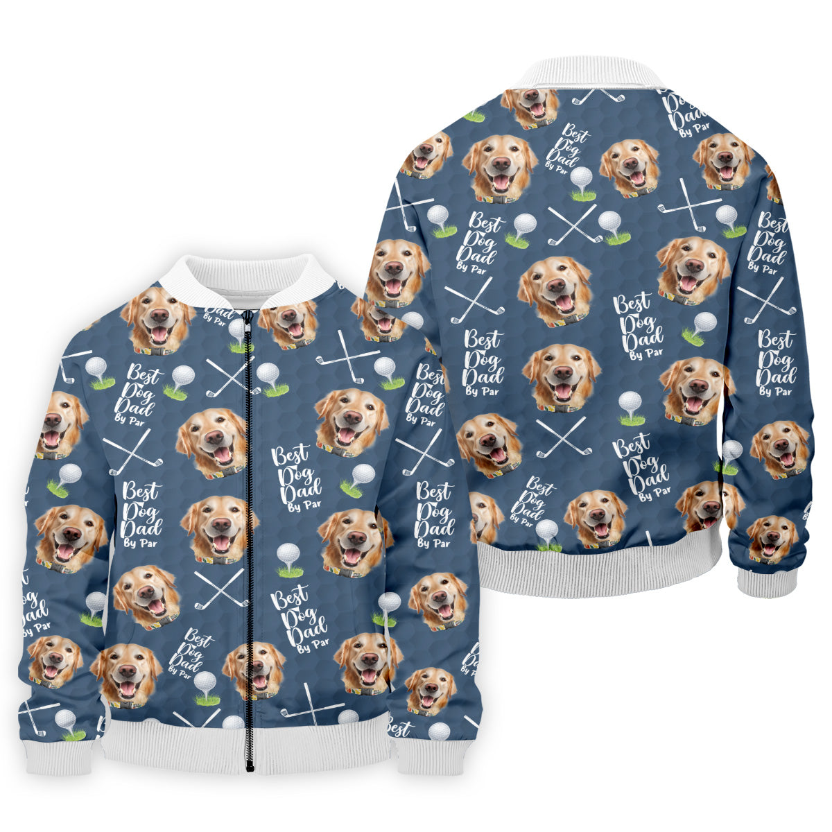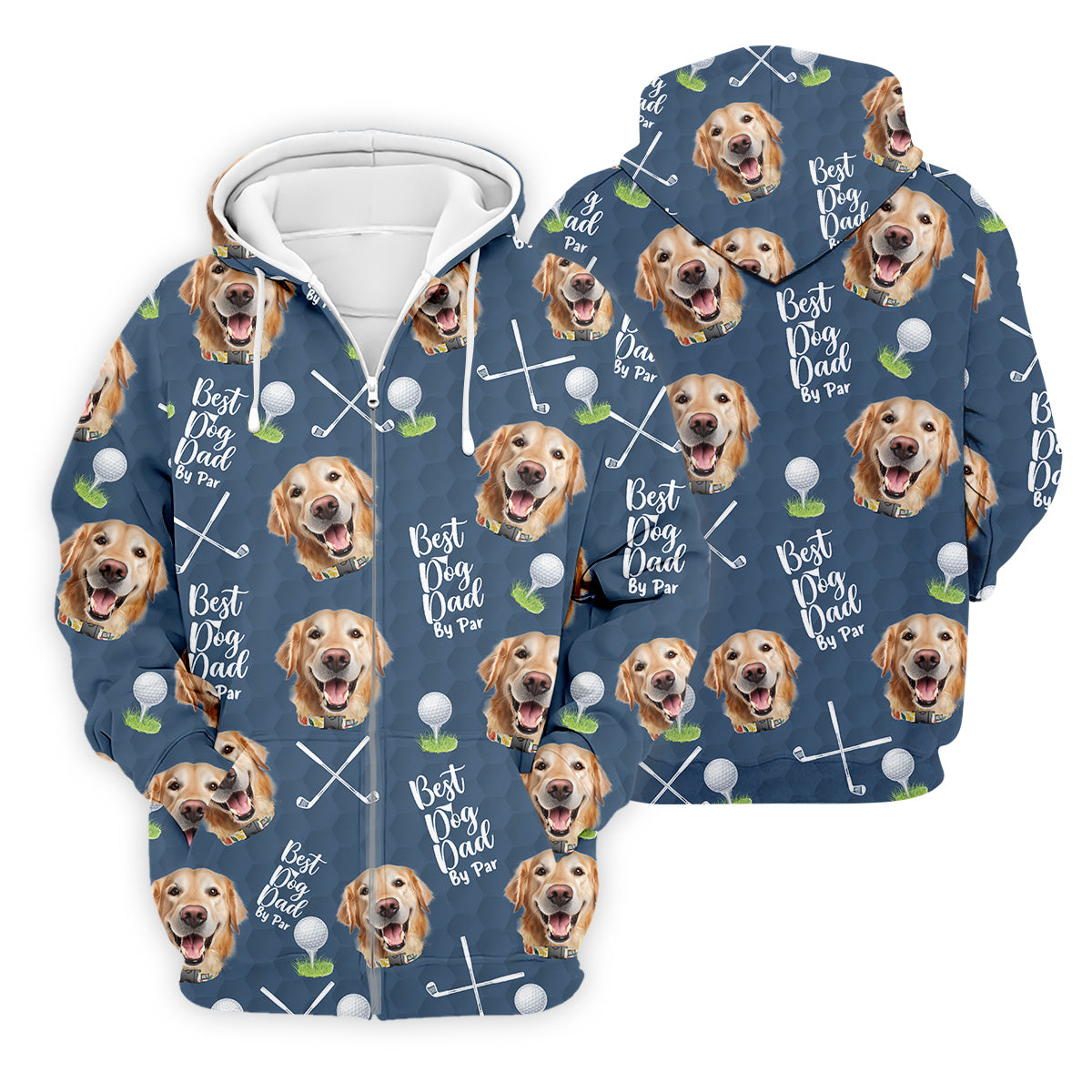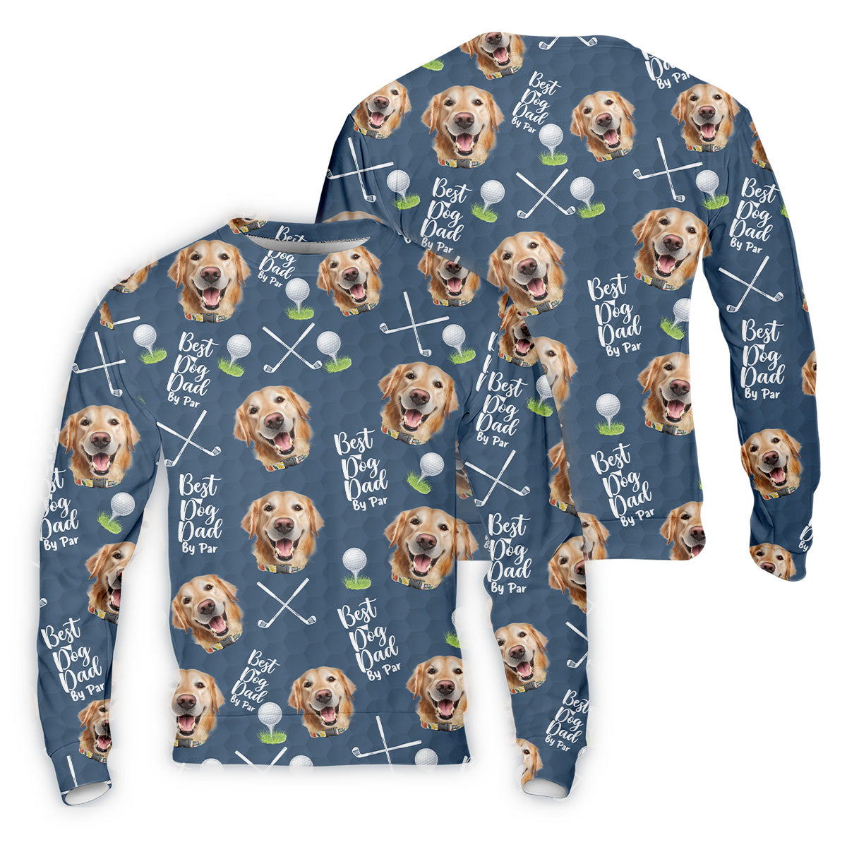 Best Dog Dad By Par Blue Custom Face Golf Shirt, Funny Golf Polo Shirt, Dad Golf Gifts