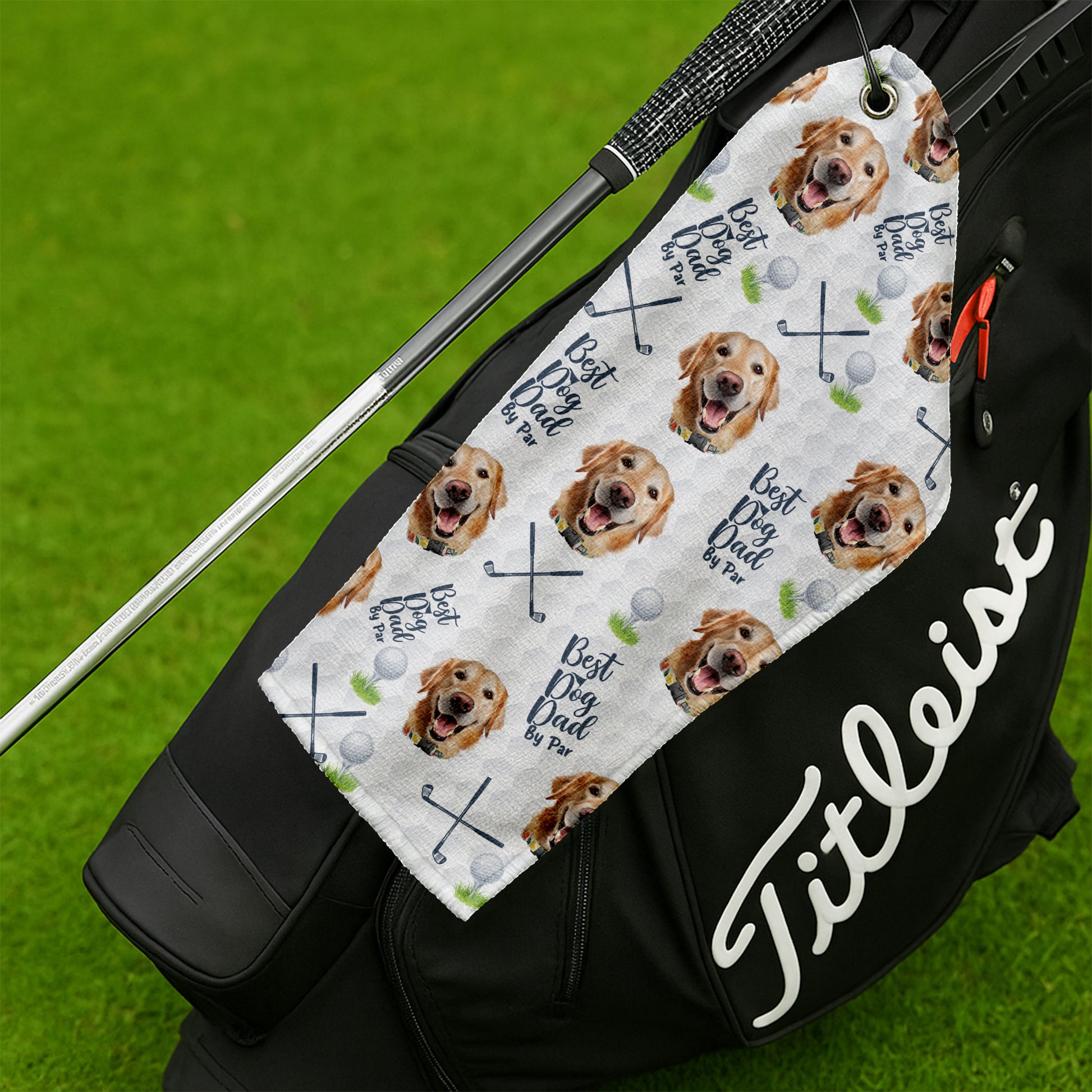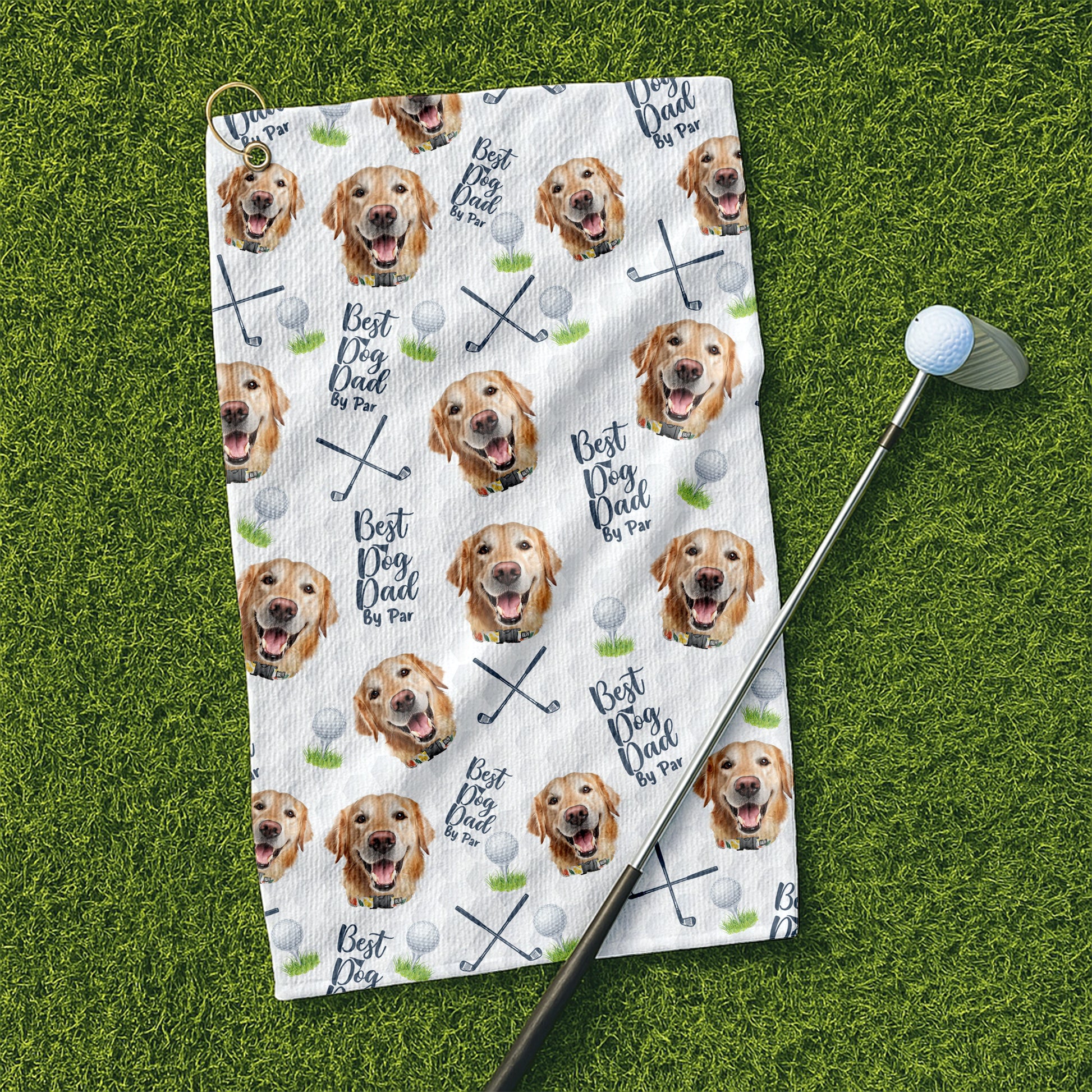 Best Dog Dad By Par Custom Dog Face Small Funny Golf Towel, Golf Rag, Dad Golf Gifts