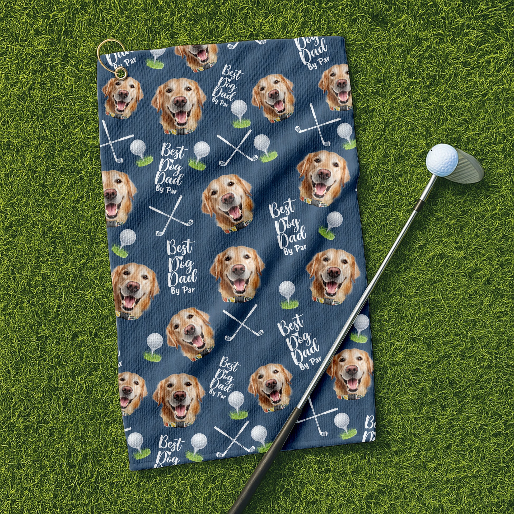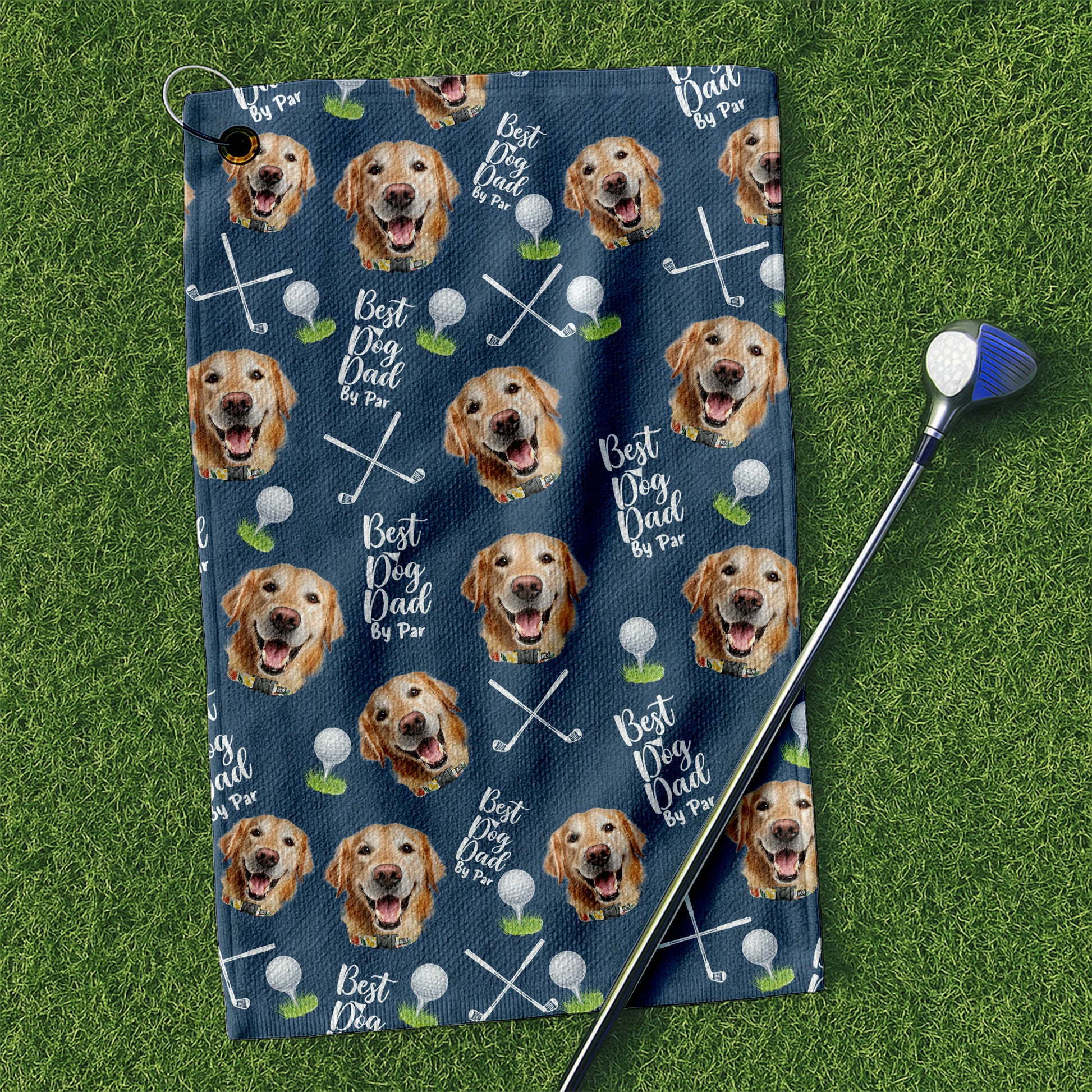 Best Dog Dad By Par Golf Towel, Custom Pet Face Golf Towel, Funny Golf Towel, Christmas Golf Gift