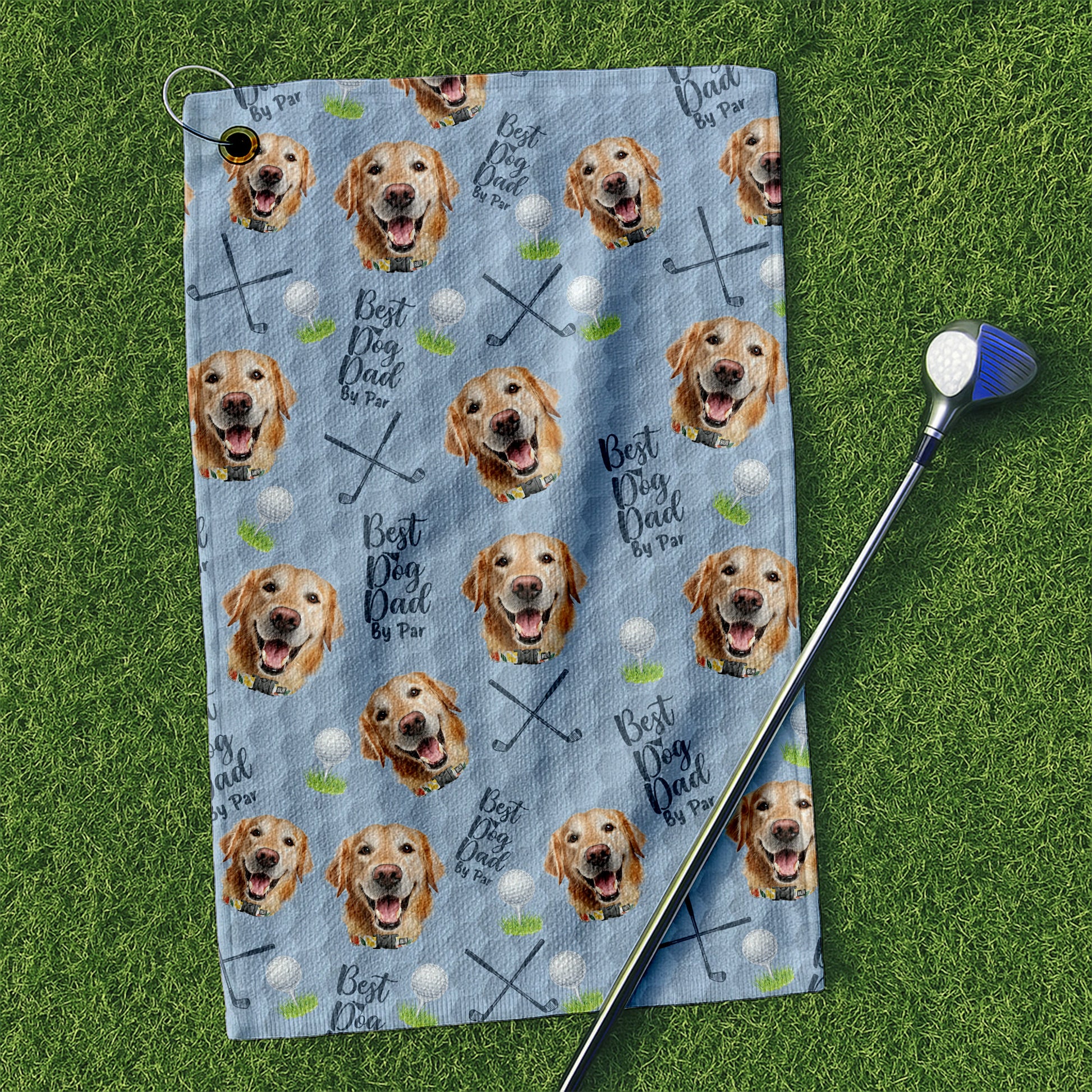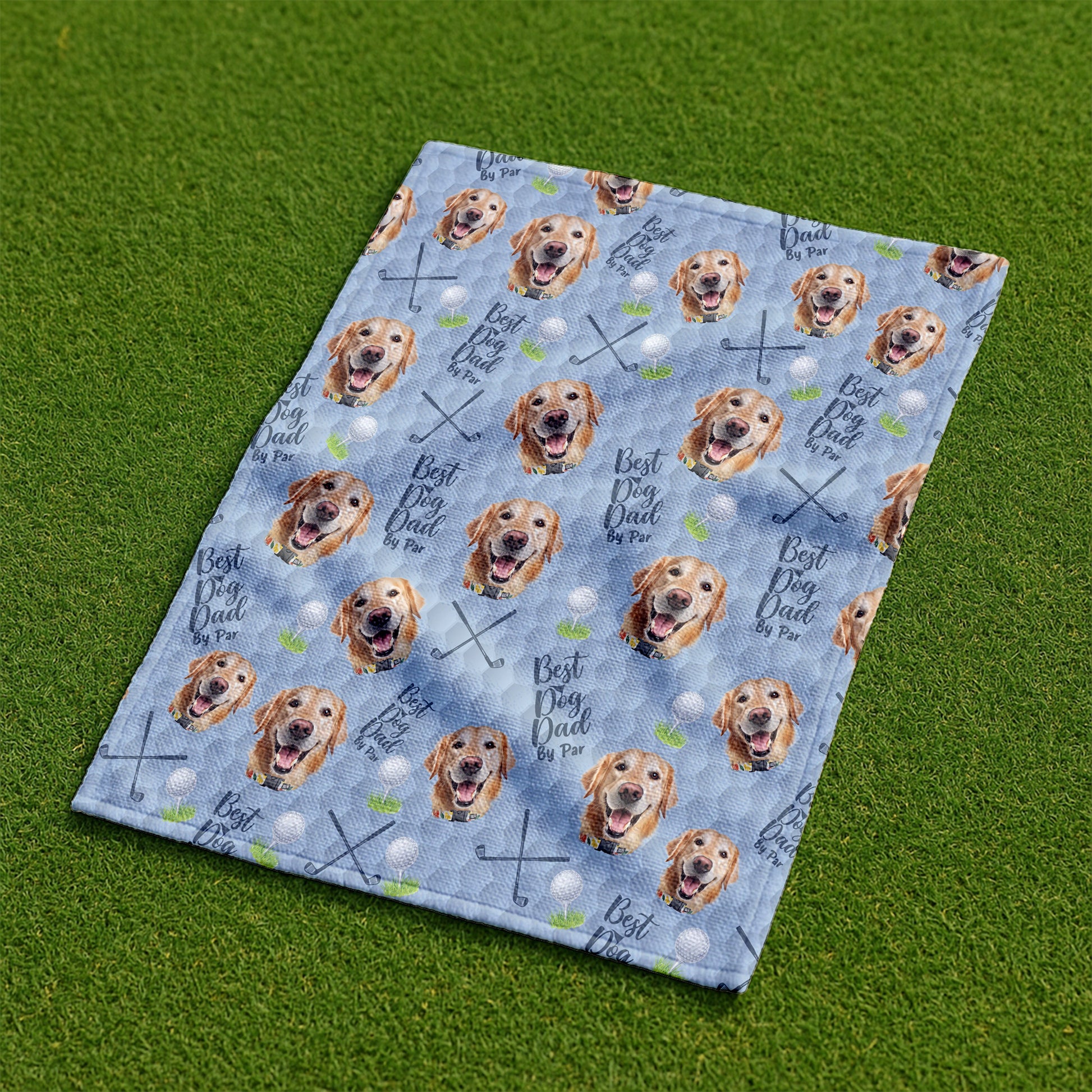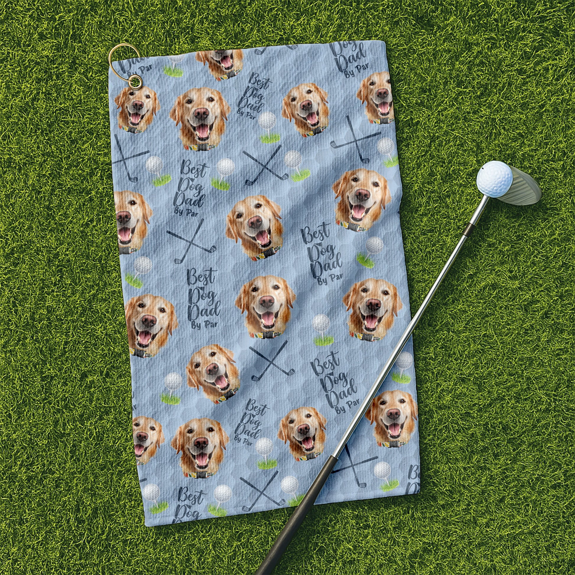 Best Dog Dad By Par Light Blue Golf Towel, Custom Pet Face Golf Towel, Christmas Golf Gift