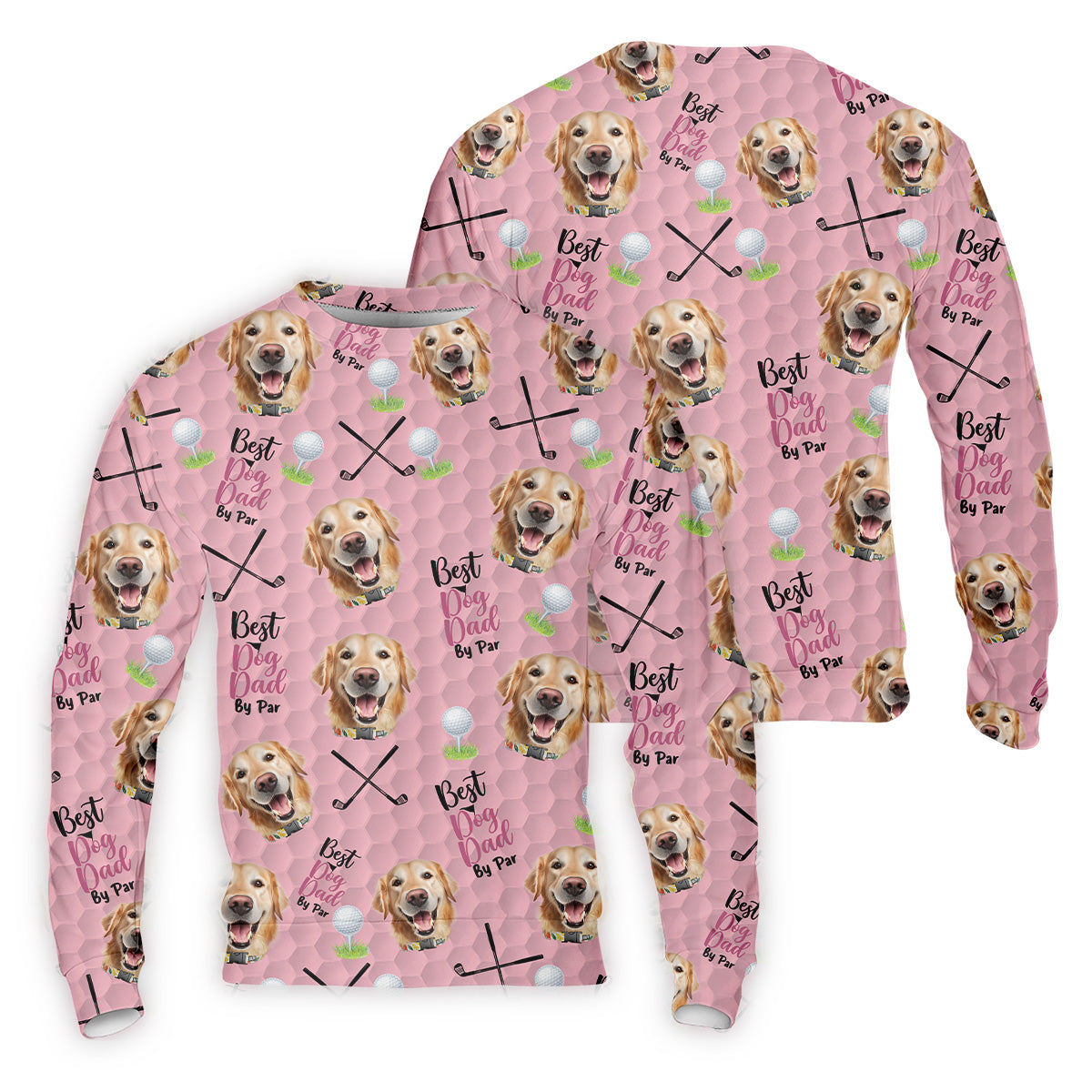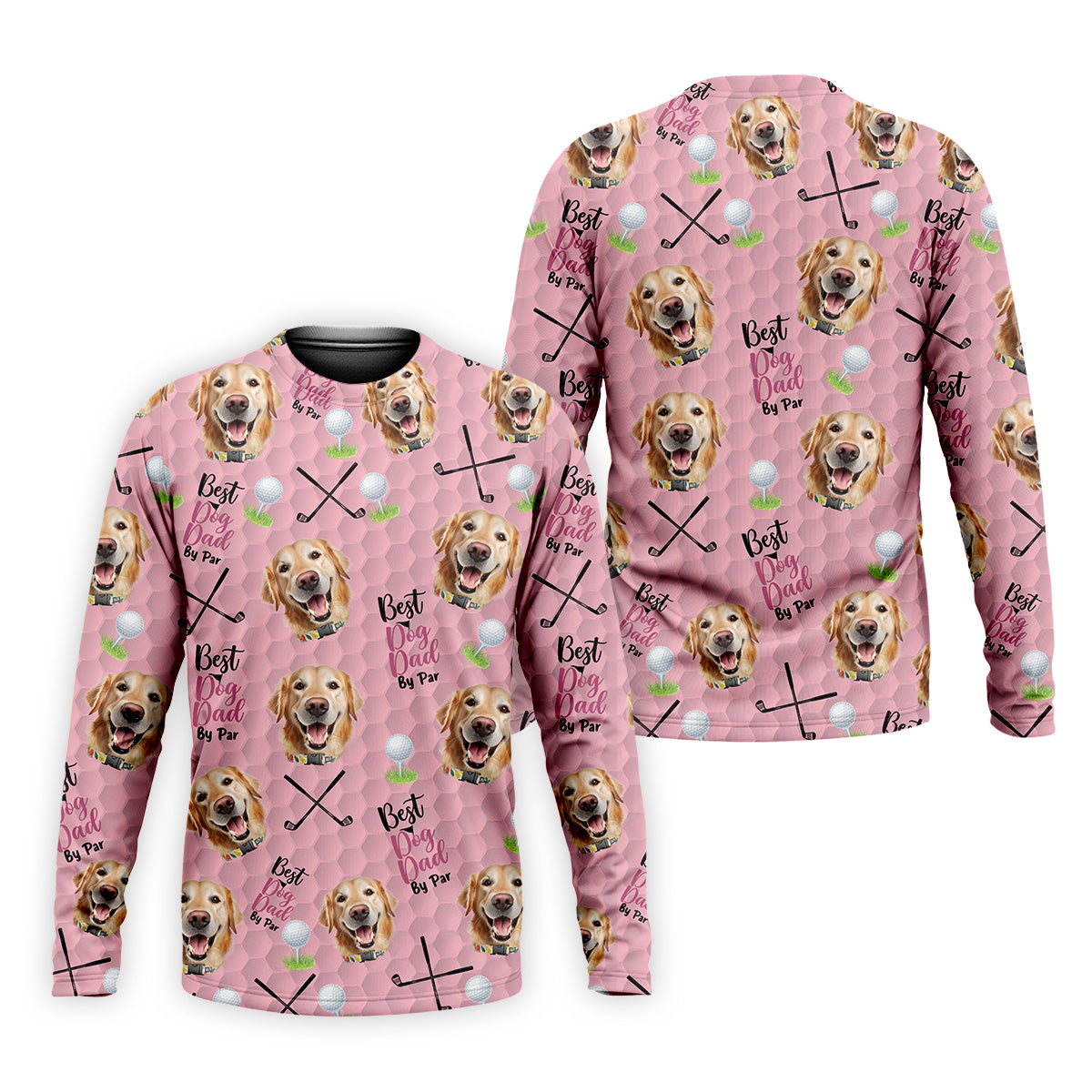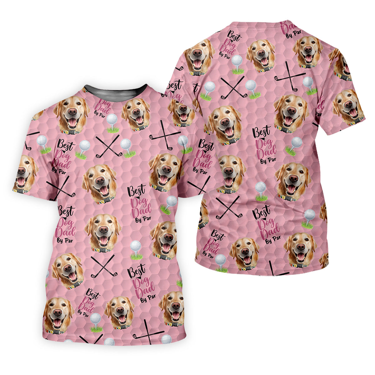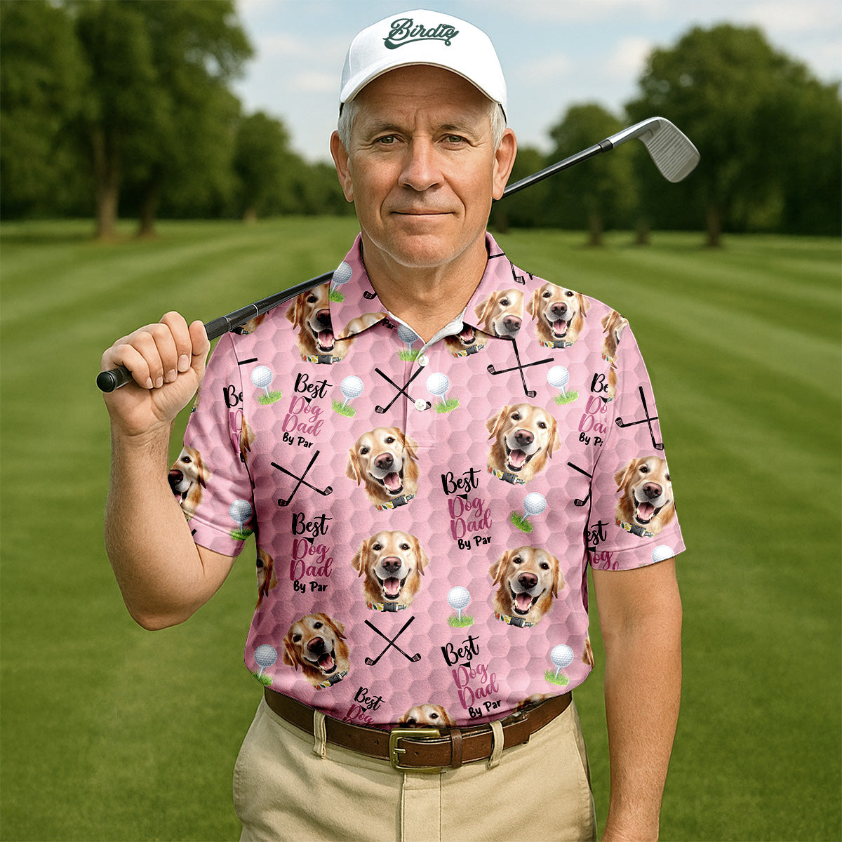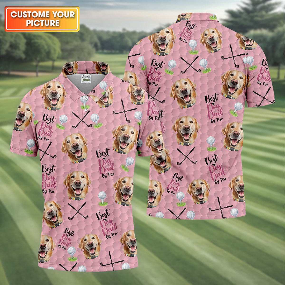 Best Dog Dad By Par Pink Custom Face Golf Shirt, Funny Golf Polo Shirt, Dad Golf Gifts